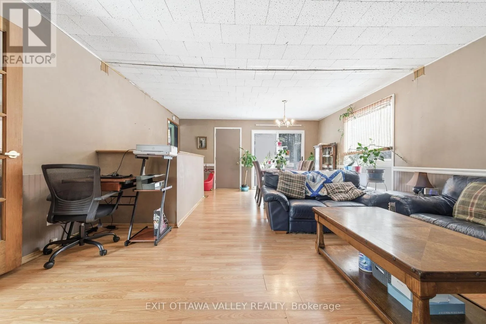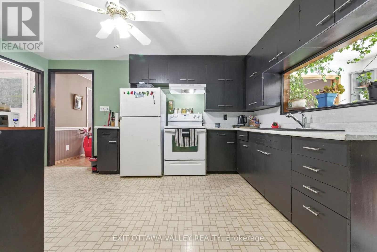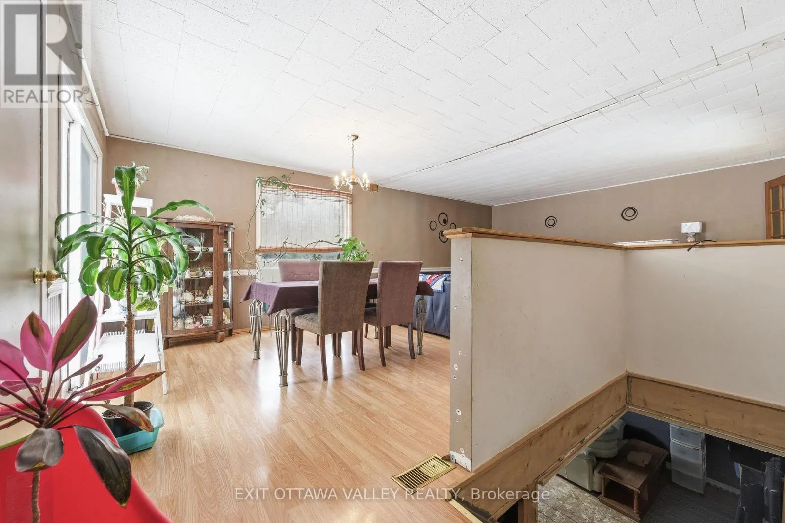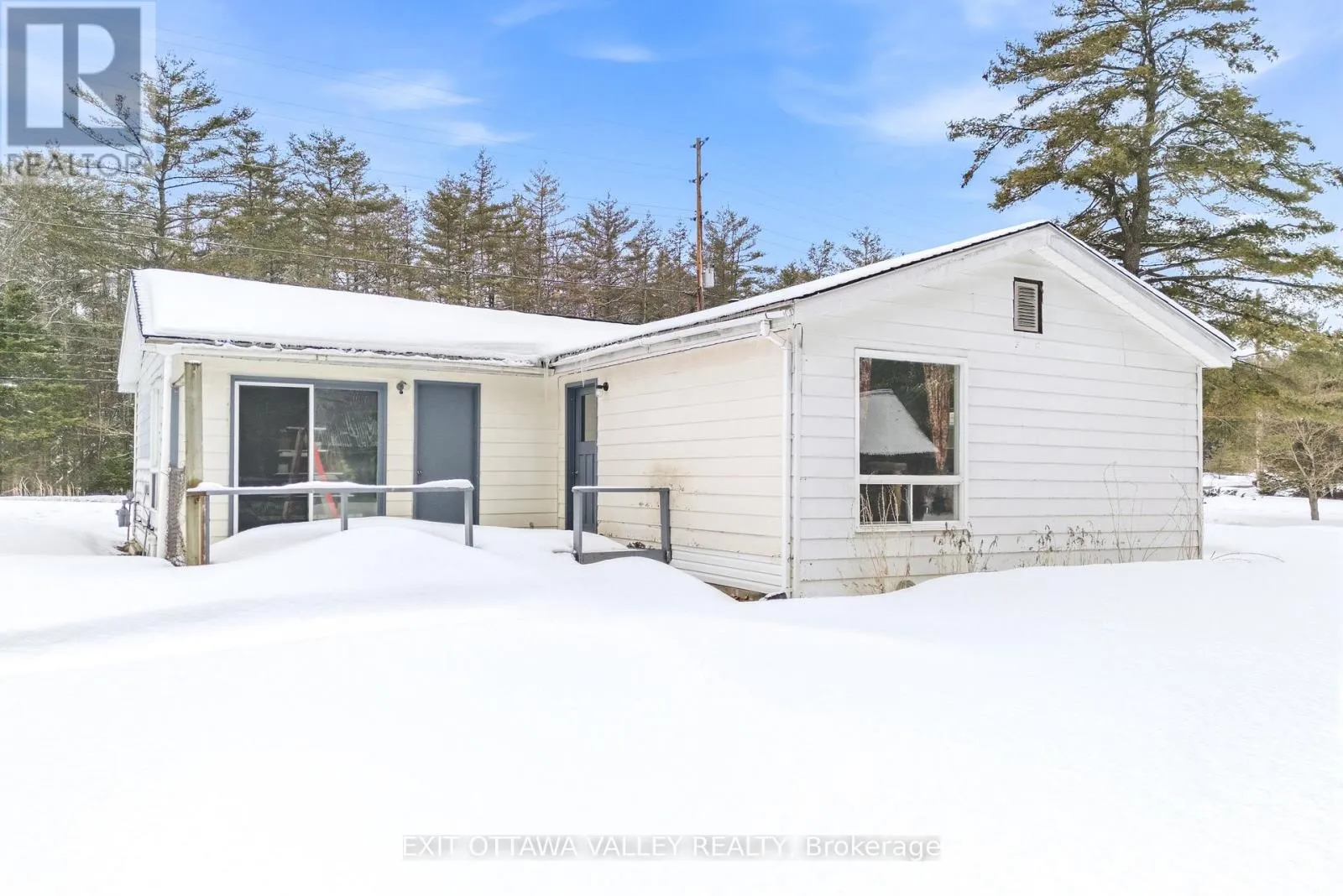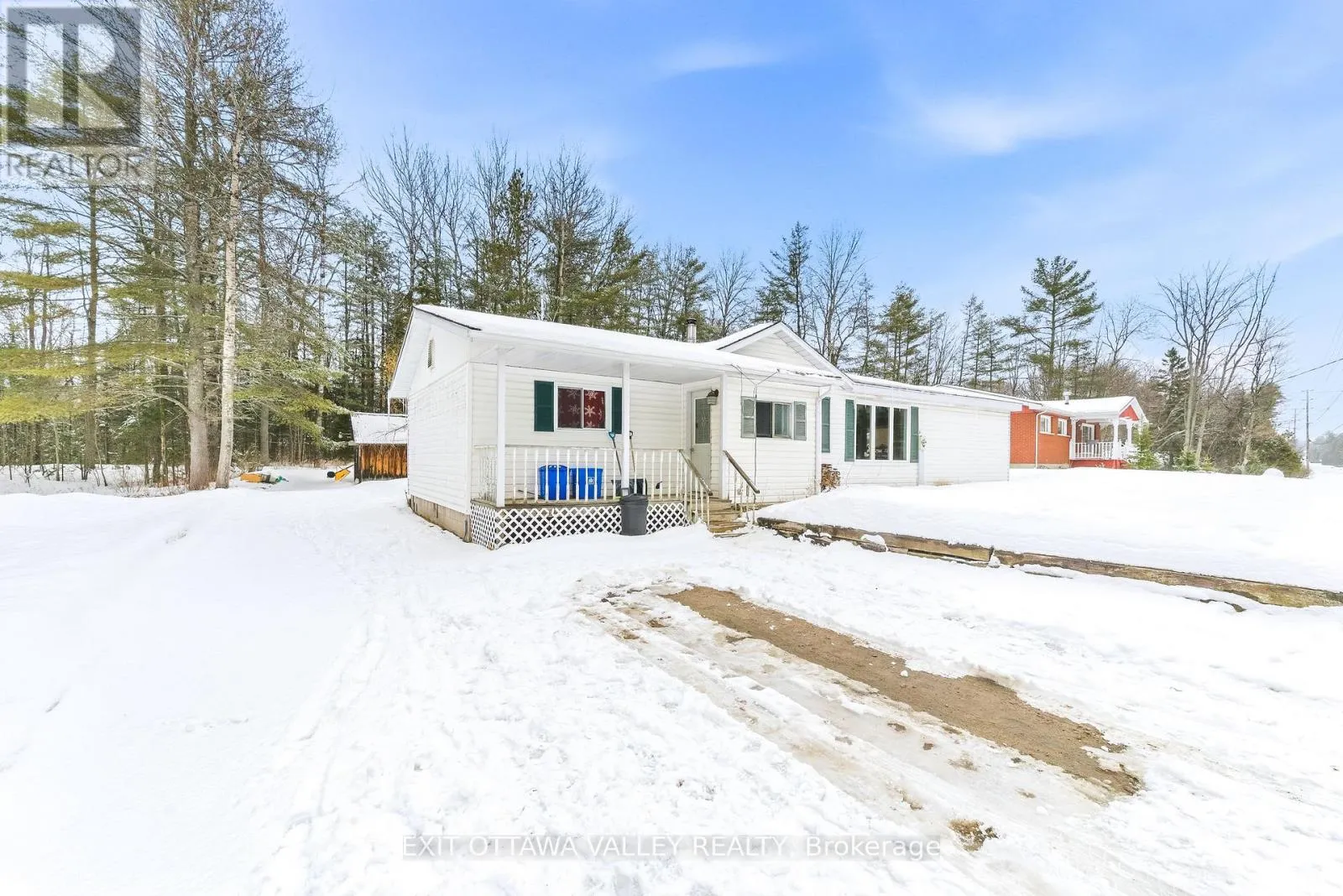 Cross Streets: Banting/Highway 17. ** Directions: 3 DOORS EAST OF BANTING DRIVE, DEEP RIVER ON HWY 17. Offering more space than meets the eye, this 3-bed, 2-bath bungalow backing onto forest with no rear neighbours combines practical living with a convenient location close to everything Deep River has to offer. Upon driving up, you're first greeted by a covered front porch which guides you into the home and into a large foyer area with cozy woodstove and loads of natural light. Deceptively spacious, this home features a huge eat-in kitchen with pantry and abundant cupboard space, along with bright, oversized living and dining areas with patio access to the back deck. The main floor is complete with a recently updated main bathroom, generous primary bedroom with 3-piece ensuite, plus two additional bedrooms and convenient main floor laundry room. The partially finished lower level offers excellent potential to expand with additional bedrooms, a rec room, or customized living space. Situated on a great lot with a large driveway, workshop with electricity, and a 3-bay lean-to for wood or extra storage. This home is located close to ATV and snowmobile trails, schools, hospital, and all local amenities. A fantastic opportunity to enjoy bungalow living with room to grow! (id:27476)