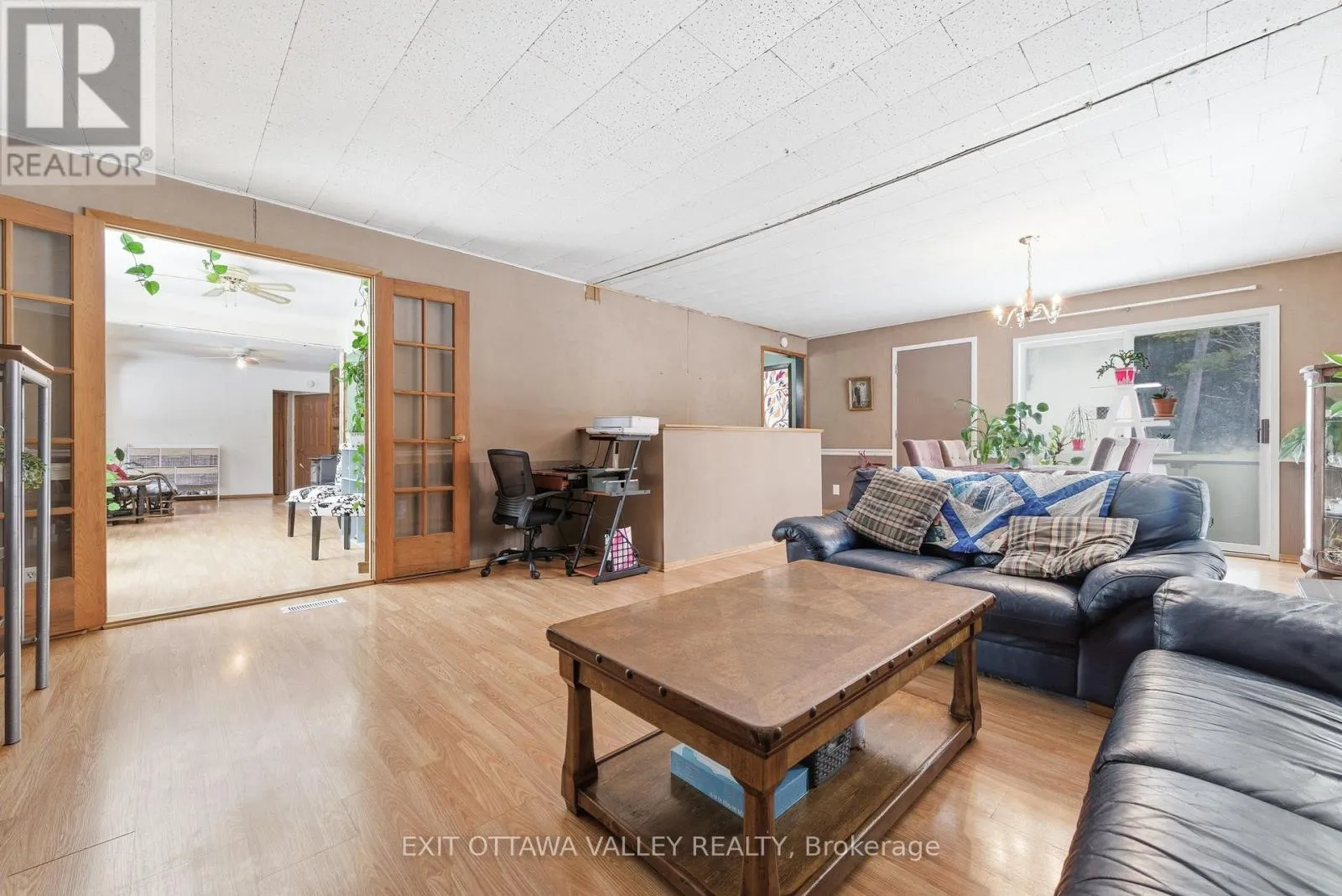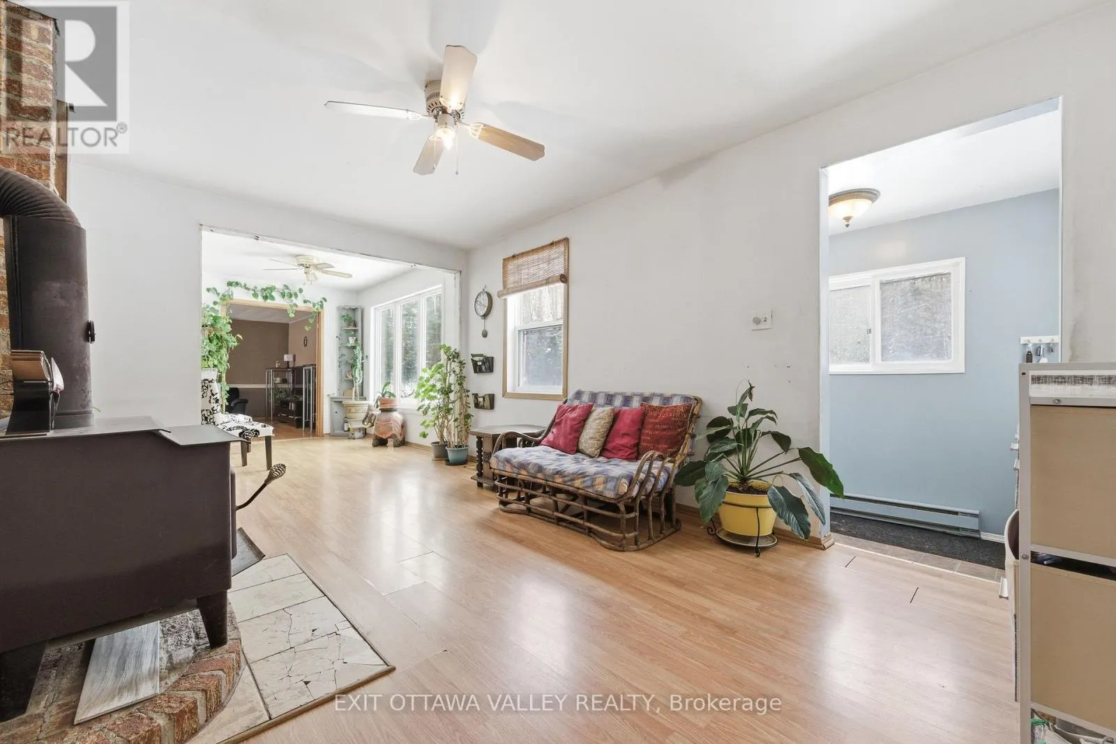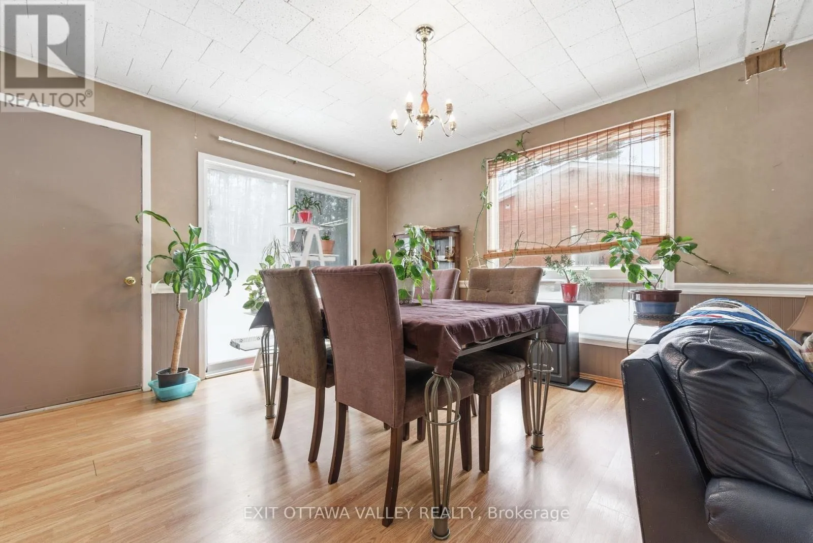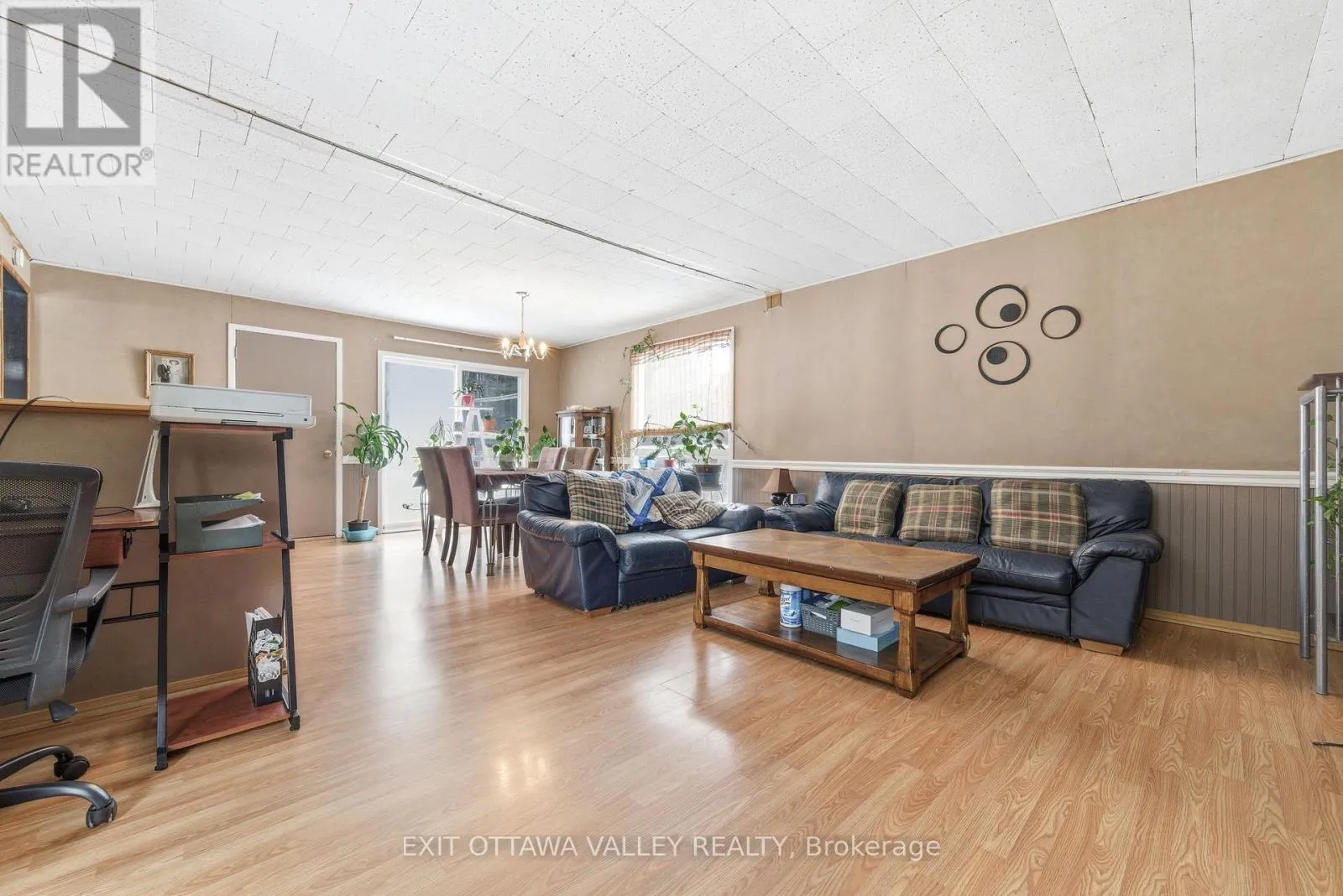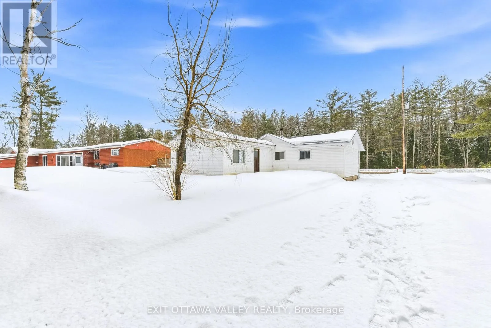 Cross Streets: Banting/Highway 17. ** Directions: 3 DOORS EAST OF BANTING DRIVE, DEEP RIVER ON HWY 17. Offering more space than meets the eye, this 3-bed, 2-bath bungalow backing onto forest with no rear neighbours combines practical living with a convenient location close to everything Deep River has to offer. Upon driving up, you're first greeted by a covered front porch which guides you into the home and into a large foyer area with cozy woodstove and loads of natural light. Deceptively spacious, this home features a huge eat-in kitchen with pantry and abundant cupboard space, along with bright, oversized living and dining areas with patio access to the back deck. The main floor is complete with a recently updated main bathroom, generous primary bedroom with 3-piece ensuite, plus two additional bedrooms and convenient main floor laundry room. The partially finished lower level offers excellent potential to expand with additional bedrooms, a rec room, or customized living space. Situated on a great lot with a large driveway, workshop with electricity, and a 3-bay lean-to for wood or extra storage. This home is located close to ATV and snowmobile trails, schools, hospital, and all local amenities. A fantastic opportunity to enjoy bungalow living with room to grow! (id:27476)