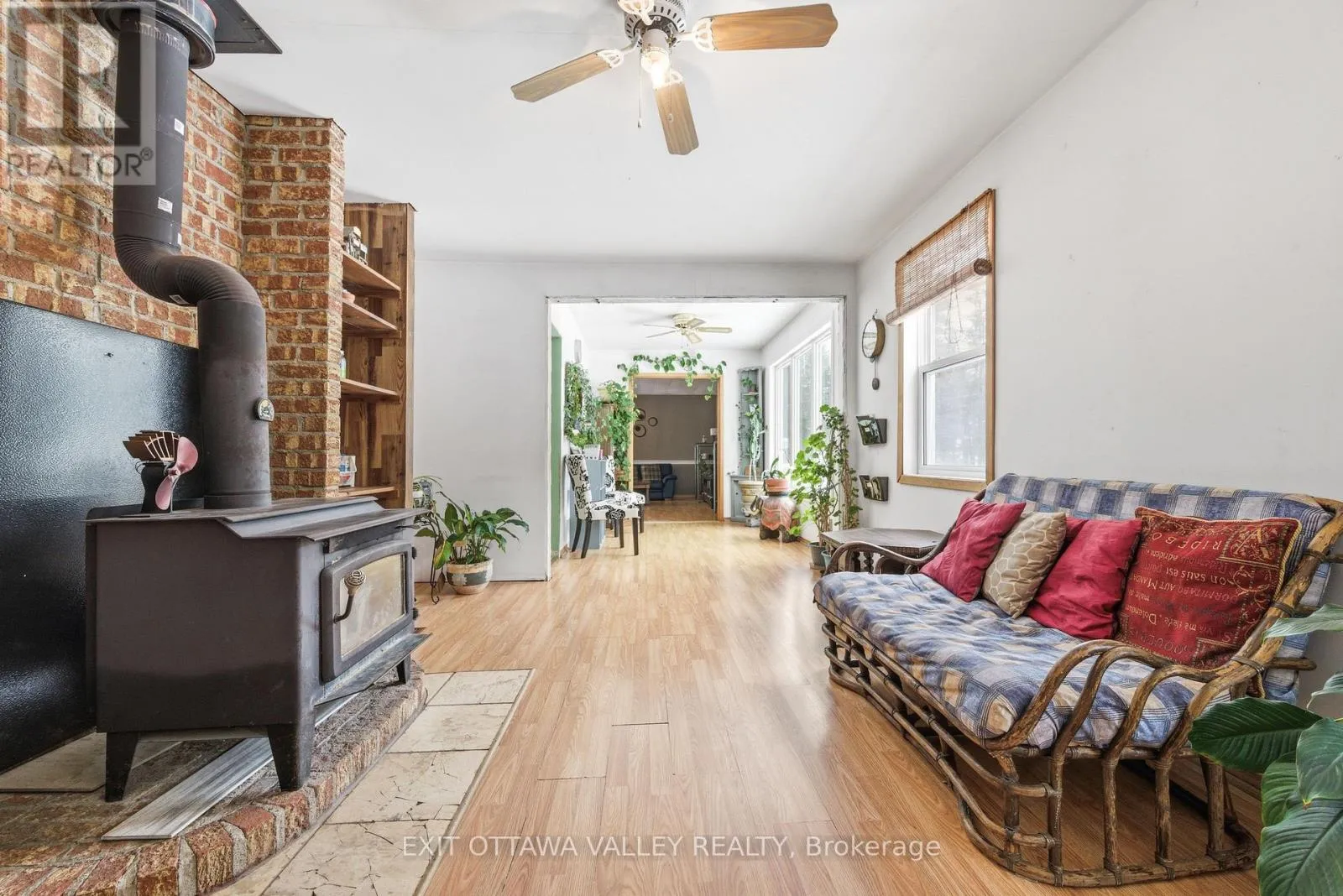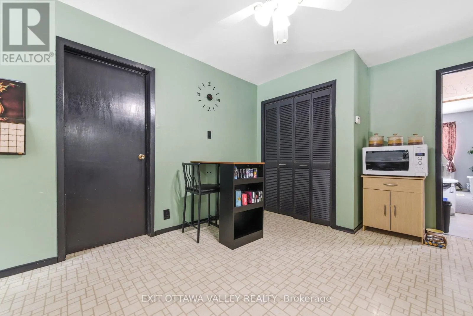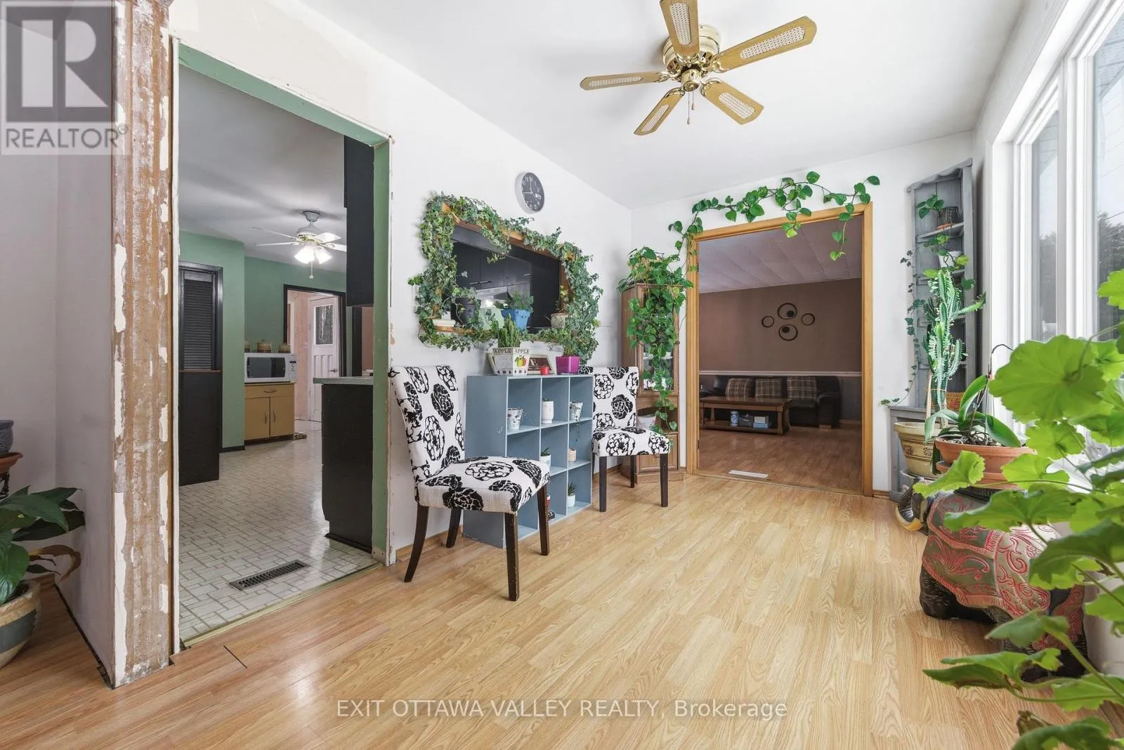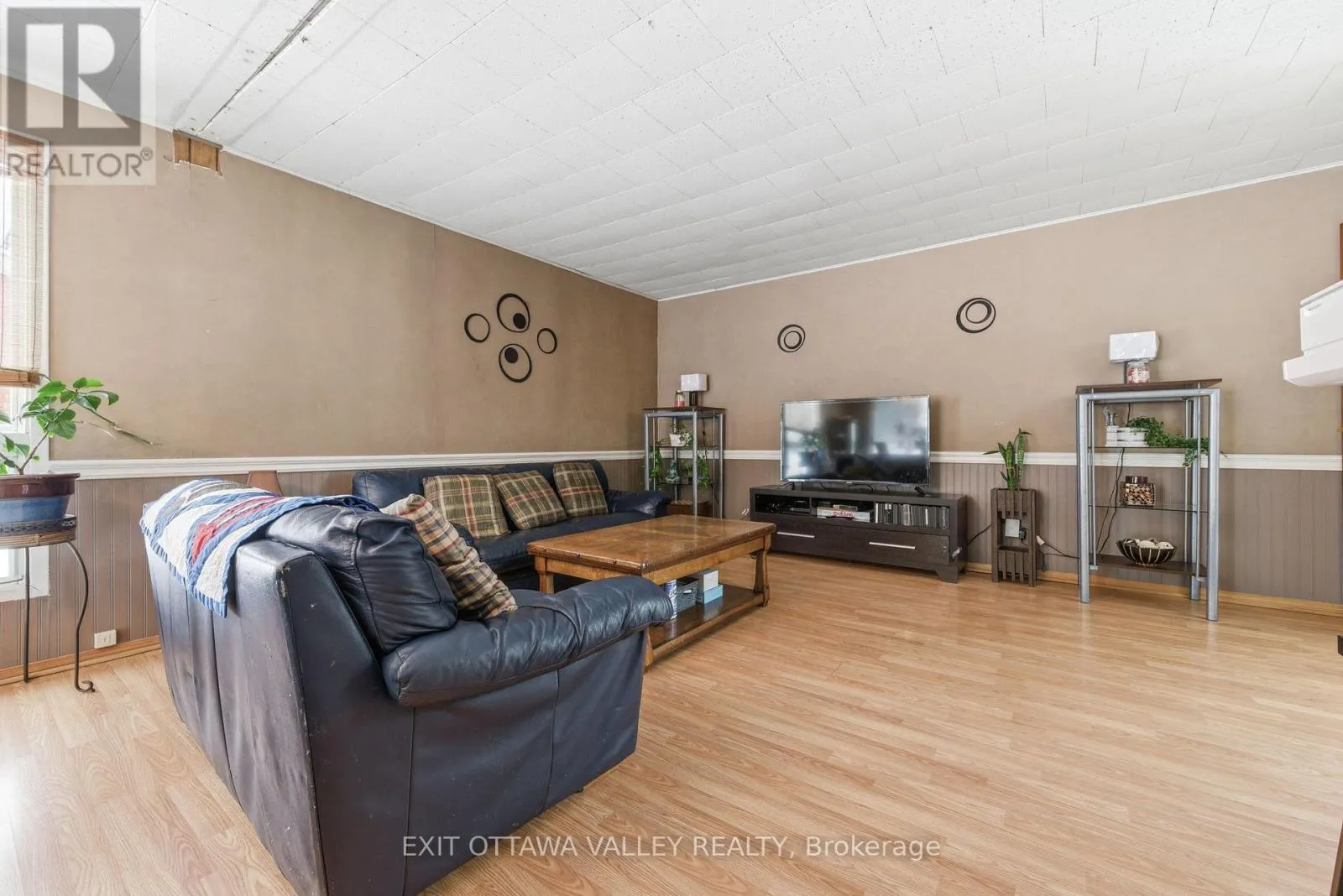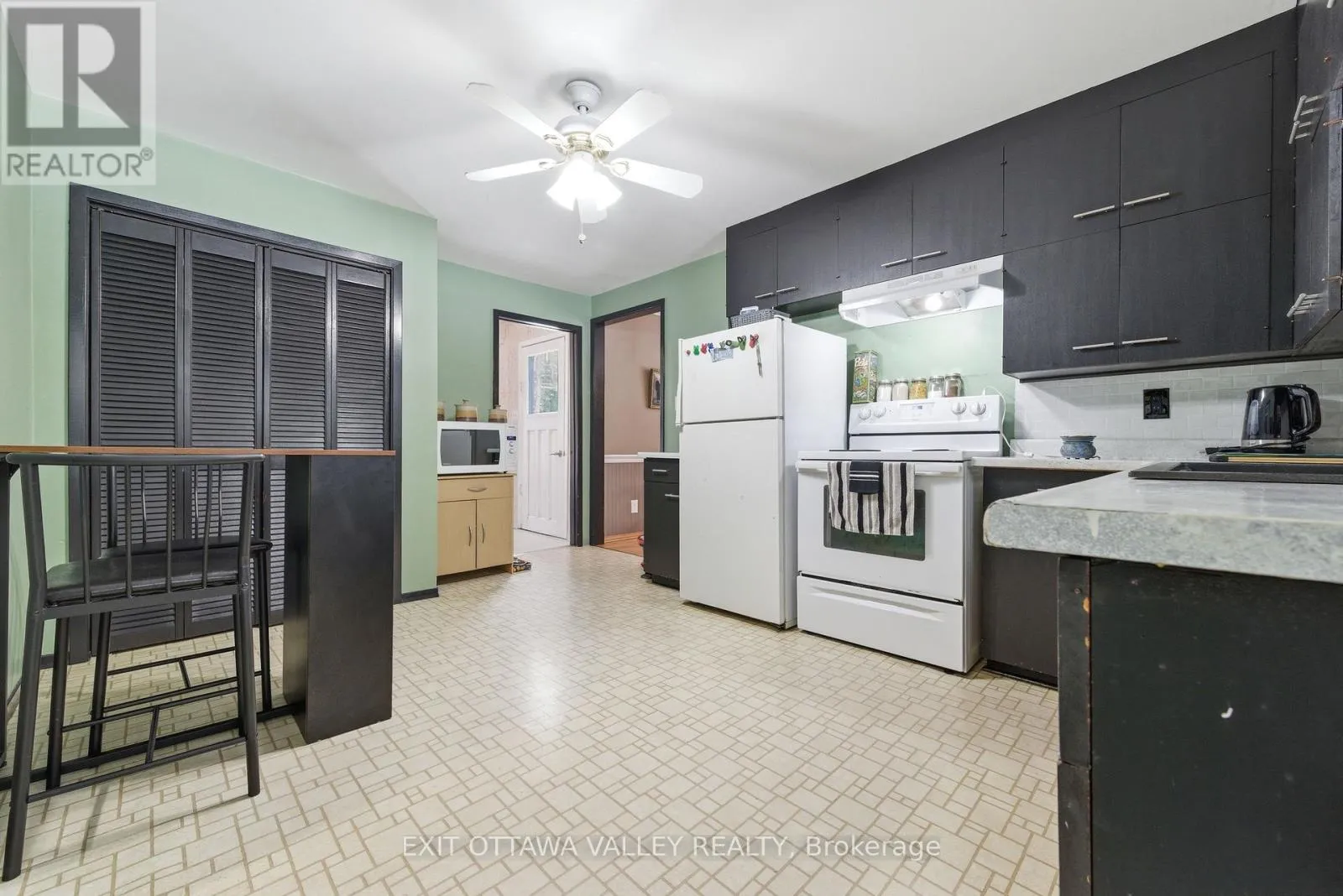 Cross Streets: Banting/Highway 17. ** Directions: 3 DOORS EAST OF BANTING DRIVE, DEEP RIVER ON HWY 17. Offering more space than meets the eye, this 3-bed, 2-bath bungalow backing onto forest with no rear neighbours combines practical living with a convenient location close to everything Deep River has to offer. Upon driving up, you're first greeted by a covered front porch which guides you into the home and into a large foyer area with cozy woodstove and loads of natural light. Deceptively spacious, this home features a huge eat-in kitchen with pantry and abundant cupboard space, along with bright, oversized living and dining areas with patio access to the back deck. The main floor is complete with a recently updated main bathroom, generous primary bedroom with 3-piece ensuite, plus two additional bedrooms and convenient main floor laundry room. The partially finished lower level offers excellent potential to expand with additional bedrooms, a rec room, or customized living space. Situated on a great lot with a large driveway, workshop with electricity, and a 3-bay lean-to for wood or extra storage. This home is located close to ATV and snowmobile trails, schools, hospital, and all local amenities. A fantastic opportunity to enjoy bungalow living with room to grow! (id:27476)