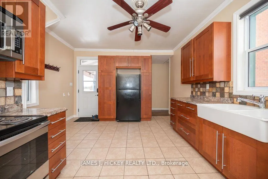 Cross Streets: Hwy 17 and Main Street in Chalk River. ** Directions: Hwy 17 to Main Street in Chalk River. This charming 2-storey brick family home features a beautiful custom kitchen, spacious dining room and den/sitting area with cozy airtight woodstove. The living room overlooks an inviting wrap around porch. Recent 2-piece bath on main floor. The second floor offers 4 spacious bedrooms and updated 4-piece bath, good storage space in the basement with convenient outside entrance. Enjoy the spacious fenced back yard with play structure/shed, large deck off kitchen for those summertime BBQs! This convenient location is just across the street to a municipal playground, Algonquin 4-season trail, minutes to CNL & a short drive to Garrison Petawawa. New roof installed 2025, fridge, stove, washer, dryer, wood stove included. Minimum 24 hour irrevocable required on all Offers. Call today (id:27476)