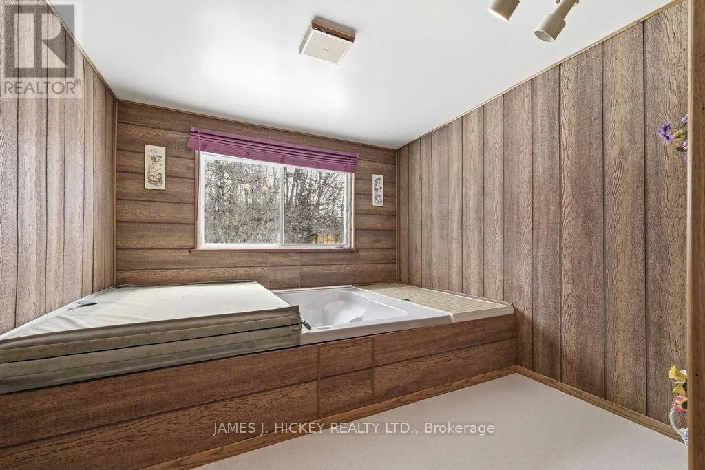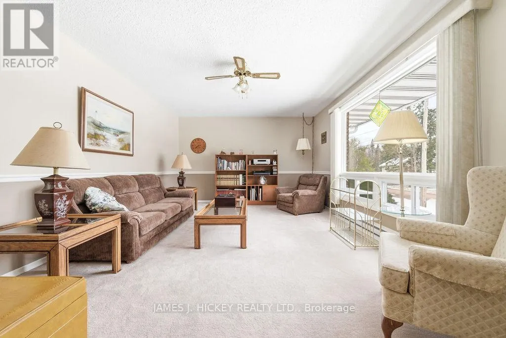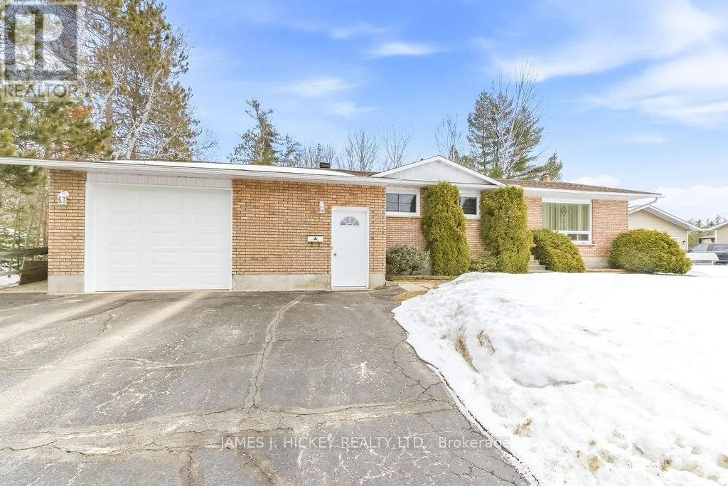 Cross Streets: Martin/Sydney. ** Directions: Highway 17 Chalk River to Ottawa Street turn right on Chemainus left on Martin. This well-maintained 3-bedroom brick bungalow offers comfort, functionality, and thoughtful design throughout. Step into a welcoming front foyer that leads to a bright oak kitchen and dining area filled with natural light. The main level features living room, a full 4-piece bathroom and a spacious primary bedroom complete with a generous 3-piece ensuite and adjoining 3-season room-perfect for enjoying summer relaxation, .Additional highlights include a private hot tub room off the primary bedroom, partially finished basement with a rec room, den, and a large utility area featuring an airtight woodstove and plenty of storage space. The attached garage offers convenient inside entry, designed with accessibility in mind, this home includes an elevator providing access from the garage to both levels, along with a 3-piece bathroom equipped with a wheel-in shower. The property also features a double paved driveway and a drilled well. All major appliances-fridge, stove, microwave, dishwasher, washer, and dryer-are included. Frame storage shed, large private back yard. recent drilled well/water system, tool shed, updated windows, roof July 2022, don't miss this exceptional opportunity. 24 hour irrevocable required on all offers. (id:27476)