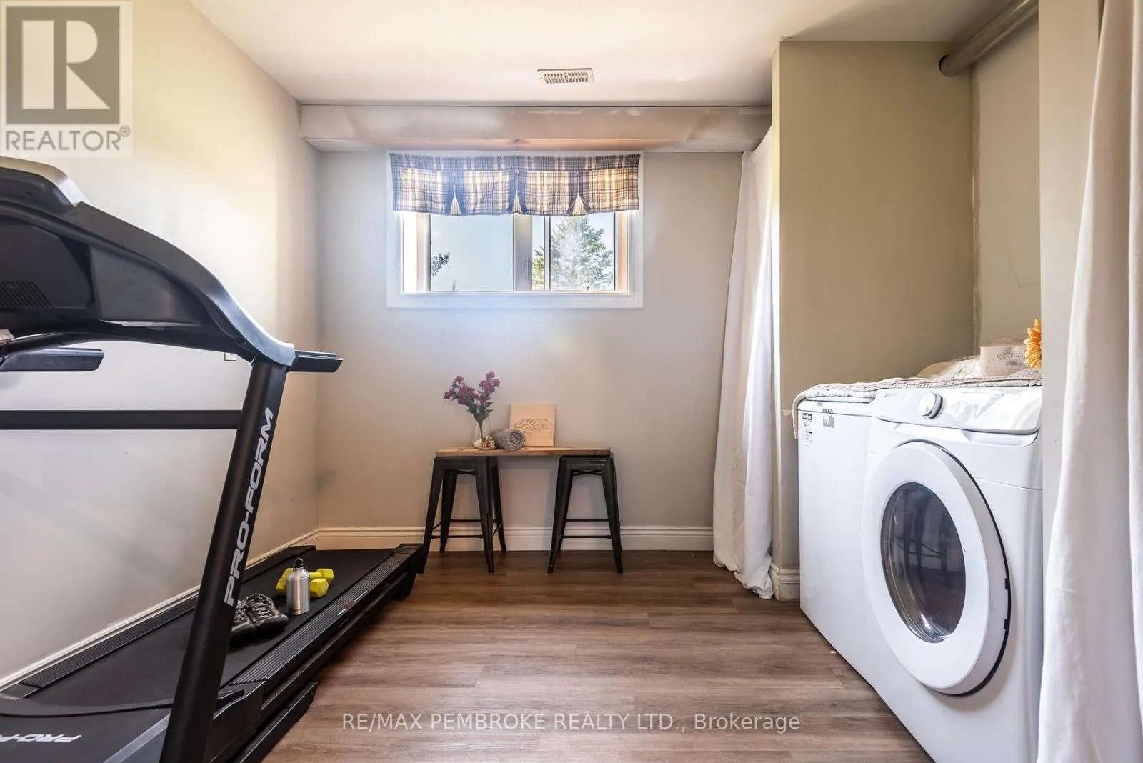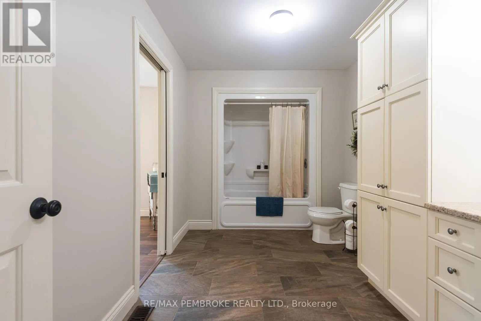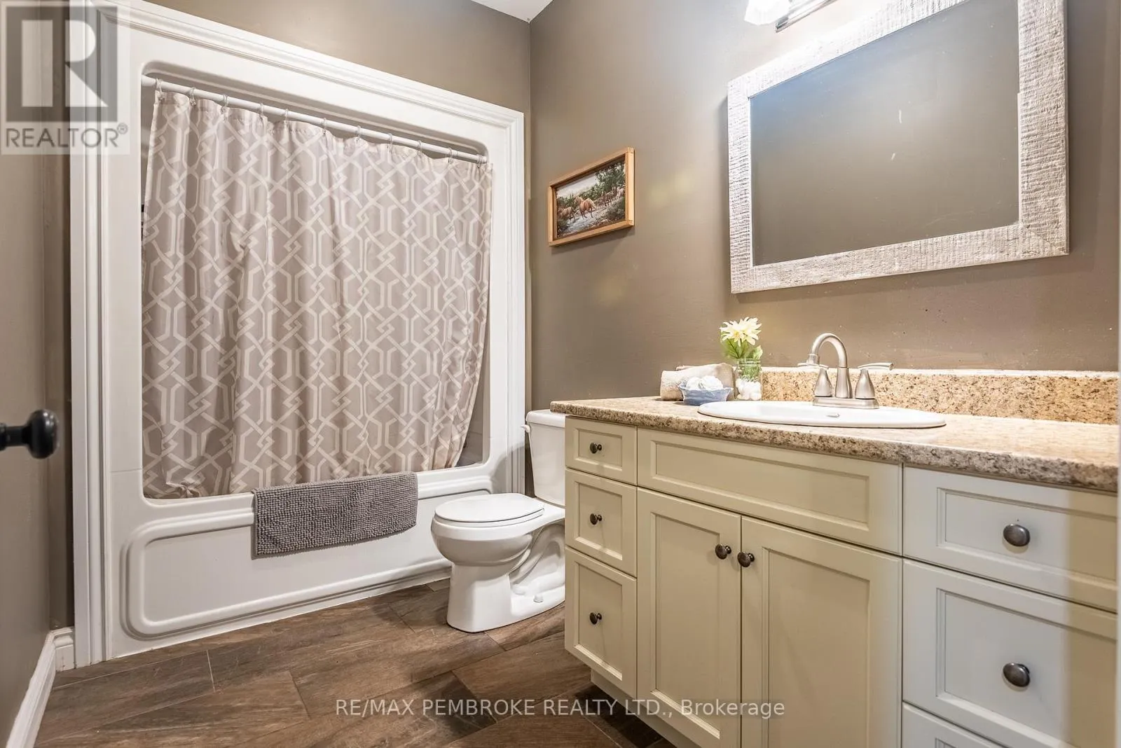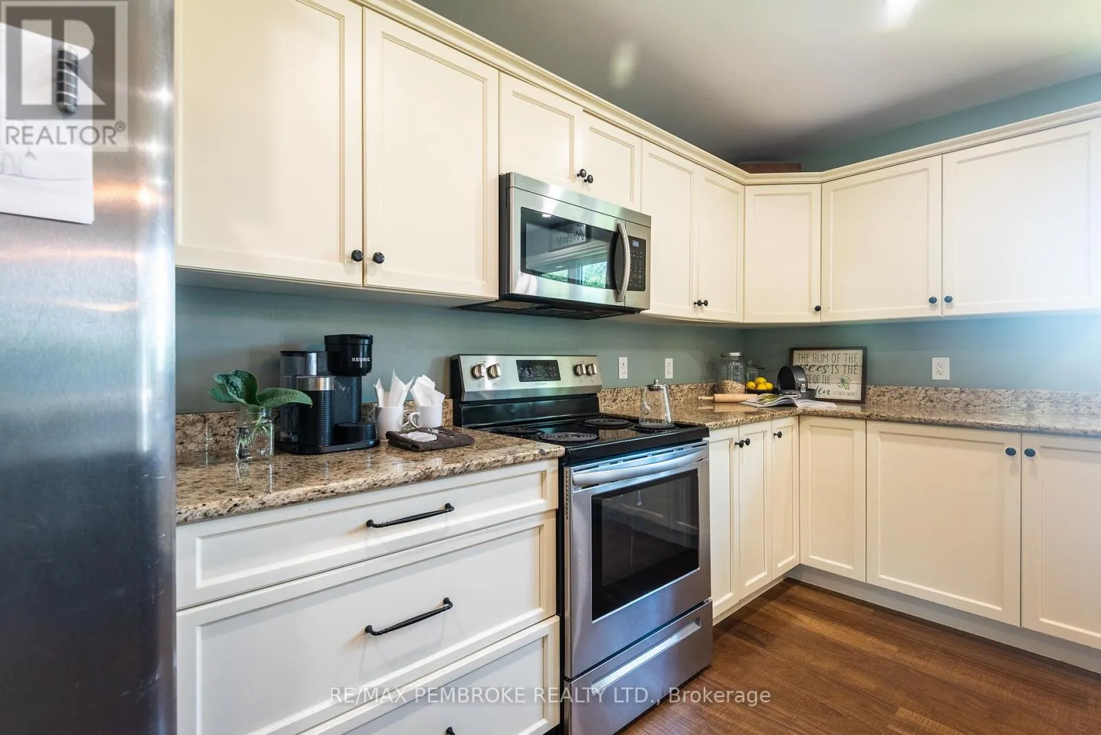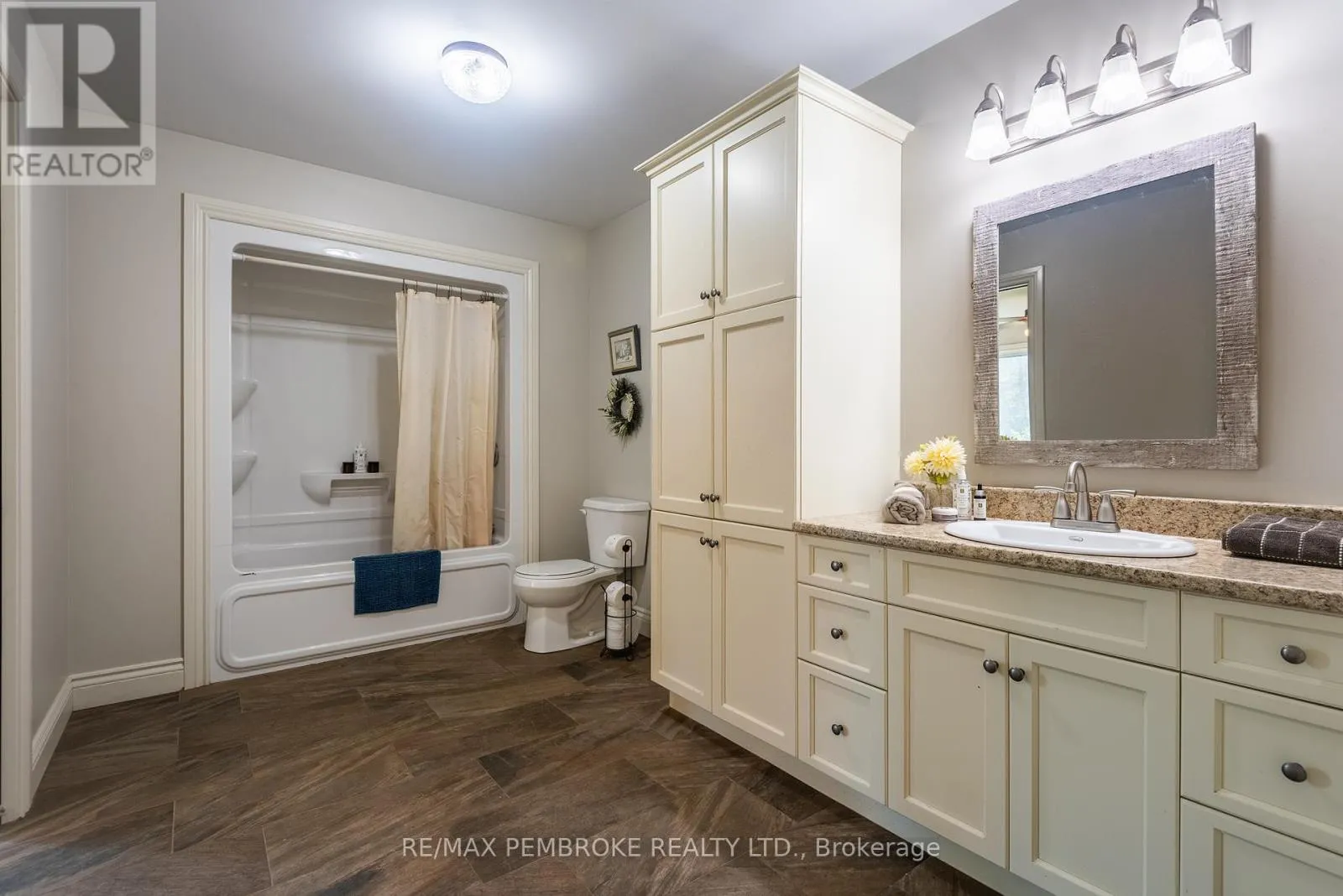 Cross Streets: Doran and Round Lake. ** Directions: Round Lake Rd to Doran to Sandy Beach. This custom built home sits on a picturesque, three acre parcel of land surrounded by fields, on a quiet country road; a quick 15 minute drive to Petawawa or Pembroke, and short commute to Highway 17. The raised ranch design welcomes you with a spacious foyer and ample natural light. The upper level boasts a custom kitchen by Sylvestre's, with modern cream cabinetry and contrasting island that seats six, has a built in second oven, and offers an abundance of prep space with natural granite countertops, and an apron front sink overlooking the rear yard. You have access to the deck and yard, as well as the attached garage from the main floor. Also on this level you will find a spacious primary bedroom with cheater ensuite and walk in closet, and two additional bedrooms. The lower level offers an expansive family room with wood fireplace, two more bedrooms, full bathroom, large finished laundry room and a utility room with lots of space for hobbies. 48 hour irrevocable on any Offer (id:27476)