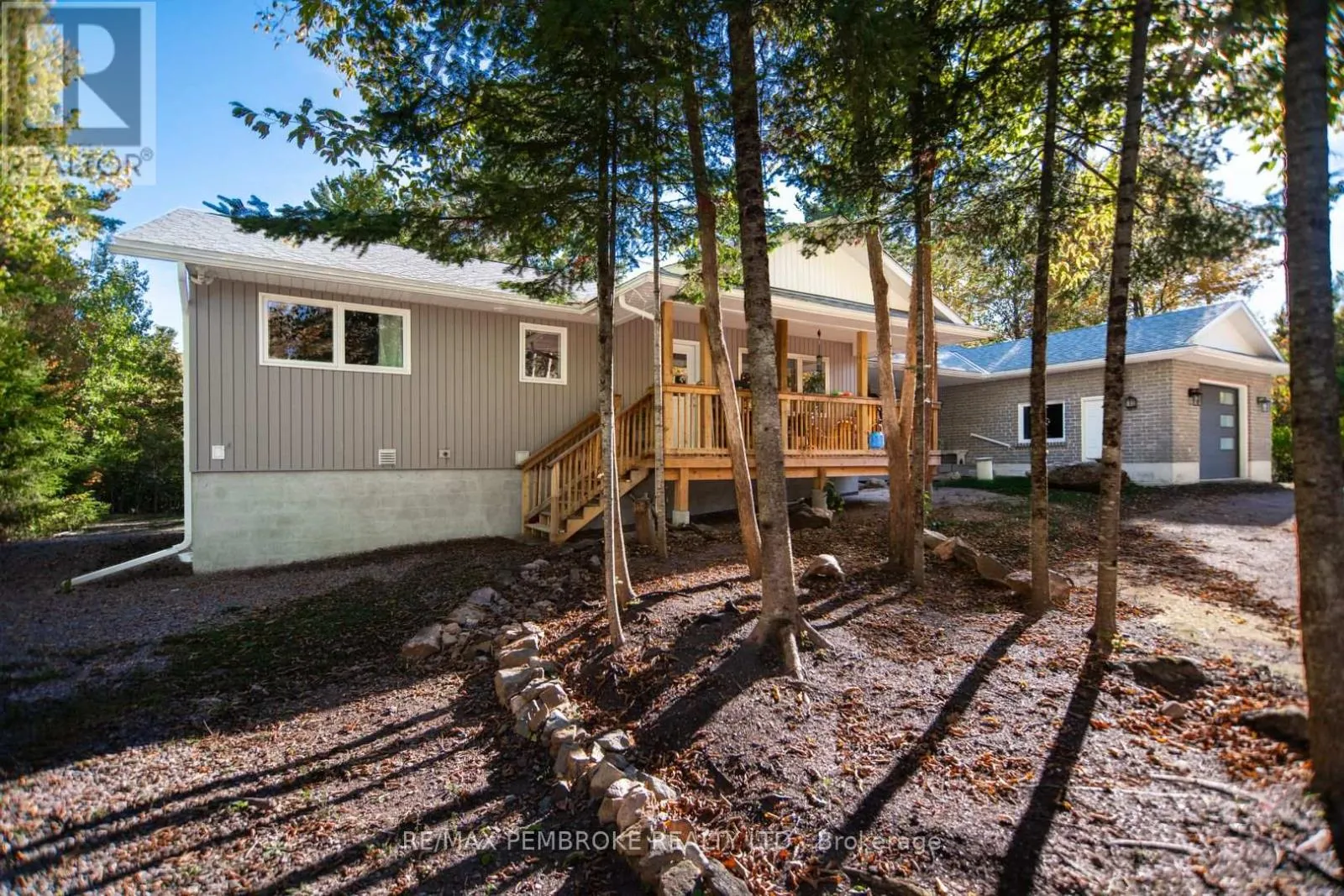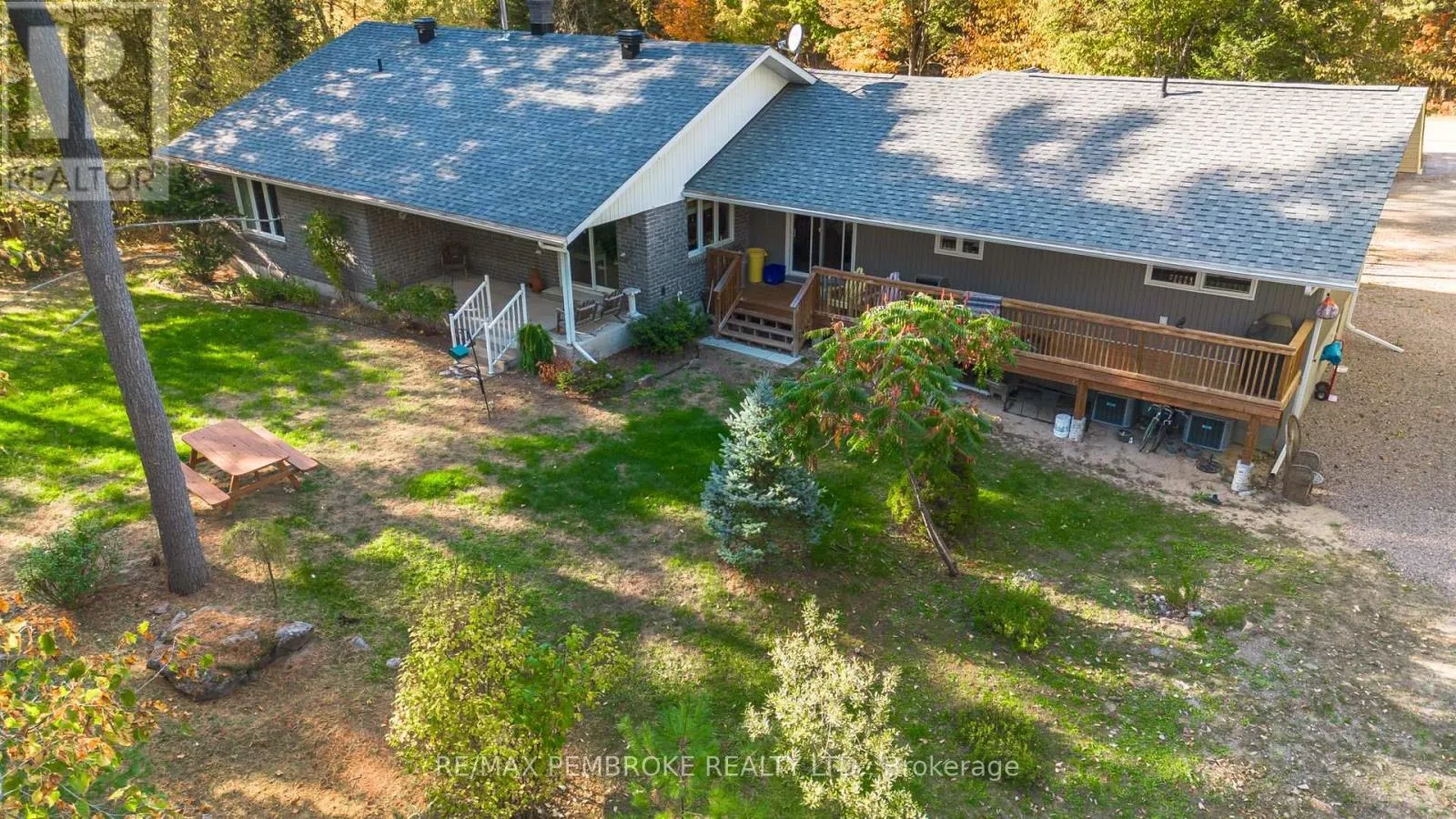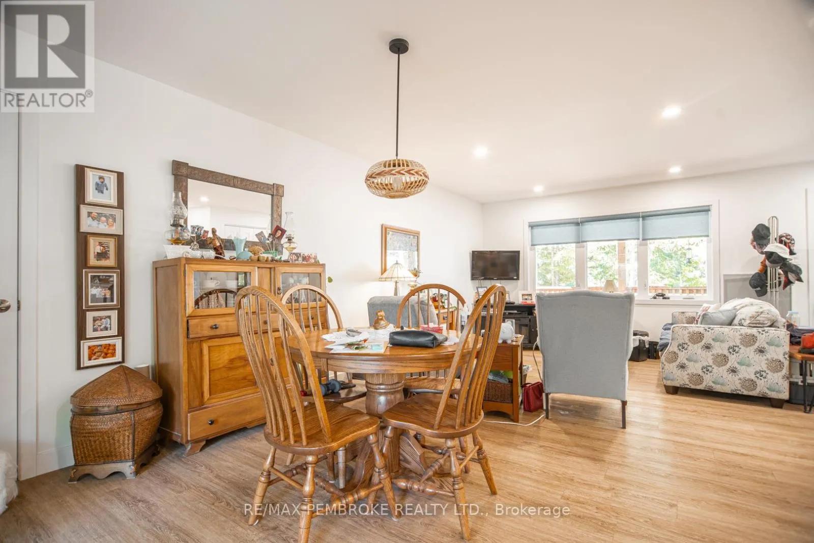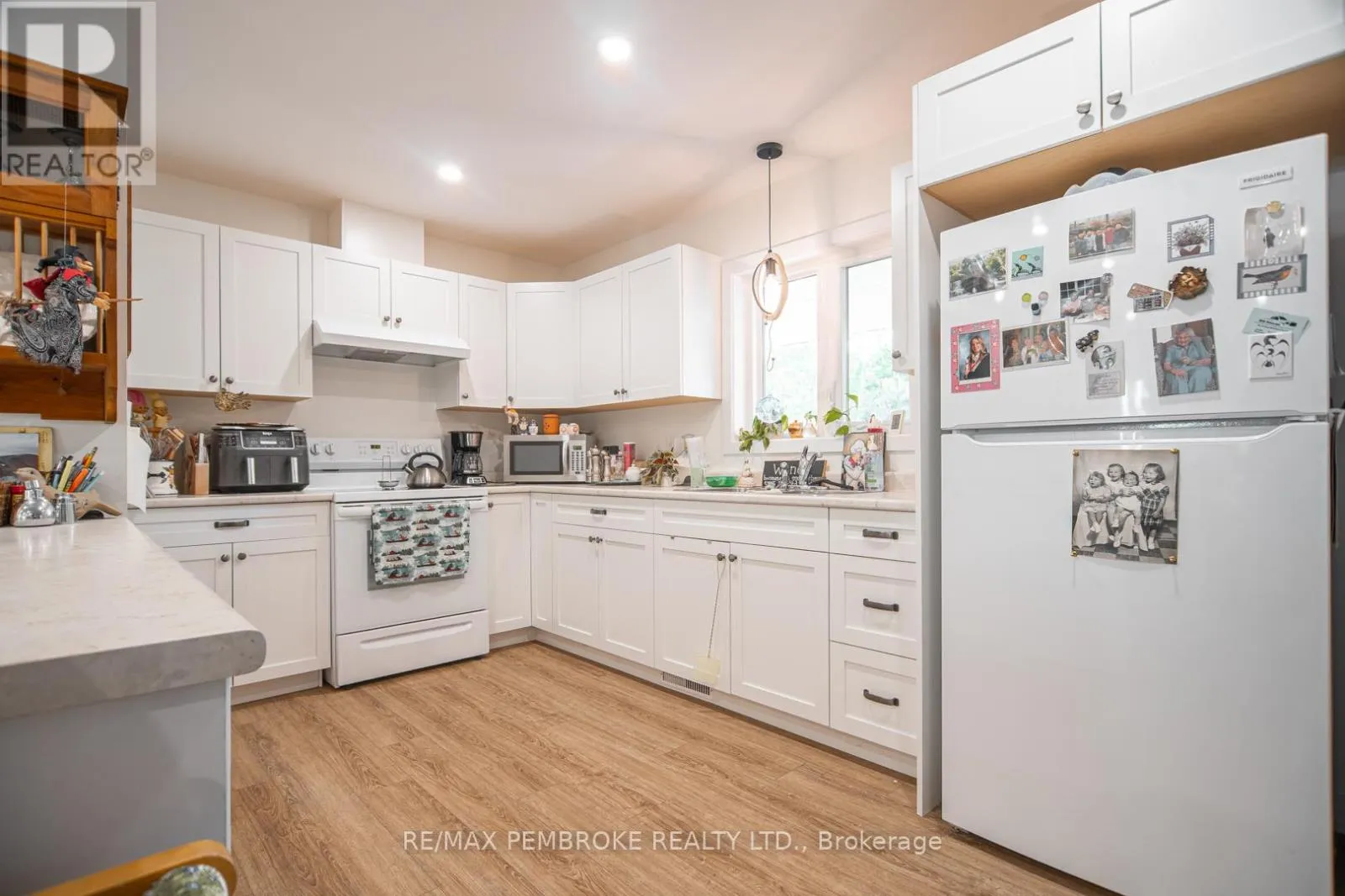 Cross Streets: Beckett View Drive and Eileen Street. ** Directions: Pembroke Street East to Highway 148, right onto Eileen Street. This purpose built side by side duplex makes for a great multi generational home. The recently added two bedroom addition has an adjoining door providing direct access between the units, perfect for those requiring assisted living. Nestled among the trees in a prestigious neighbourhood close to the Ottawa River the property is just a short drive to Pembroke. Unit A is bright and cheery with an open concept kitchen, dining and living room. The kitchen features modern white cabinetry and is enhanced by an authentic wood cook stove. The main floor also has a large primary bedroom with four piece en-suite and a huge walk-in closet. A three piece washroom, a large second bedroom and convenient direct access to the attached garage complete the main floor of Unit A. Downstairs find a cozy family room with a gas fireplace, two piece bath and tons of storage space. The charming addition, Unit B, is also an open concept living and dining area, featuring a large kitchen with clean white cabinetry, two good sized bedrooms, a three piece bath and convenient laundry all enhanced by gleaming hardwood flooring. The unfinished basement makes for a lot of dry storage space. Both units have separate propane furnaces and electric circuits. The large one acre lot is well landscaped with abundant wildlife to enjoy. Both units have front and rear porches perfect for relaxing and enjoying the tranquil setting. Only minutes from the Ottawa River this is worth a look! 48 hour irrevocable on offers. (id:27476)