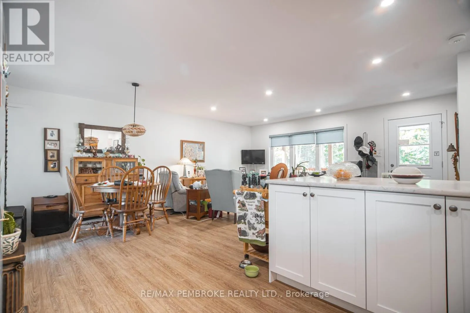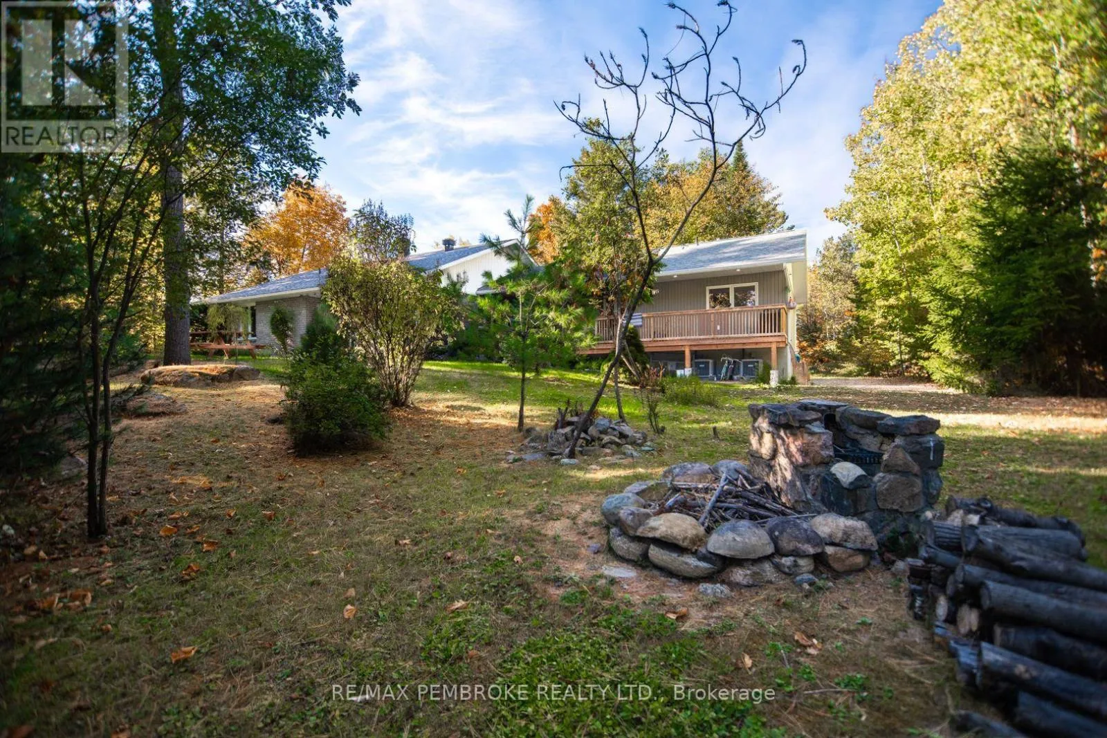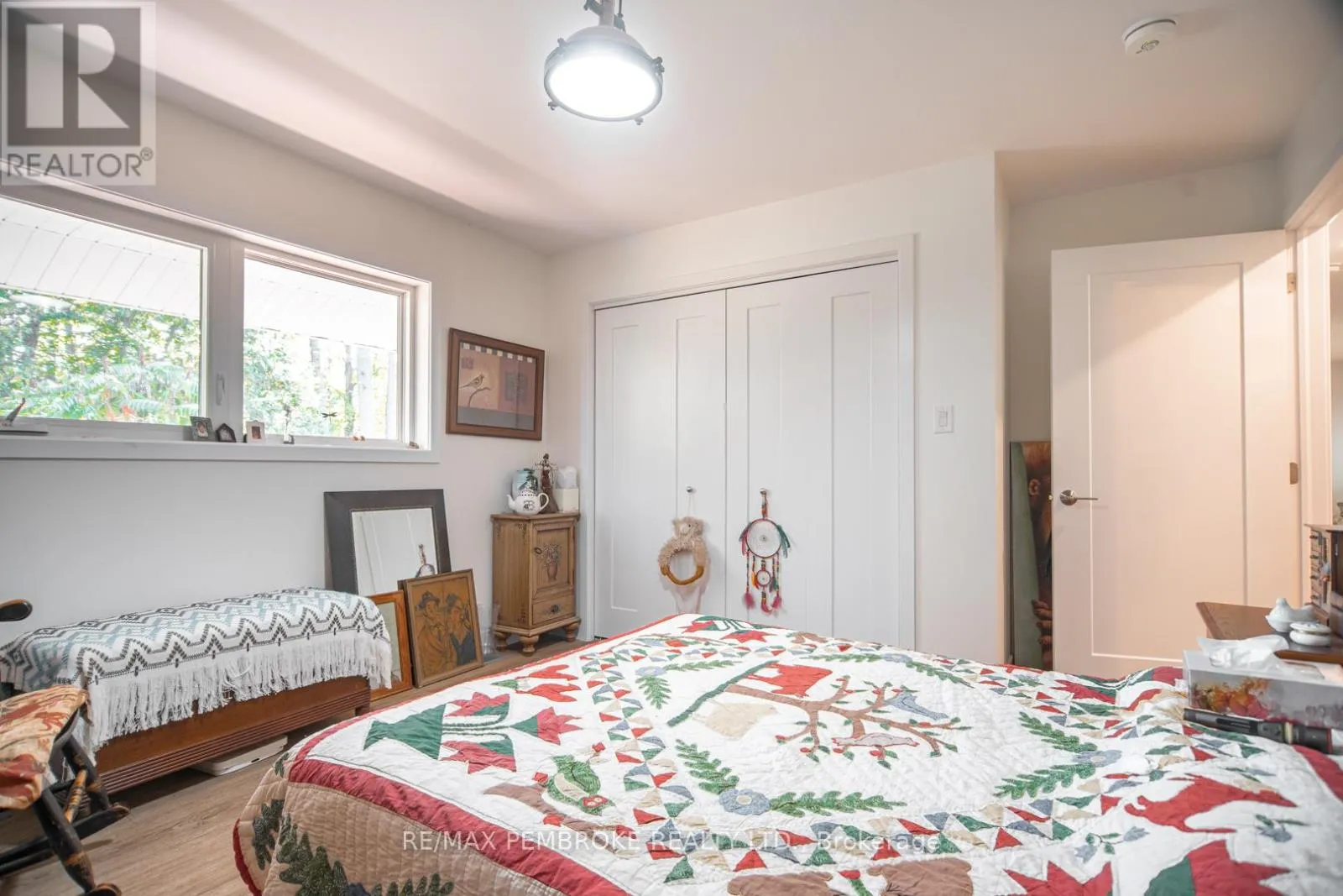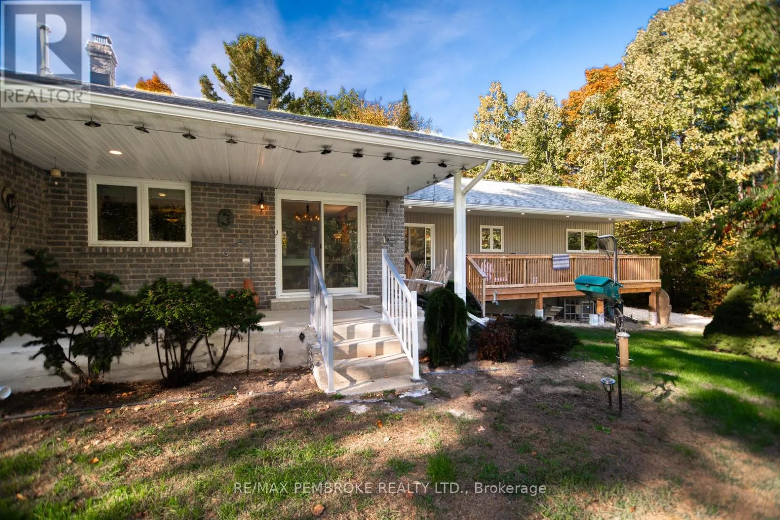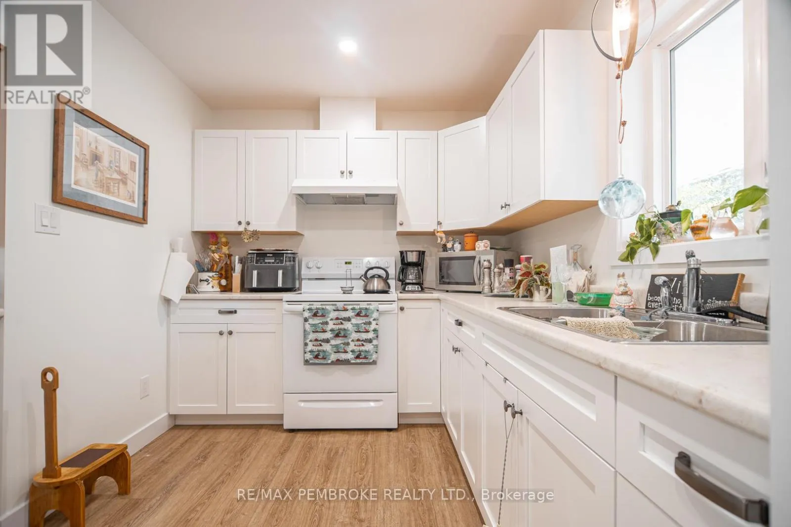Cross Streets: Beckett View Drive and Eileen Street. ** Directions: Pembroke Street East to Highway 148, right onto Eileen Street. This purpose built side by side duplex makes for a great multi generational home. The recently added two bedroom addition has an adjoining door providing direct access between the units, perfect for those requiring assisted living. Nestled among the trees in a prestigious neighbourhood close to the Ottawa River the property is just a short drive to Pembroke. Unit A is bright and cheery with an open concept kitchen, dining and living room. The kitchen features modern white cabinetry and is enhanced by an authentic wood cook stove. The main floor also has a large primary bedroom with four piece en-suite and a huge walk-in closet. A three piece washroom, a large second bedroom and convenient direct access to the attached garage complete the main floor of Unit A. Downstairs find a cozy family room with a gas fireplace, two piece bath and tons of storage space. The charming addition, Unit B, is also an open concept living and dining area, featuring a large kitchen with clean white cabinetry, two good sized bedrooms, a three piece bath and convenient laundry all enhanced by gleaming hardwood flooring. The unfinished basement makes for a lot of dry storage space. Both units have separate propane furnaces and electric circuits. The large one acre lot is well landscaped with abundant wildlife to enjoy. Both units have front and rear porches perfect for relaxing and enjoying the tranquil setting. Only minutes from the Ottawa River this is worth a look! 48 hour irrevocable on offers. (id:27476)