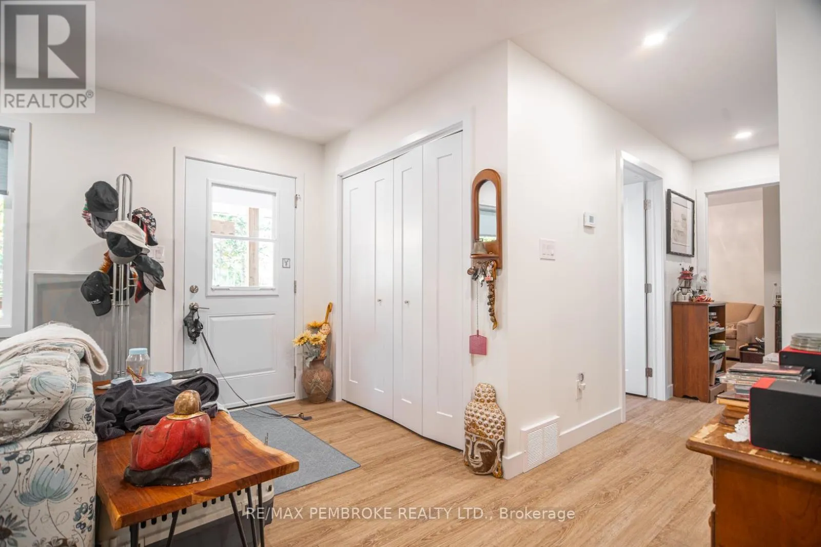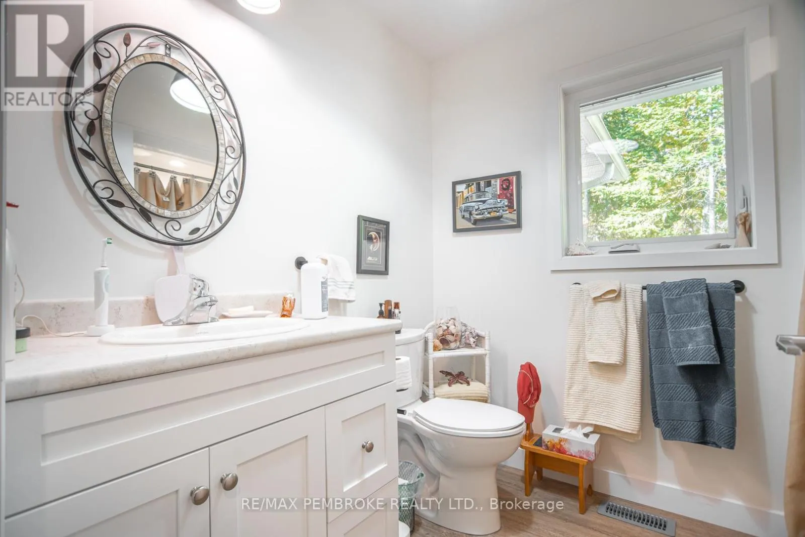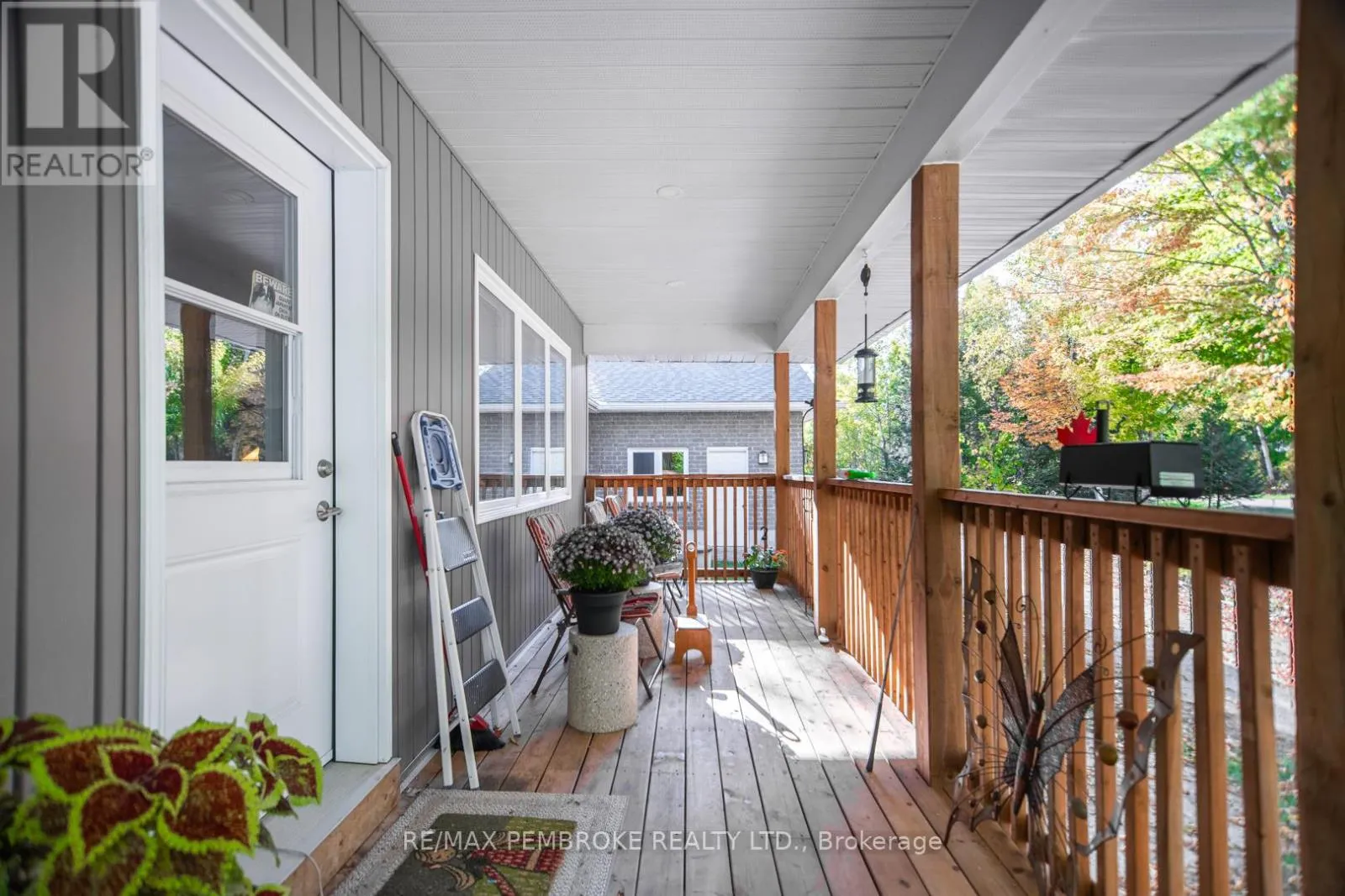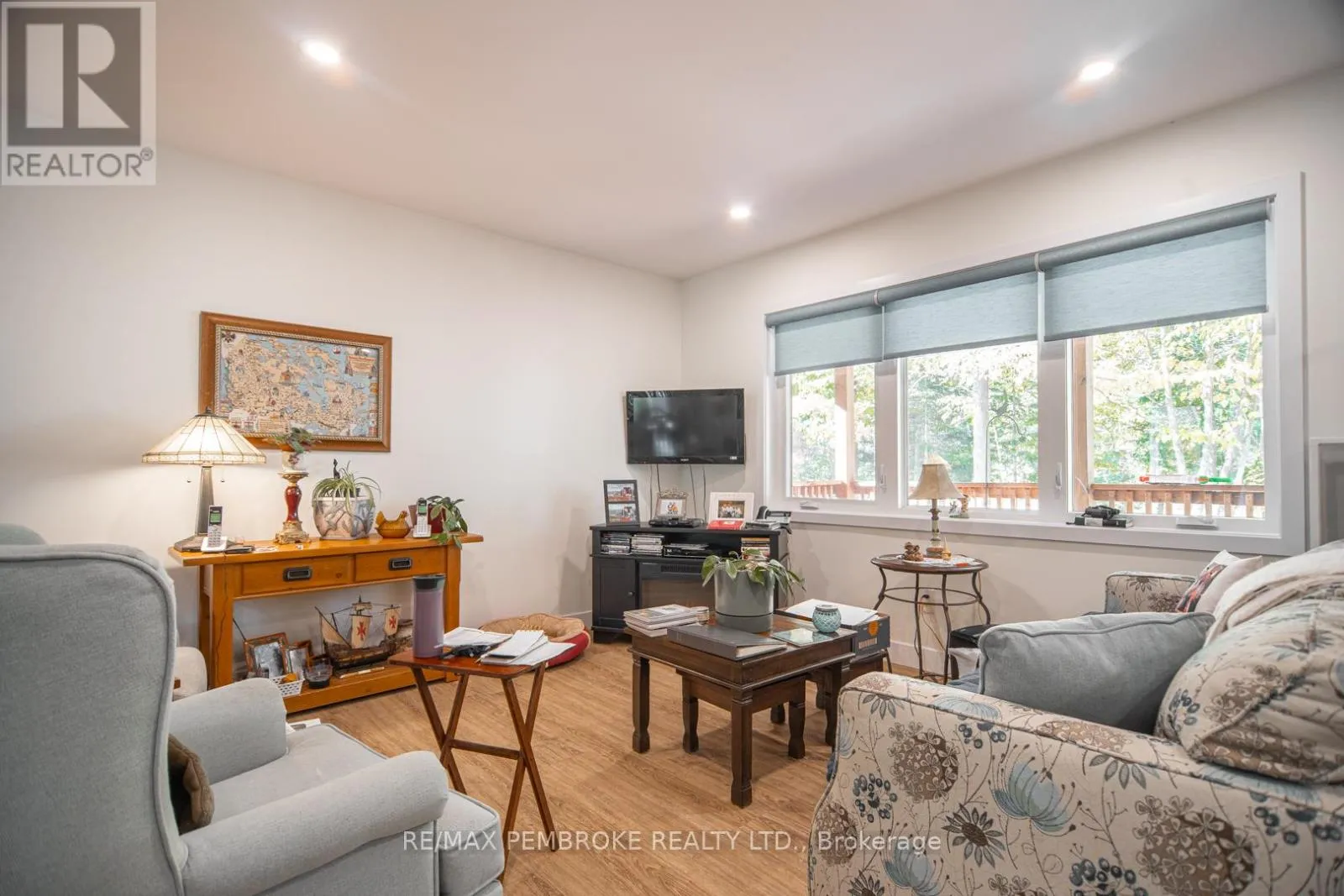 Cross Streets: Beckett View Drive and Eileen Street. ** Directions: Pembroke Street East to Highway 148, right onto Eileen Street. This purpose built side by side duplex makes for a great multi generational home. The recently added two bedroom addition has an adjoining door providing direct access between the units, perfect for those requiring assisted living. Nestled among the trees in a prestigious neighbourhood close to the Ottawa River the property is just a short drive to Pembroke. Unit A is bright and cheery with an open concept kitchen, dining and living room. The kitchen features modern white cabinetry and is enhanced by an authentic wood cook stove. The main floor also has a large primary bedroom with four piece en-suite and a huge walk-in closet. A three piece washroom, a large second bedroom and convenient direct access to the attached garage complete the main floor of Unit A. Downstairs find a cozy family room with a gas fireplace, two piece bath and tons of storage space. The charming addition, Unit B, is also an open concept living and dining area, featuring a large kitchen with clean white cabinetry, two good sized bedrooms, a three piece bath and convenient laundry all enhanced by gleaming hardwood flooring. The unfinished basement makes for a lot of dry storage space. Both units have separate propane furnaces and electric circuits. The large one acre lot is well landscaped with abundant wildlife to enjoy. Both units have front and rear porches perfect for relaxing and enjoying the tranquil setting. Only minutes from the Ottawa River this is worth a look! 48 hour irrevocable on offers. (id:27476)