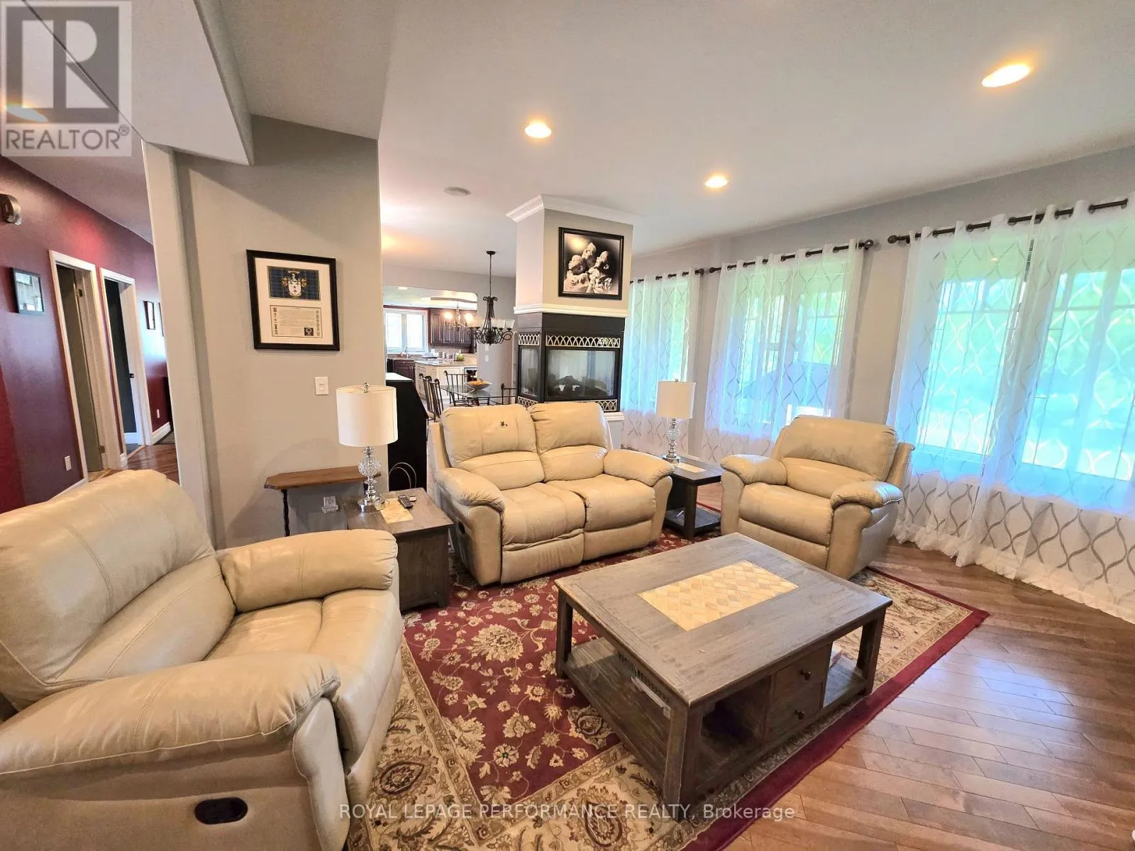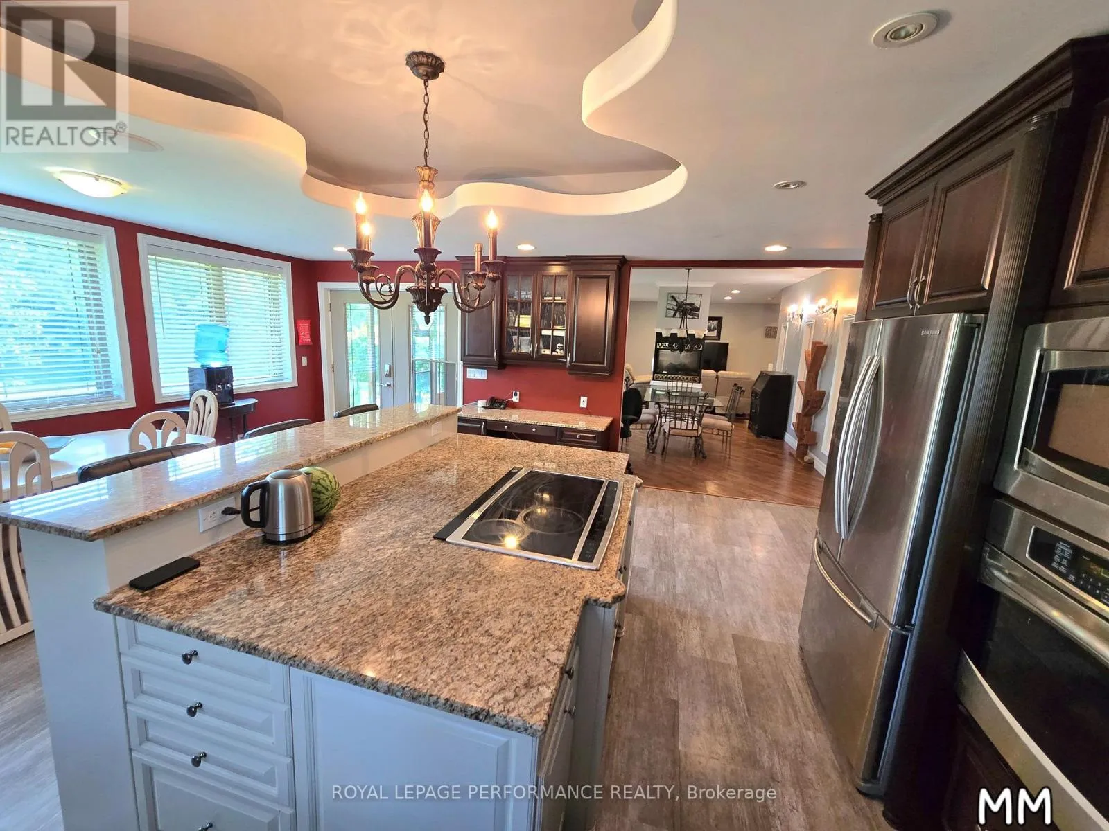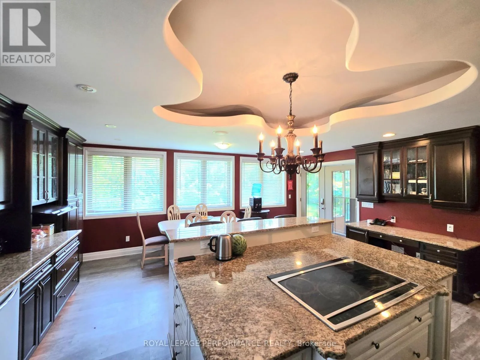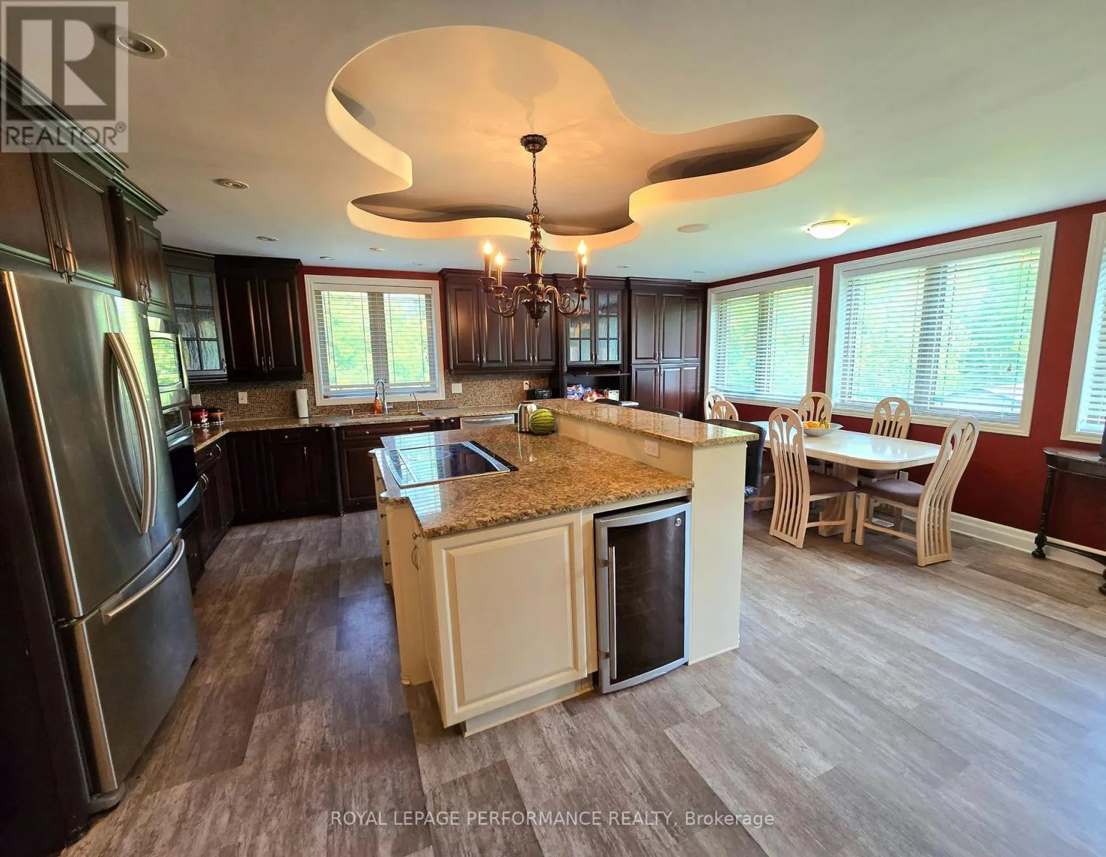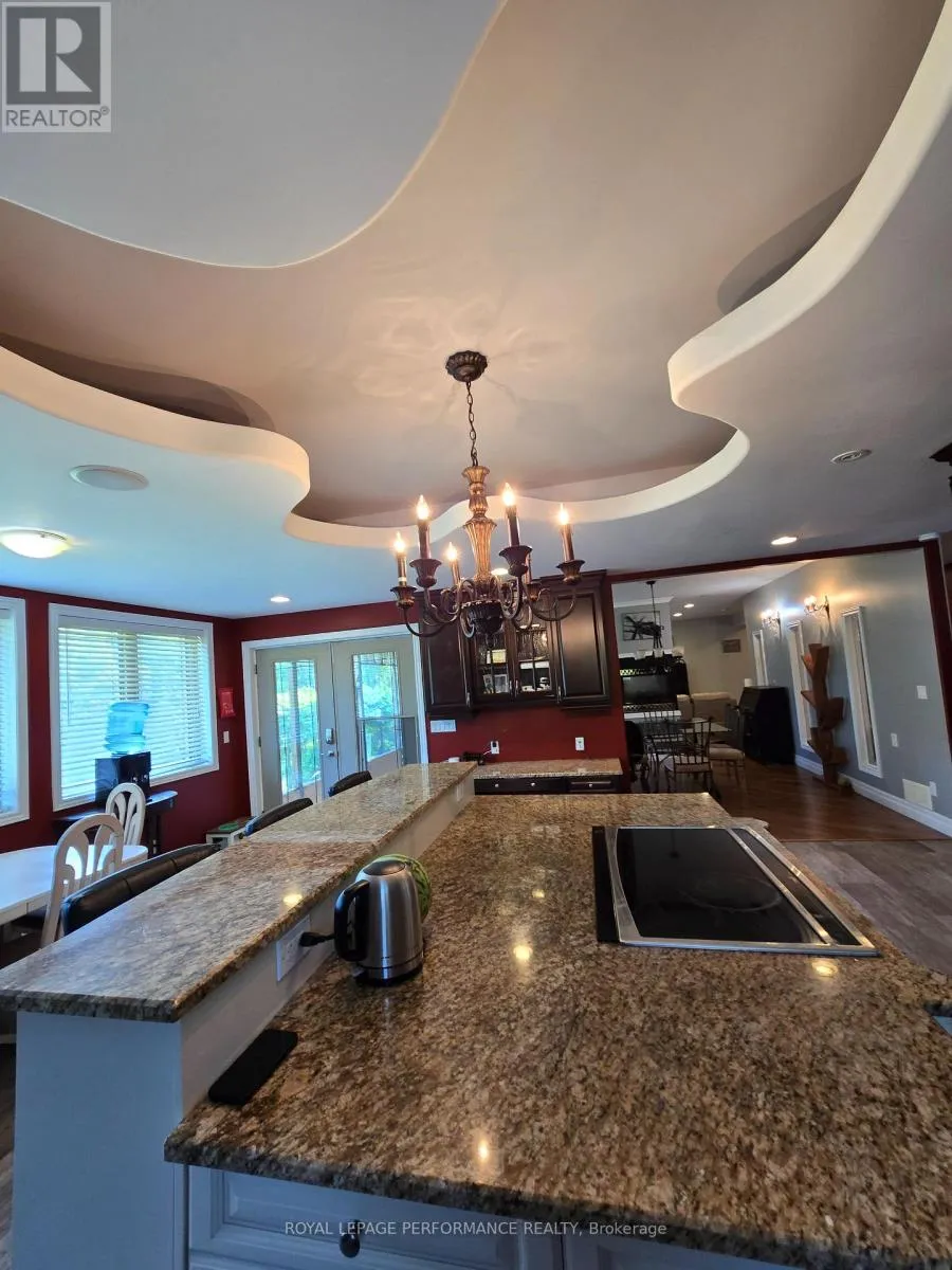 Cross Streets: Beckett View Drive. ** Directions: Pembroke St East to Hwy 148 to Beckett View , then onto Eileen St. Distinctive custom all stone 4 bedroom bungalow on aprx 1 acre landscape lot in desirable Cotnam Island, Pembroke, with additional feature of a 2 bedroom In-Law Suite. Impressive entry hall welcomes you into this spacious home with aprx 5200 sq feet of living space, this custom home boast large, bright open concept living space with 9 ft ceilings, and high end finishes. Enjoy the ambiance of the 4 sided gas fireplace, accenting living & dining rooms area which open up to a well appointed kitchen with walkout to the screened-in expansive back porch overlooking the landscaped private yard with shed and greenhouse. The large sit in kitchen is equipped with custom cabinets, desk, high end appliances including induction cooktop with downdraft fan, wine fridge & sit at bar. Adjacent to the kitchen is a small den/office, plus main floor laundry room with counter & sink, plus linen closet. The main floor Primary bedroom also opens onto the back screened-in deck, has a walk-in closet and large ensuite bathroom with jetted tub, walk-in shower & heated floor & towel rack. Down the hall, 2 other main floor bedrooms share a 3 piece 'Jack & Jill' washroom. The fully finished lower level basement reveals a large recreation room with a wet bar, in-floor radiant heat, 3 piece bathroom, a 4th bedroom and large storage room. A little further down the hall, access to a 2 bedroom 'In Law Suite' with kitchen/living room, 3 piece bathroom, and a separate outdoor private entrance, which makes this an ideal 'multi generational' home. The double garage & driveway can accommodate 10 + vehicles. Don't let this gem get away, book your showing today. (id:27476)