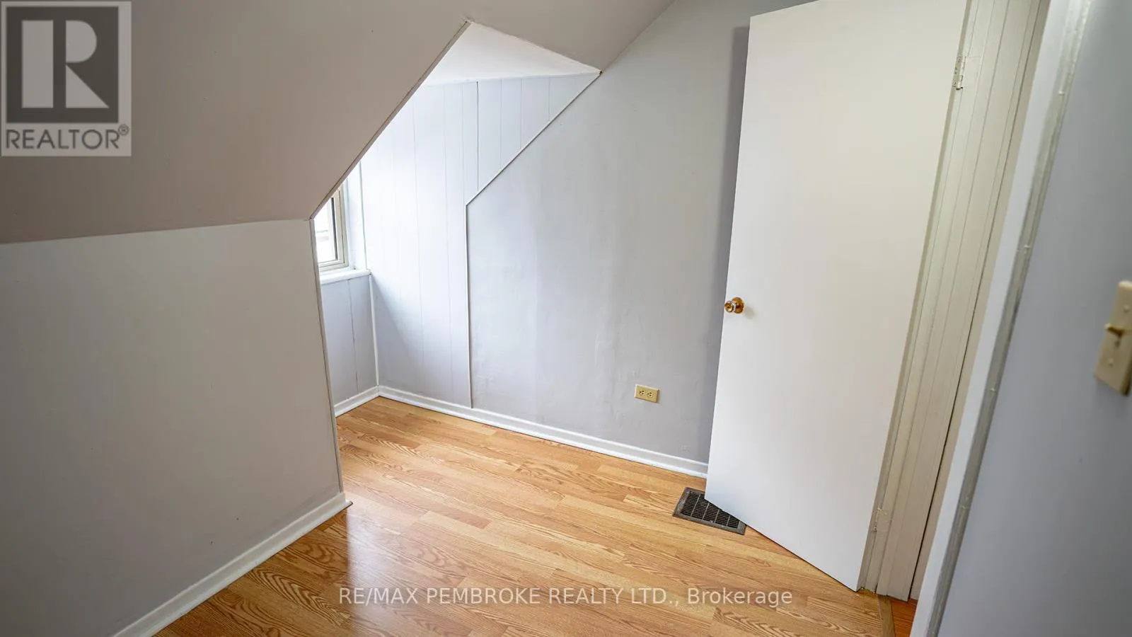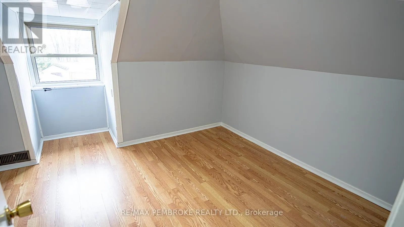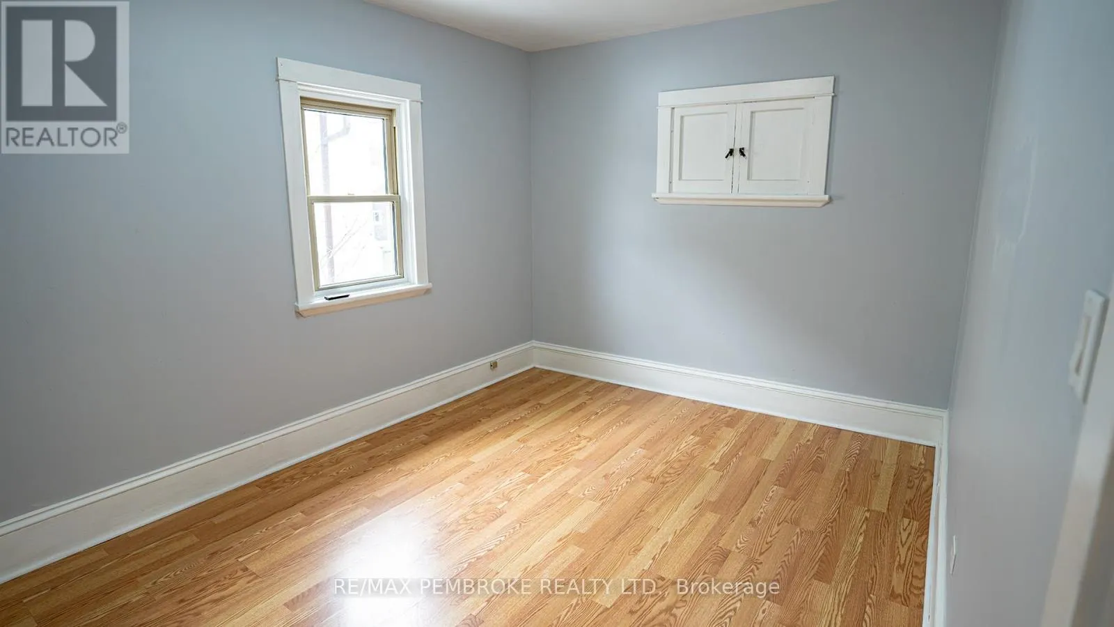 Cross Streets: Golf Course and Heron. ** Directions: Pembroke St to Golf Course Rd. !!!! OPEN HOUSE this Sunday April 19th 2 - 4pm !!!! Welcome to 206 Golf Course Rd. This Cute and Cozy detached 1.5 storey home 4 bed, 2 bath home, is conveniently located between Pembroke & Petawawa. Featuring LARGE modern white eat-in kitchen with an abundance of cabinetry. Main floor has a bright living room, LARGE primary bedroom, and 2nd bedroom and an updated 3pc bathroom too. The Bright mudroom at back with patio door leading to detached garage that has power. The second level have 2 additional bedrooms of good size and another bathroom. The home sits on a DEEP lot with no neighbors behind you. High efficiency gas furnace, central air and more! Short commute to Garrison Petawawa, and access to Hwy 417. This lovely home shows well with low utility costs which makes it an excellent opportunity for YOU! If you have a large family and are home shopping on a budget this home is a great place to call HOME. (id:27476)