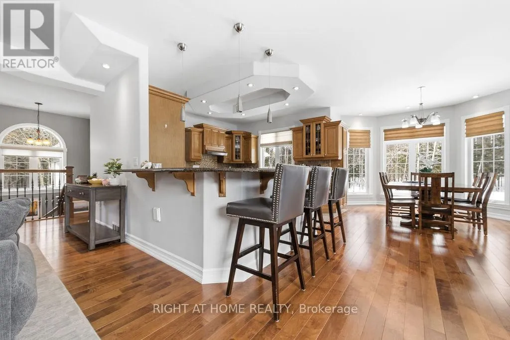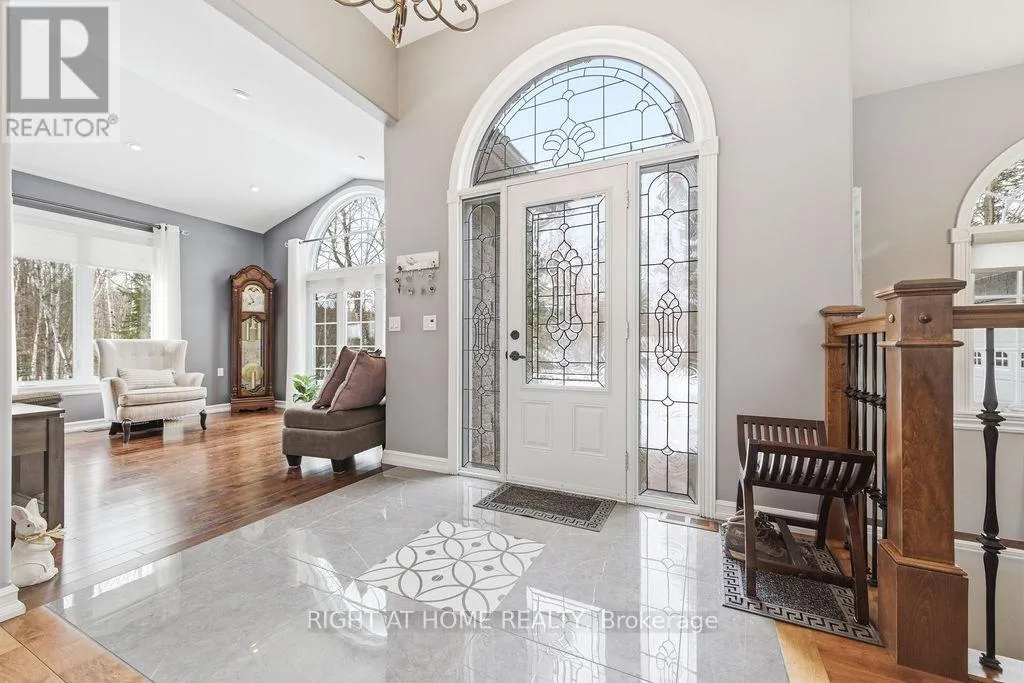 Cross Streets: Round Lake Road/ Doran Road. ** Directions: Only a few minutes from Hwy. 17, South on Round Lake Road, just past Alice General Store/Esso. WHERE TO BEGIN! This Custom built all brick/stone 3 bedroom bungalow is located on a quiet street, just 10 minutes from downtown Pembroke and 15 minutes to Petawawa. Located on 6.83 acres, this property is zoned RU and has a variety of uses. The home is ideal for Executives, Business Owners, Retirees who are looking for a Move In Ready home that is easy to care for. Privacy and Nature are some of the main reasons why Rahns Rd. is one of the most desirable in Laurentian Valley. This home has an attached double garage with direct access to the main and lower floors and propane heater. A stand alone 3 vehicle + garage/shop(32'x40')is ideal for those extra toys, or a shop (insulated and hydro). The Backyard has a large level lawn, firepit, shed that overlooks the forest. Ideal for bird watching and winter deer visits. The dual level patio has plenty of room to entertain. A new septic tank (2025) was installed (1,000 gallons).. and side cement walkway(2025). The large front door and bright foyer welcomes you and your quests to a spectacular layout. The open concept main floor has gleaming hardwood floors, large bright windows , makes it easy to move, unpack and enjoy! The Kitchen is large enough for many chefs! The breakfast bar is so handy, and elegant pendant lights exudes warmth. All appliances are included. The huge quartz counters and numerous cabinets will satisfy all the chefs! The Main floor laundry is very handy. Off the living room is the primary king sized bedroom with large walkin closet and ensuite. The propane insert fireplace is so handy and adds instant warmth to the main level. The bright lower level can be reached via the new hardwood stairs/banister or via the rear door, or garage. 2 large bedrooms with large closet space and a large recroom with a huge washroom with separate tub and shower (lots of potential for a granny suite). Bell High Speed Fibe available.New Furnace (2019) Newly painted interior (2025). Enjoy Beautiful fall colours.. (id:27476)