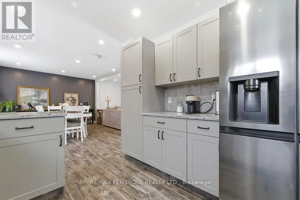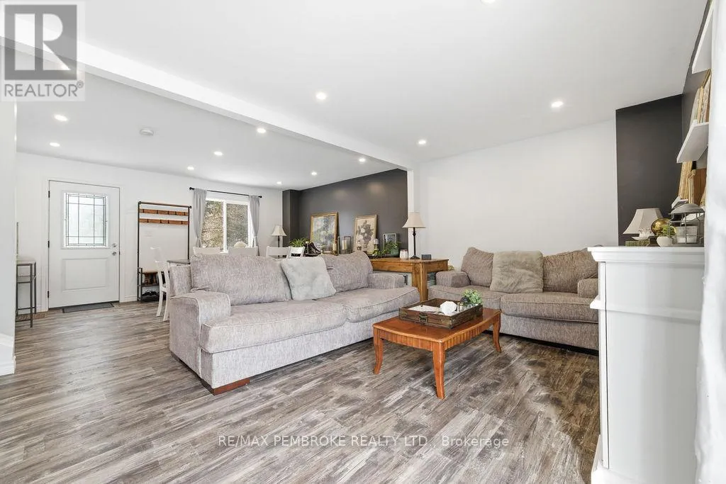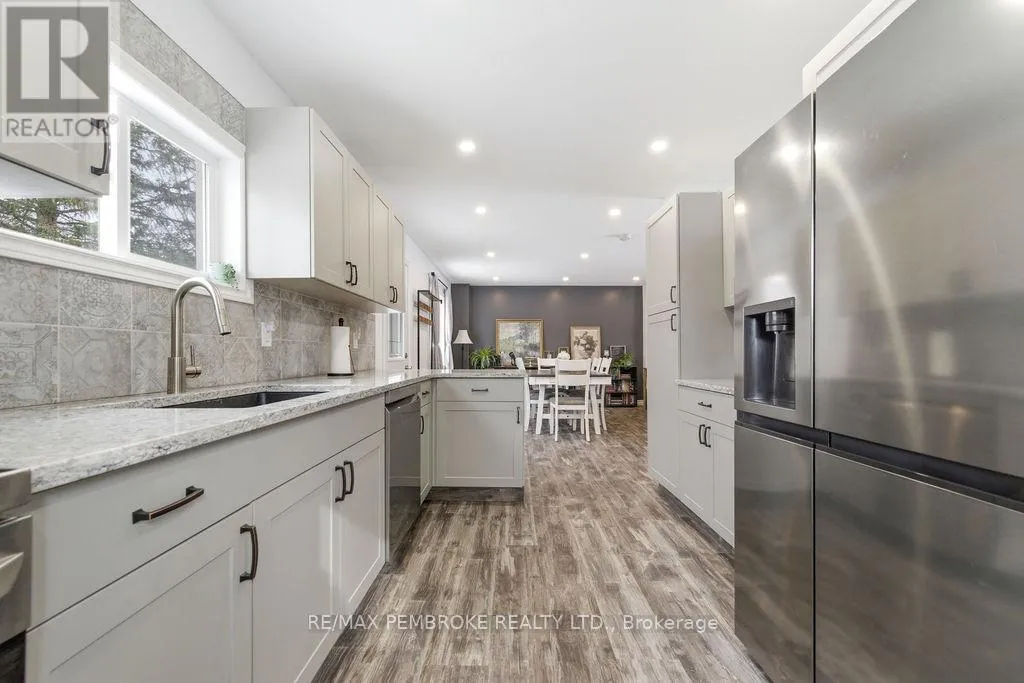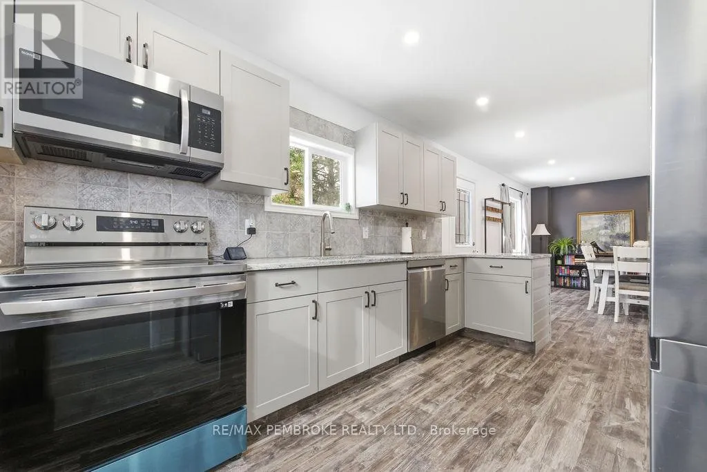 Cross Streets: Mud Lake/Saw Mill Rd. ** Directions: On Mud Lake Rd, just passed Saw Mill Rd, home on the left. Set on a stunning 6.94-acre lot backing onto the scenic Muskrat River, this beautifully updated 3 bedroom, 2 bathroom home offers the perfect blend of privacy, modern comfort, and convenience. Surrounded by mature trees and natural bush, the property provides plenty of space to roam while being just minutes to town and Hwy 17.The home has been extensively renovated with modern finishes throughout, including a stylish kitchen featuring quartz countertops and backsplash, updated bathrooms, newer flooring, fixtures, windows, doors, and siding (mostly in 2022-2024). Other upgrades include added insulation, a new heat pump (2024), furnace installed in 2019, updated plumbing (2022), a newer electrical panel with much of the wiring replaced (2023), and an water treatment system recently installed in 2023 (owned) - offering peace of mind for years to come. A newly built 1,000 sq. ft. garage (2025) provides ample space for vehicles, storage, or a workshop. With all appliances included, this move-in-ready property is ideal for those seeking a turnkey home in a tranquil, nature-filled setting without sacrificing accessibility. All offers must contain a 24 hour irrevocable. (id:27476)