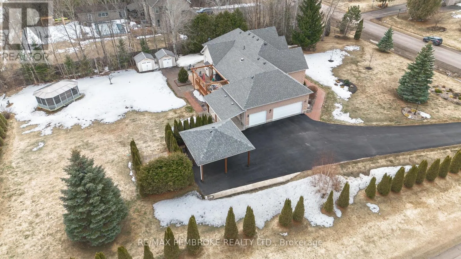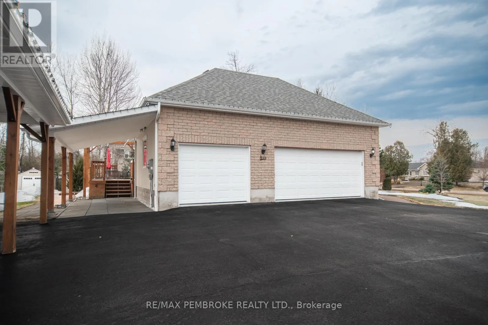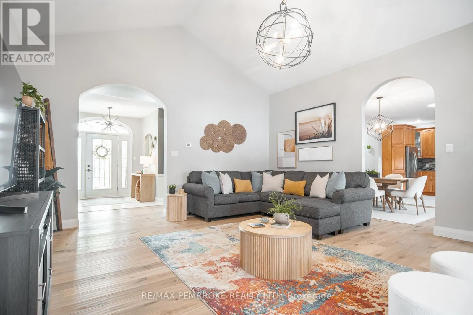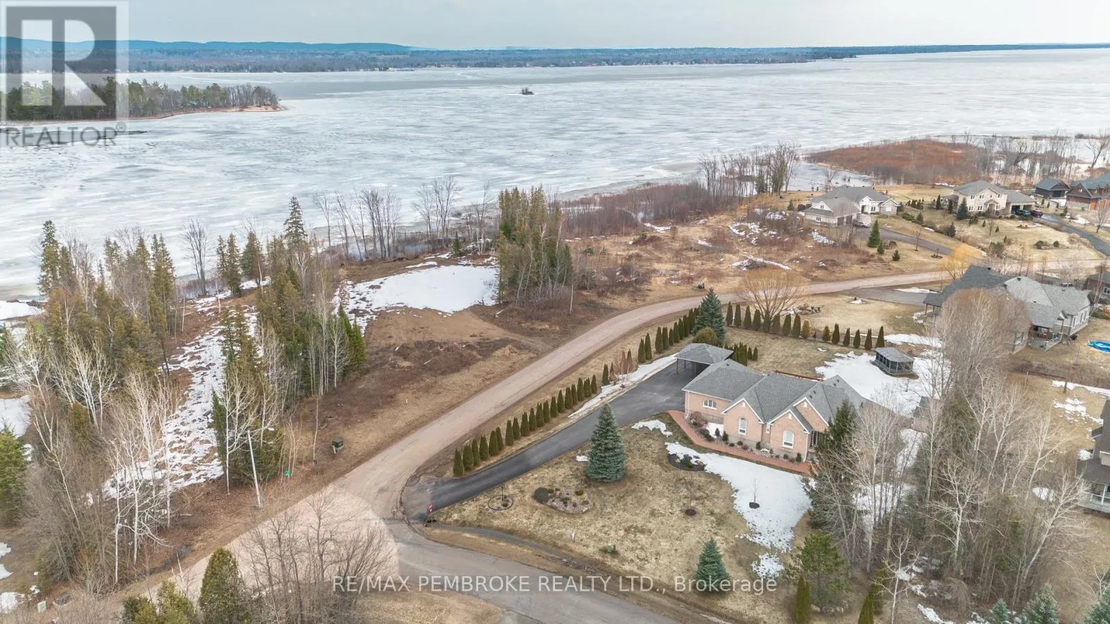 Cross Streets: Heron. ** Directions: Golf Course Rd to Mallard. Stunning executive 3+1 bedroom, 3 bathroom home set in a prestigious neighbourhood ideally located between Petawawa and Pembroke, offering breathtaking views of the Ottawa River and deeded water access-perfect for kayaking, paddleboarding, and seadooing. This stately, meticulously maintained home boasts impressive high ceilings. The spectacular living room offers a gas fireplace and vaulted ceiling that creates a warm and inviting focal point. The bright open kitchen features remote-controlled blinds (also in living room) quartz counters, all appliances and flows seamlessly into the main living space-ideal for both everyday living and entertaining.The spacious primary suite offers a private retreat complete with a walk through closet and ensuite bath. The main bathroom has been tastefully updated and includes a jet tub/shower combo.The finished lower level expands your living space with a fourth bedroom, additional bathroom, large family room, theatre room and a dedicated gym area-perfect for growing families, guests, or multi-functional living. Car enthusiasts and hobbyists will appreciate the attached insulated triple car garage with hot and cold water, along with a convenient double carport. Step outside to a large back deck or hang out in the gazebo, perfect for relaxing or hosting, surrounded by a beautifully maintained yard featuring a patio and full irrigation system installed in 2024.This immaculate home has been lovingly cared for and extensively updated, including shingles on the house (2021), carport shingles (2025), water softener (2022), hot water tank (2022), duct cleaning (2022), well pump (2024), gas furnace (2024), and updated main floor window panes (2022), along with new lighting and fresh paint throughout. A rare opportunity to own a turn-key home with upscale features, exceptional maintenance, and deeded access to the Ottawa River in one of the area's most sought-after communities. (id:27476)