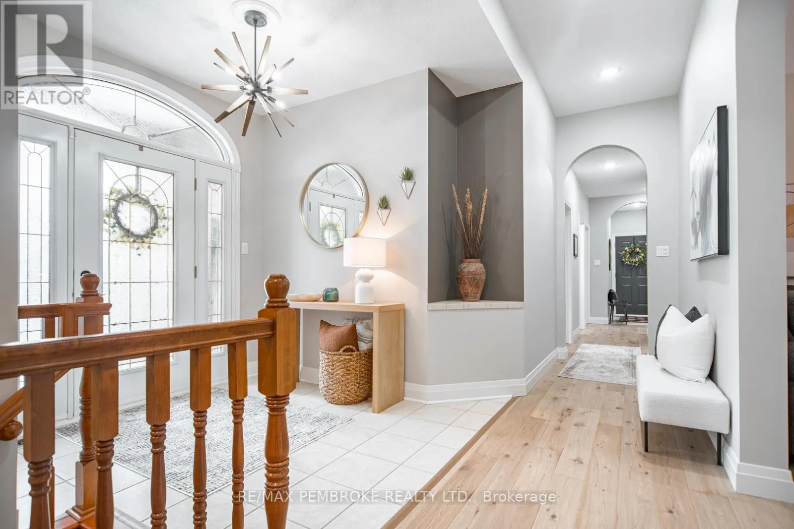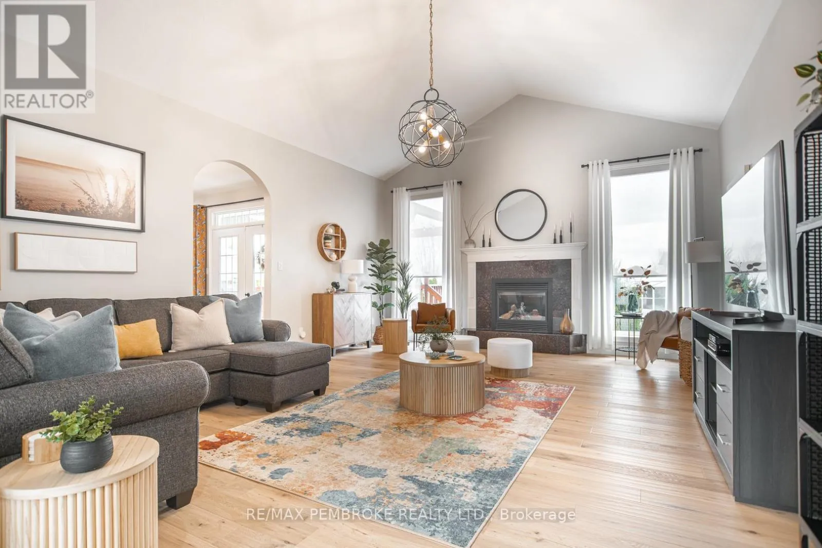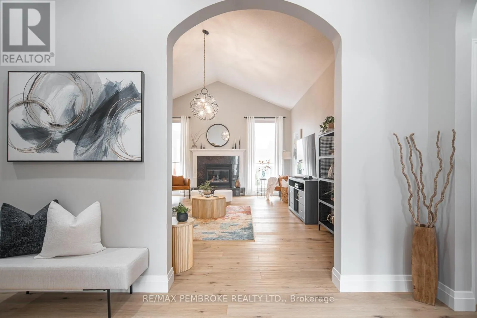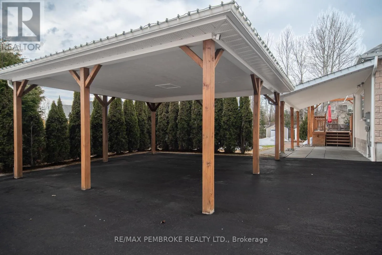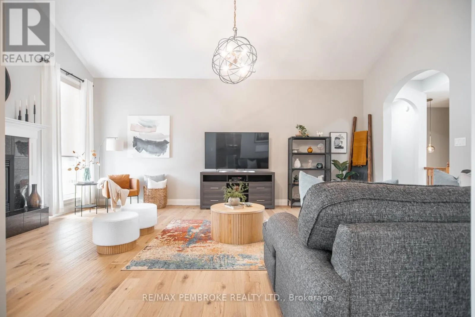Cross Streets: Heron. ** Directions: Golf Course Rd to Mallard. Stunning executive 3+1 bedroom, 3 bathroom home set in a prestigious neighbourhood ideally located between Petawawa and Pembroke, offering breathtaking views of the Ottawa River and deeded water access-perfect for kayaking, paddleboarding, and seadooing. This stately, meticulously maintained home boasts impressive high ceilings. The spectacular living room offers a gas fireplace and vaulted ceiling that creates a warm and inviting focal point. The bright open kitchen features remote-controlled blinds (also in living room) quartz counters, all appliances and flows seamlessly into the main living space-ideal for both everyday living and entertaining.The spacious primary suite offers a private retreat complete with a walk through closet and ensuite bath. The main bathroom has been tastefully updated and includes a jet tub/shower combo.The finished lower level expands your living space with a fourth bedroom, additional bathroom, large family room, theatre room and a dedicated gym area-perfect for growing families, guests, or multi-functional living. Car enthusiasts and hobbyists will appreciate the attached insulated triple car garage with hot and cold water, along with a convenient double carport. Step outside to a large back deck or hang out in the gazebo, perfect for relaxing or hosting, surrounded by a beautifully maintained yard featuring a patio and full irrigation system installed in 2024.This immaculate home has been lovingly cared for and extensively updated, including shingles on the house (2021), carport shingles (2025), water softener (2022), hot water tank (2022), duct cleaning (2022), well pump (2024), gas furnace (2024), and updated main floor window panes (2022), along with new lighting and fresh paint throughout. A rare opportunity to own a turn-key home with upscale features, exceptional maintenance, and deeded access to the Ottawa River in one of the area's most sought-after communities. (id:27476)