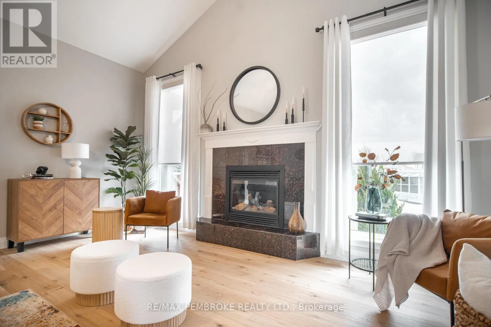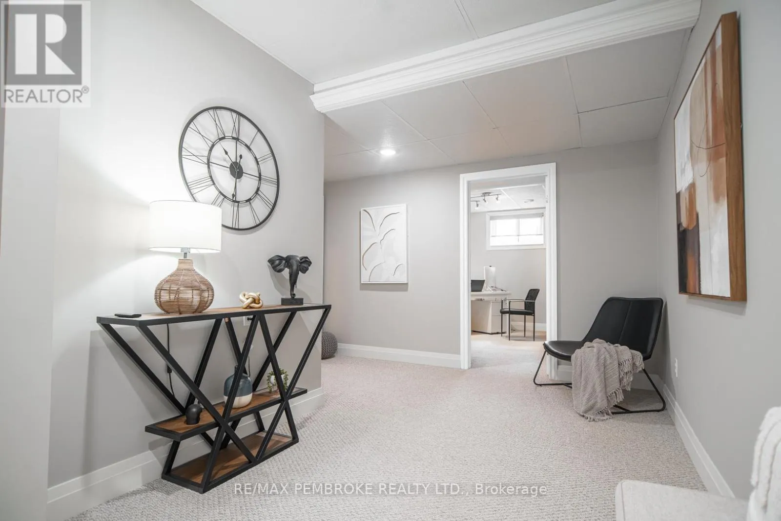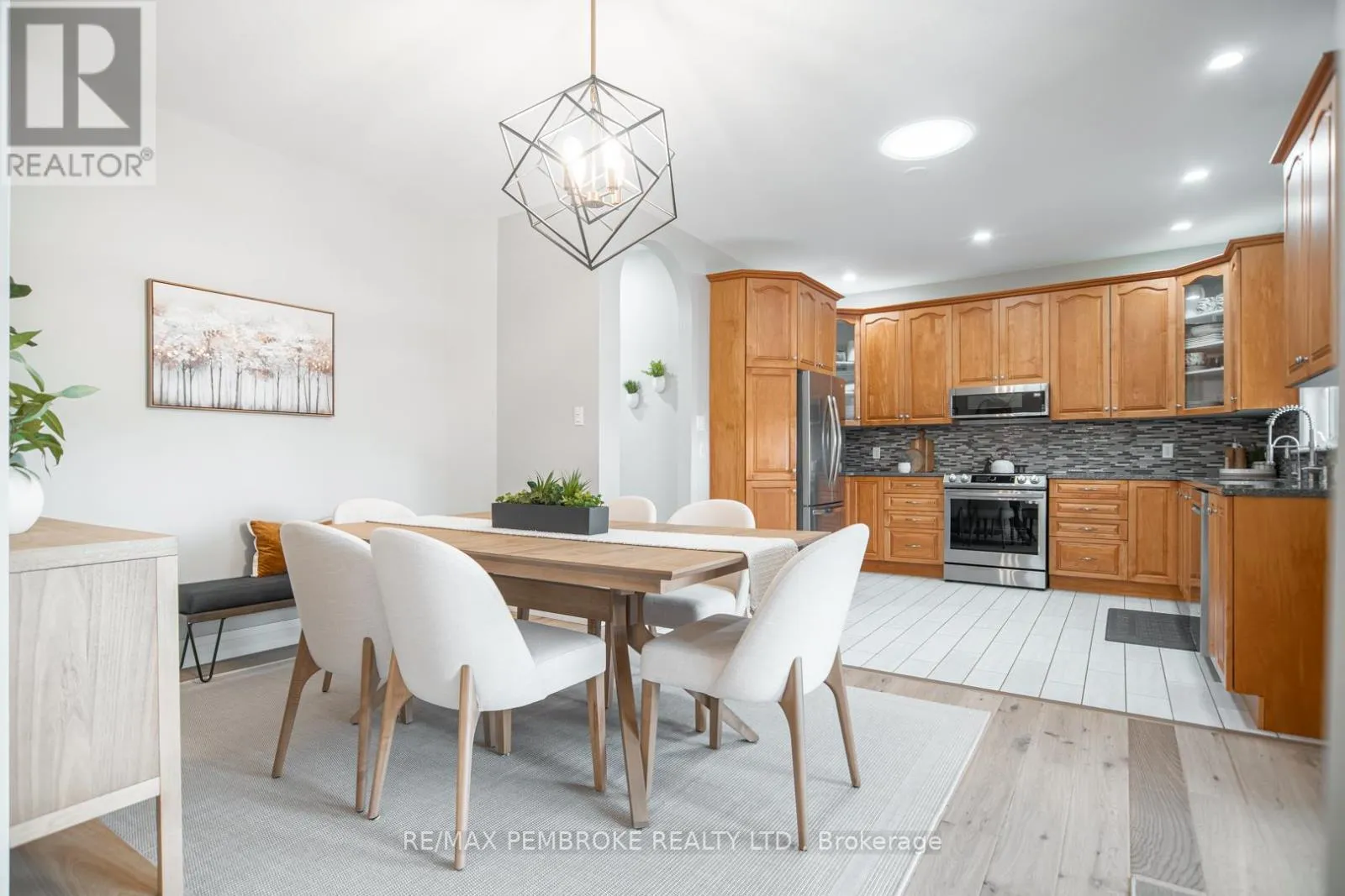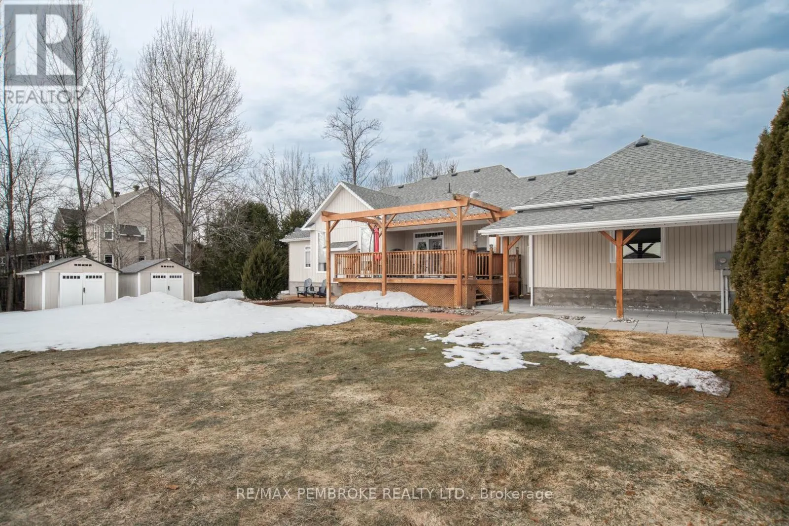 Cross Streets: Heron. ** Directions: Golf Course Rd to Mallard. Stunning executive 3+1 bedroom, 3 bathroom home set in a prestigious neighbourhood ideally located between Petawawa and Pembroke, offering breathtaking views of the Ottawa River and deeded water access-perfect for kayaking, paddleboarding, and seadooing. This stately, meticulously maintained home boasts impressive high ceilings. The spectacular living room offers a gas fireplace and vaulted ceiling that creates a warm and inviting focal point. The bright open kitchen features remote-controlled blinds (also in living room) quartz counters, all appliances and flows seamlessly into the main living space-ideal for both everyday living and entertaining.The spacious primary suite offers a private retreat complete with a walk through closet and ensuite bath. The main bathroom has been tastefully updated and includes a jet tub/shower combo.The finished lower level expands your living space with a fourth bedroom, additional bathroom, large family room, theatre room and a dedicated gym area-perfect for growing families, guests, or multi-functional living. Car enthusiasts and hobbyists will appreciate the attached insulated triple car garage with hot and cold water, along with a convenient double carport. Step outside to a large back deck or hang out in the gazebo, perfect for relaxing or hosting, surrounded by a beautifully maintained yard featuring a patio and full irrigation system installed in 2024.This immaculate home has been lovingly cared for and extensively updated, including shingles on the house (2021), carport shingles (2025), water softener (2022), hot water tank (2022), duct cleaning (2022), well pump (2024), gas furnace (2024), and updated main floor window panes (2022), along with new lighting and fresh paint throughout. A rare opportunity to own a turn-key home with upscale features, exceptional maintenance, and deeded access to the Ottawa River in one of the area's most sought-after communities. (id:27476)