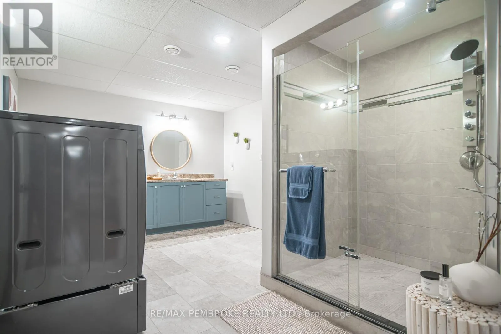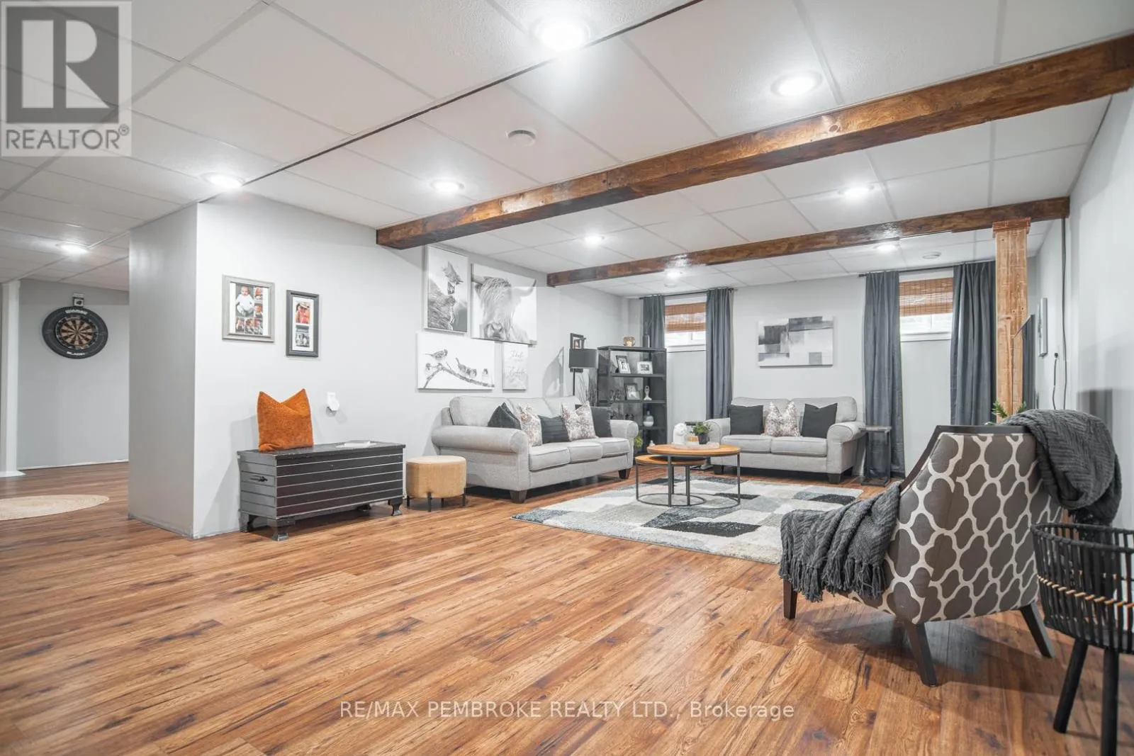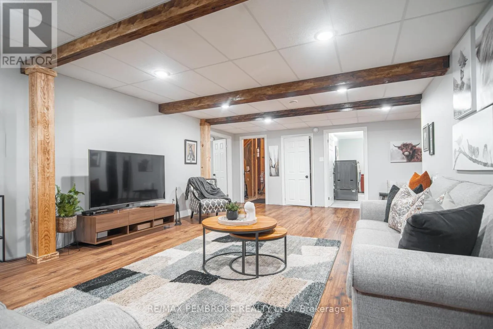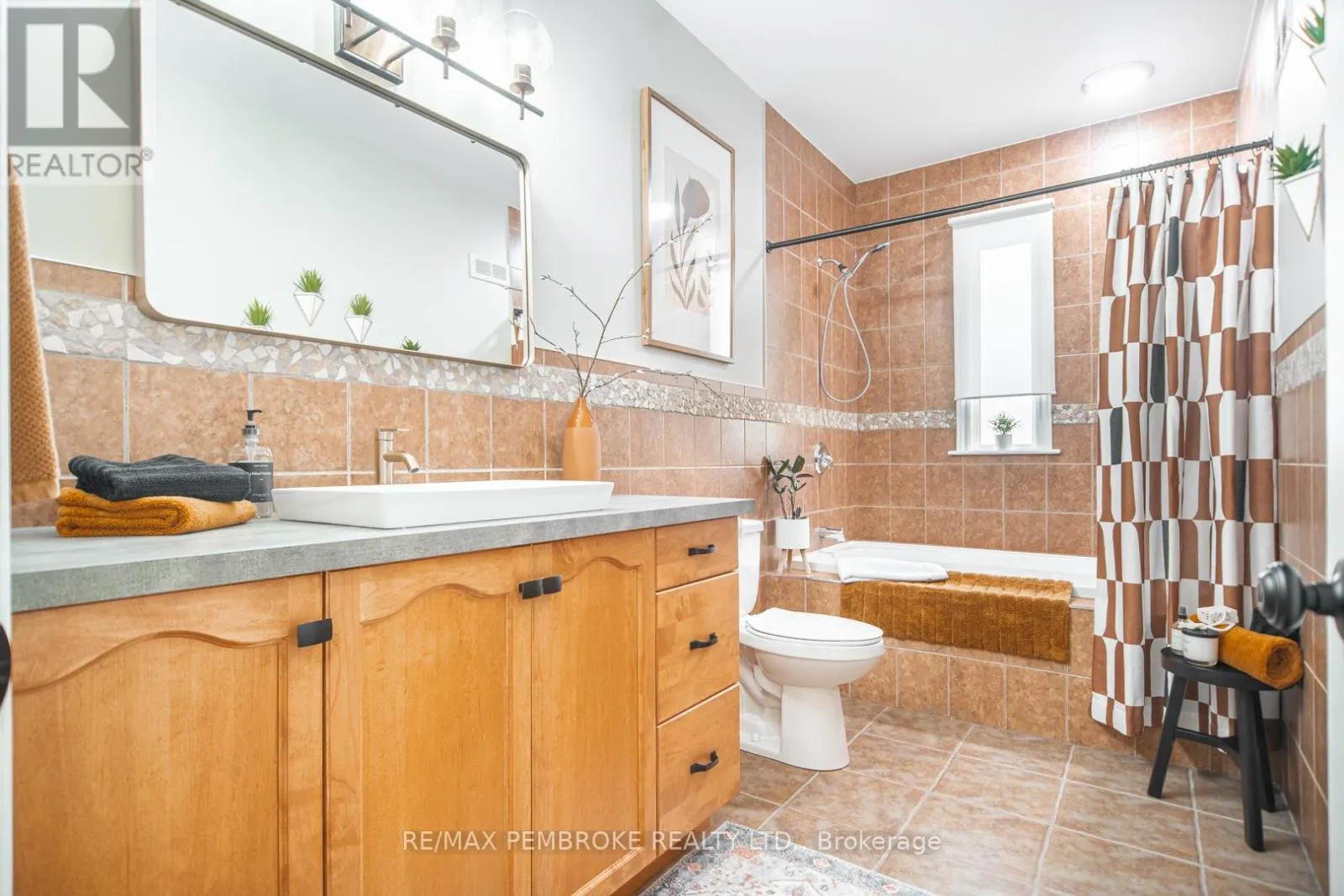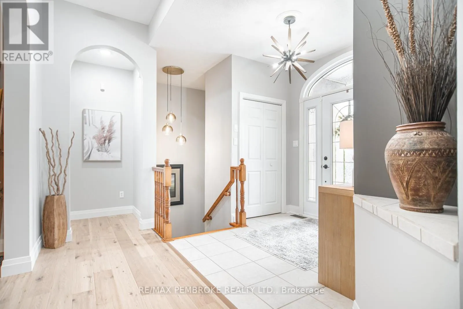Cross Streets: Heron. ** Directions: Golf Course Rd to Mallard. Stunning executive 3+1 bedroom, 3 bathroom home set in a prestigious neighbourhood ideally located between Petawawa and Pembroke, offering breathtaking views of the Ottawa River and deeded water access-perfect for kayaking, paddleboarding, and seadooing. This stately, meticulously maintained home boasts impressive high ceilings. The spectacular living room offers a gas fireplace and vaulted ceiling that creates a warm and inviting focal point. The bright open kitchen features remote-controlled blinds (also in living room) quartz counters, all appliances and flows seamlessly into the main living space-ideal for both everyday living and entertaining.The spacious primary suite offers a private retreat complete with a walk through closet and ensuite bath. The main bathroom has been tastefully updated and includes a jet tub/shower combo.The finished lower level expands your living space with a fourth bedroom, additional bathroom, large family room, theatre room and a dedicated gym area-perfect for growing families, guests, or multi-functional living. Car enthusiasts and hobbyists will appreciate the attached insulated triple car garage with hot and cold water, along with a convenient double carport. Step outside to a large back deck or hang out in the gazebo, perfect for relaxing or hosting, surrounded by a beautifully maintained yard featuring a patio and full irrigation system installed in 2024.This immaculate home has been lovingly cared for and extensively updated, including shingles on the house (2021), carport shingles (2025), water softener (2022), hot water tank (2022), duct cleaning (2022), well pump (2024), gas furnace (2024), and updated main floor window panes (2022), along with new lighting and fresh paint throughout. A rare opportunity to own a turn-key home with upscale features, exceptional maintenance, and deeded access to the Ottawa River in one of the area's most sought-after communities. (id:27476)