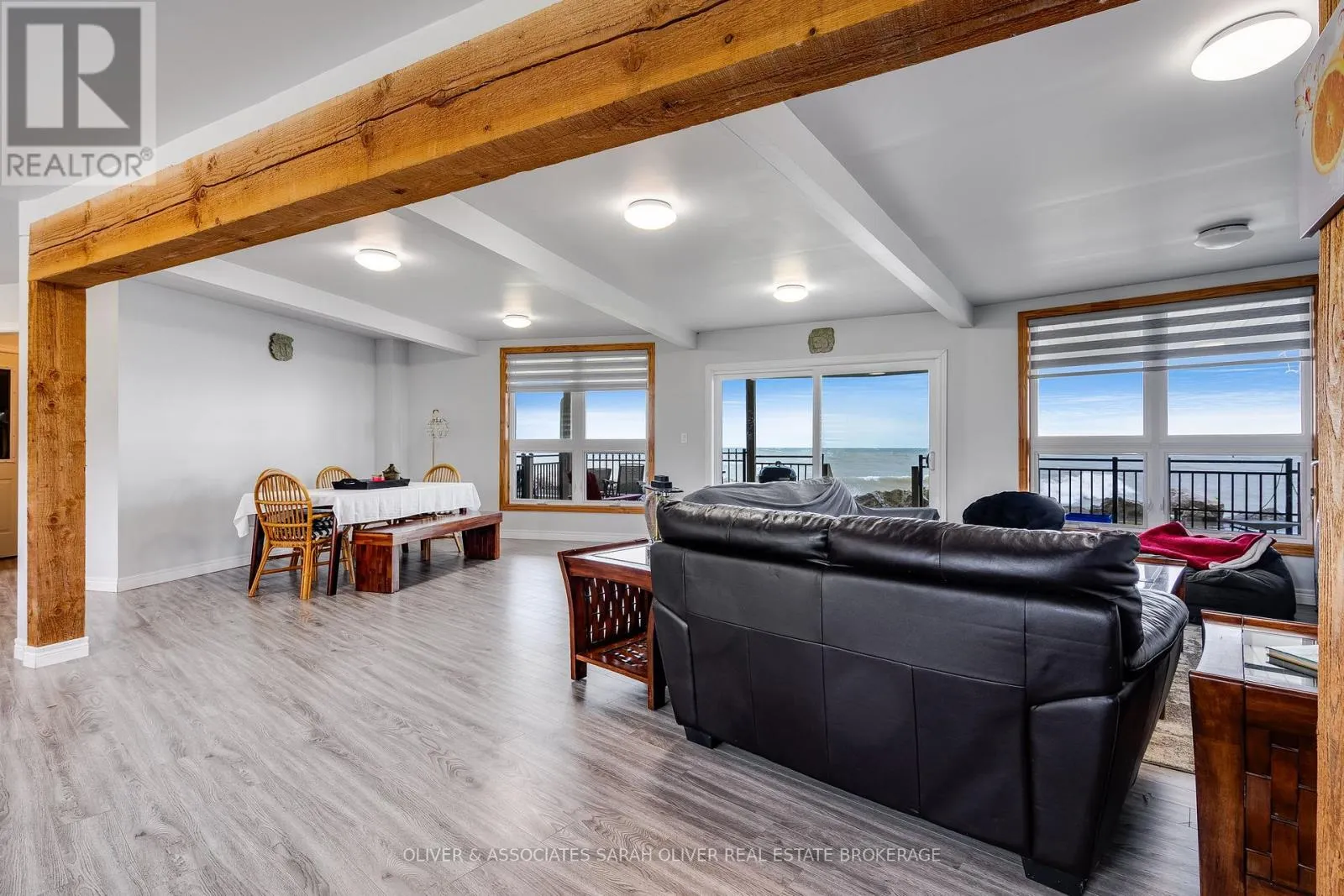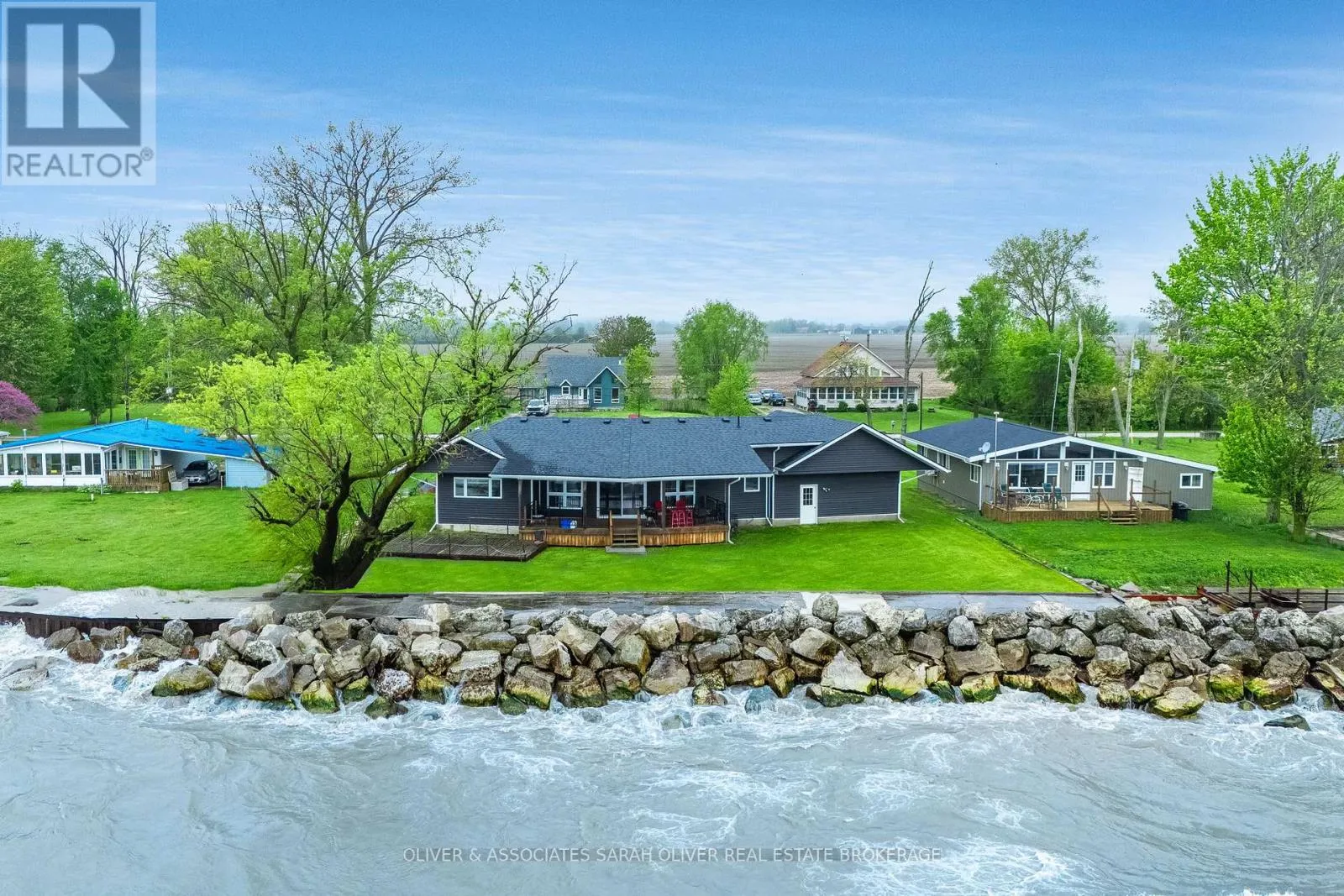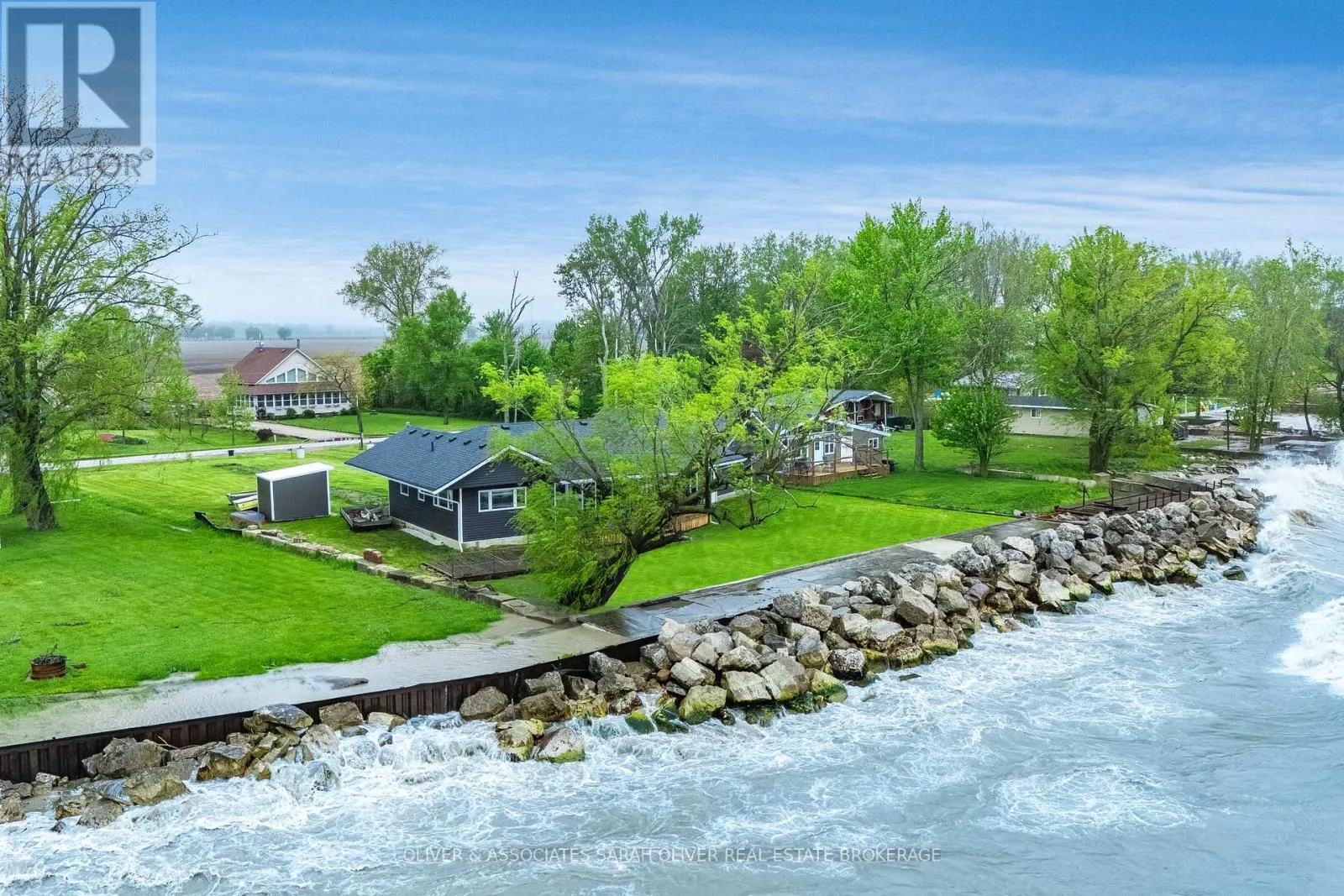Cross Streets: Fox Run. ** Directions: Between Fox Run Rd and Elmdale. Welcome to your dream waterfront retreat on the shores of Lake Erie. This beautifully designed home has been meticulously rebuilt over the past 10 years and features two spacious bedrooms and two full bathrooms. Perfectly suited for year-round living, a getaway cottage, or a short-term rental. The open-concept layout is filled with natural light and offers unobstructed lake views from the main living spaces. A two-car garage with inside entry provides convenience, while the modern design ensures low maintenance and energy efficiency. Step outside to a covered back deck where you can relax and take in stunning sunrises over the water. With completed shoreline protection ( 2 steel break walls and large rock wall), you can fish right from your backyard and enjoy the serenity of lakeside living with peace of mind. Located just minutes from beaches, a full-service marina, and the renowned Point Pelee National Park, this home offers not only a beautiful setting but also unbeatable access to some of the regions best outdoor activities. Whether you're looking for a tranquil place to call home, a 4 season cottage or a smart investment opportunity, this Lake Erie property is the perfect blend of comfort, convenience, and natural beauty. (id:27476)