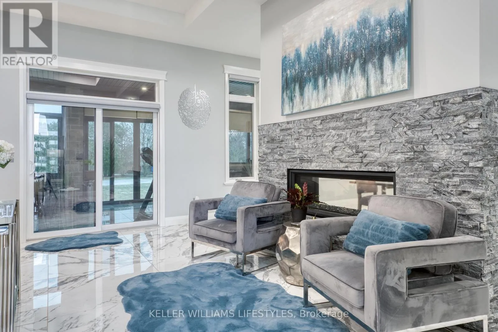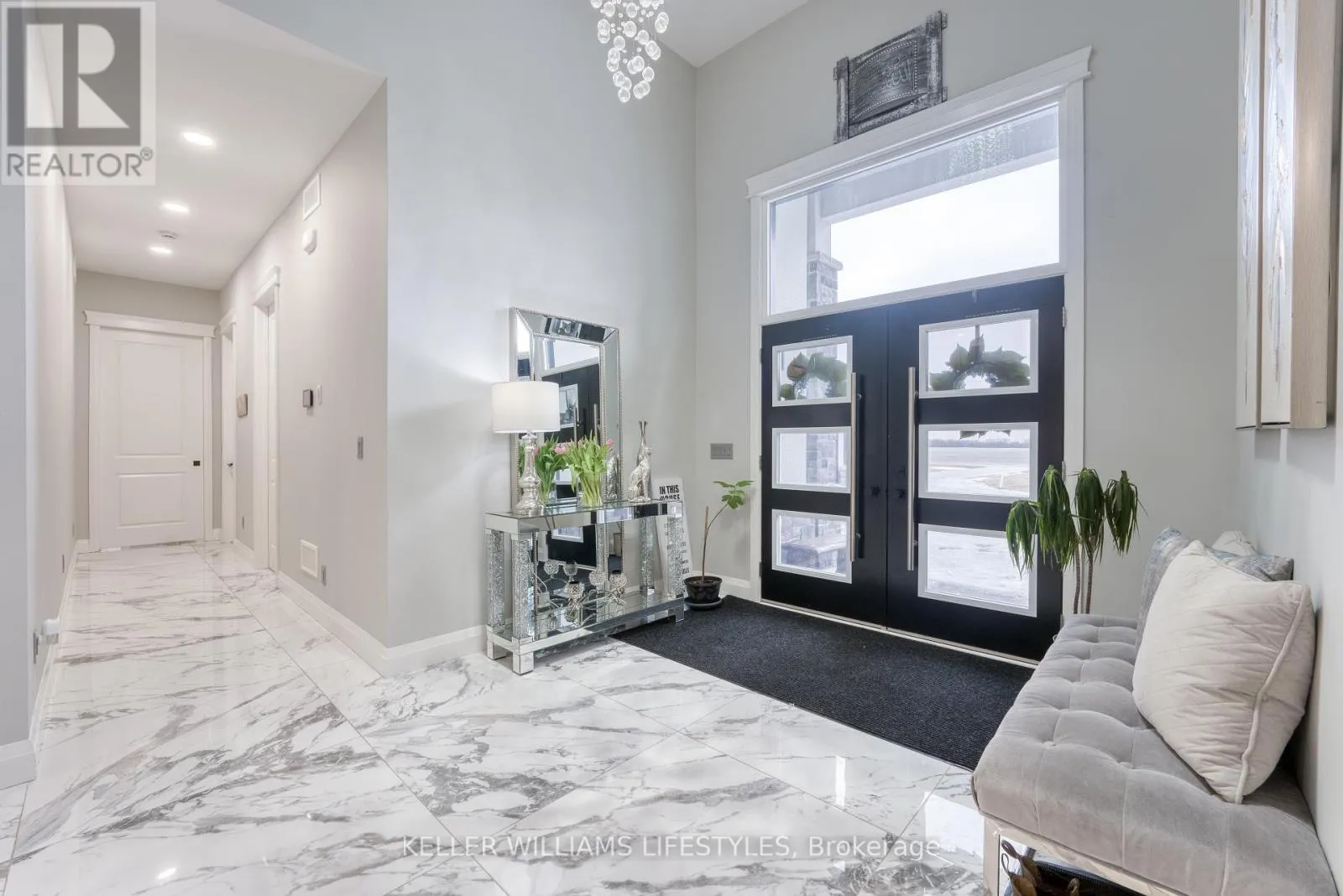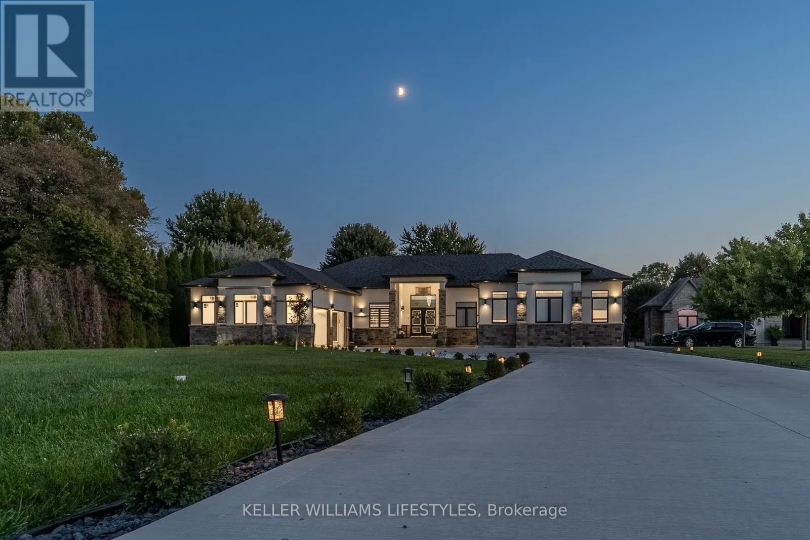 Mersea Rd 2 and Deer Run Welcome to a residence where elegance and architectural brilliance converge. Nestled in an exclusive, prestigious neighbourhood, this one-of-a-kind- estate redefines luxury living. Spanning 6000+ sq. ft. on 0.84 acres, this custom-built property exudes modern sophistication. Step inside to soaring 12' to 14' ceilings, expansive windows, and sleek architectural lines. A double-sided fireplace creates an inviting ambiance to the heart of the home. a GOURMET CHEF'S KITCHEN complements an executive dining room designed for unforgettable gatherings. This masterpiece boasts 6 large bedroom suites, 5 ENSUITE BATHS, 2 powder rooms, 5 WALK-IN closets, and a FLORIDA ROOM with AC, heat. The lavish primary suite offers unparalleled elegance with a dreamy walk-in closet and a spa like 4 pcs bath. Additional features include a lower level with separate IN-LAW SUITE entrance for extended family, a THEATRE ROOM, a roughed-in second kitchen, two double-door garages, and an antibacterial air system. The perfect forever home for your family, with so many more features and room to grow. (id:27476)