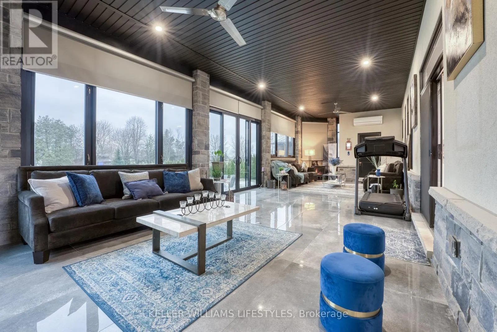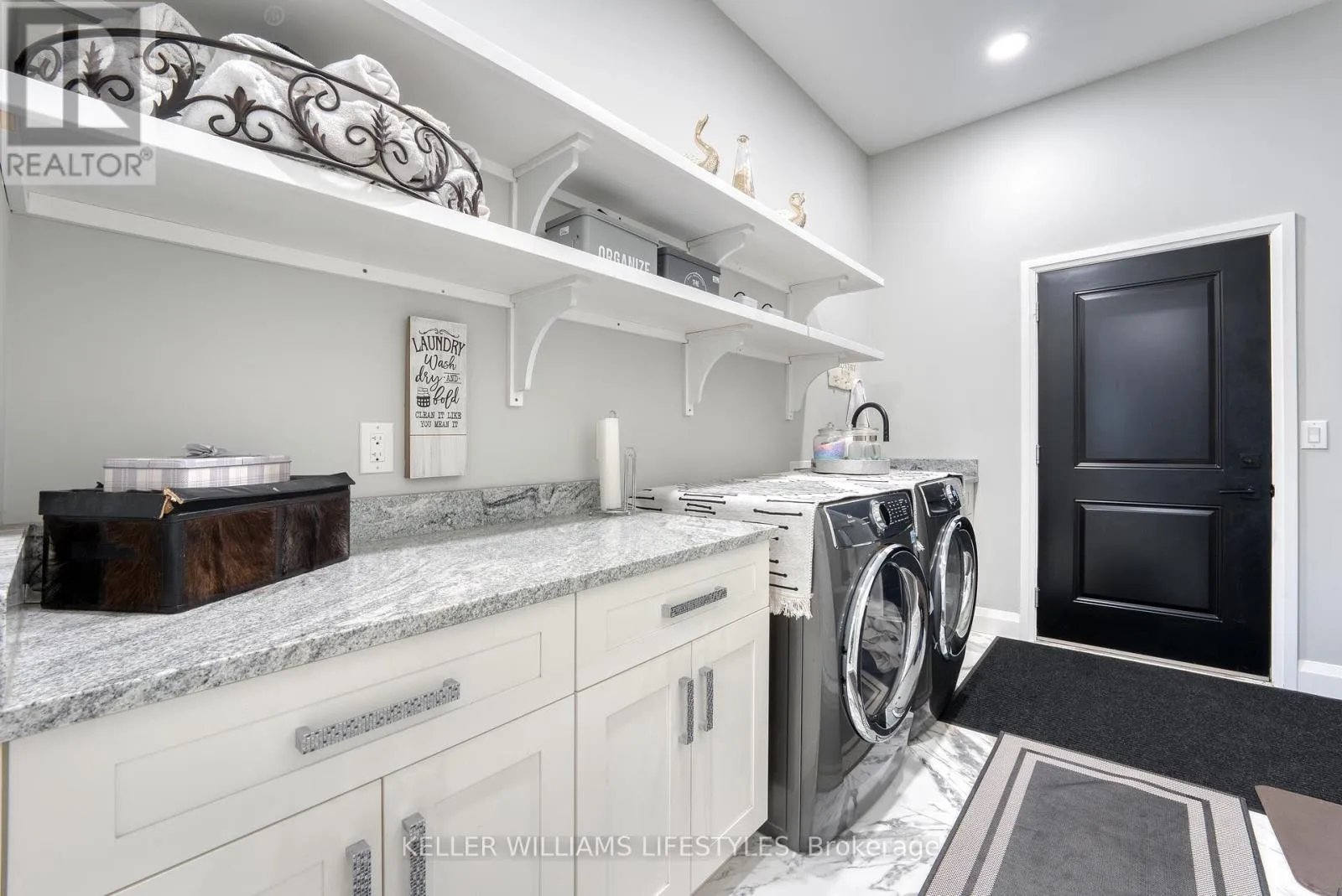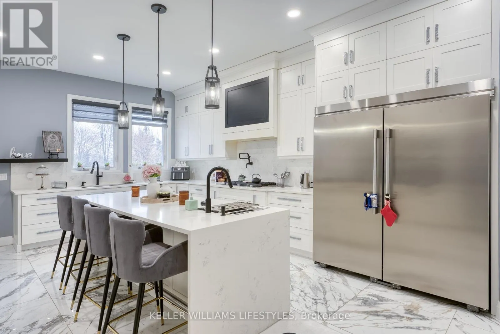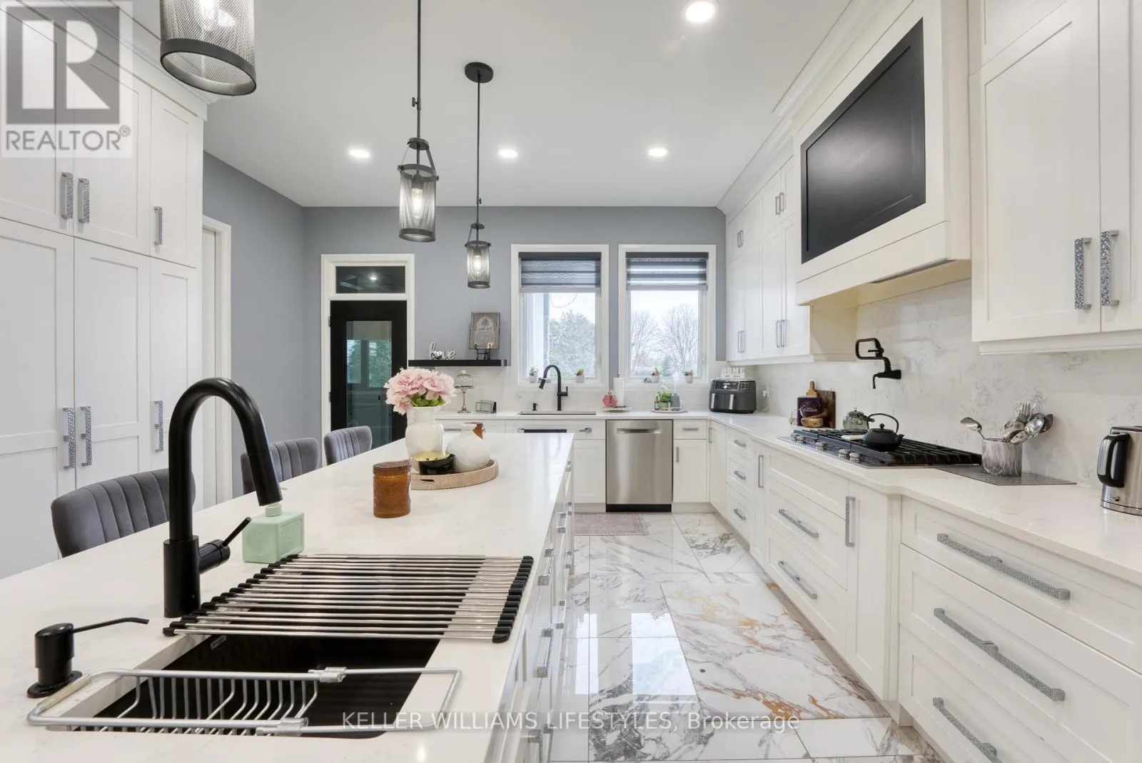 Mersea Rd 2 and Deer Run Welcome to a residence where elegance and architectural brilliance converge. Nestled in an exclusive, prestigious neighbourhood, this one-of-a-kind- estate redefines luxury living. Spanning 6000+ sq. ft. on 0.84 acres, this custom-built property exudes modern sophistication. Step inside to soaring 12' to 14' ceilings, expansive windows, and sleek architectural lines. A double-sided fireplace creates an inviting ambiance to the heart of the home. a GOURMET CHEF'S KITCHEN complements an executive dining room designed for unforgettable gatherings. This masterpiece boasts 6 large bedroom suites, 5 ENSUITE BATHS, 2 powder rooms, 5 WALK-IN closets, and a FLORIDA ROOM with AC, heat. The lavish primary suite offers unparalleled elegance with a dreamy walk-in closet and a spa like 4 pcs bath. Additional features include a lower level with separate IN-LAW SUITE entrance for extended family, a THEATRE ROOM, a roughed-in second kitchen, two double-door garages, and an antibacterial air system. The perfect forever home for your family, with so many more features and room to grow. (id:27476)