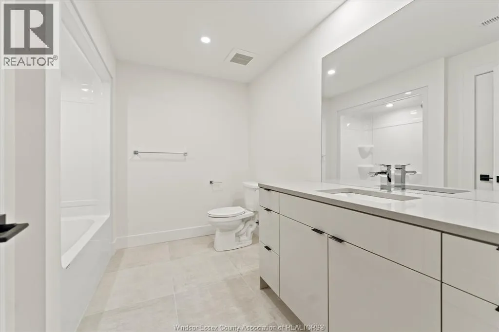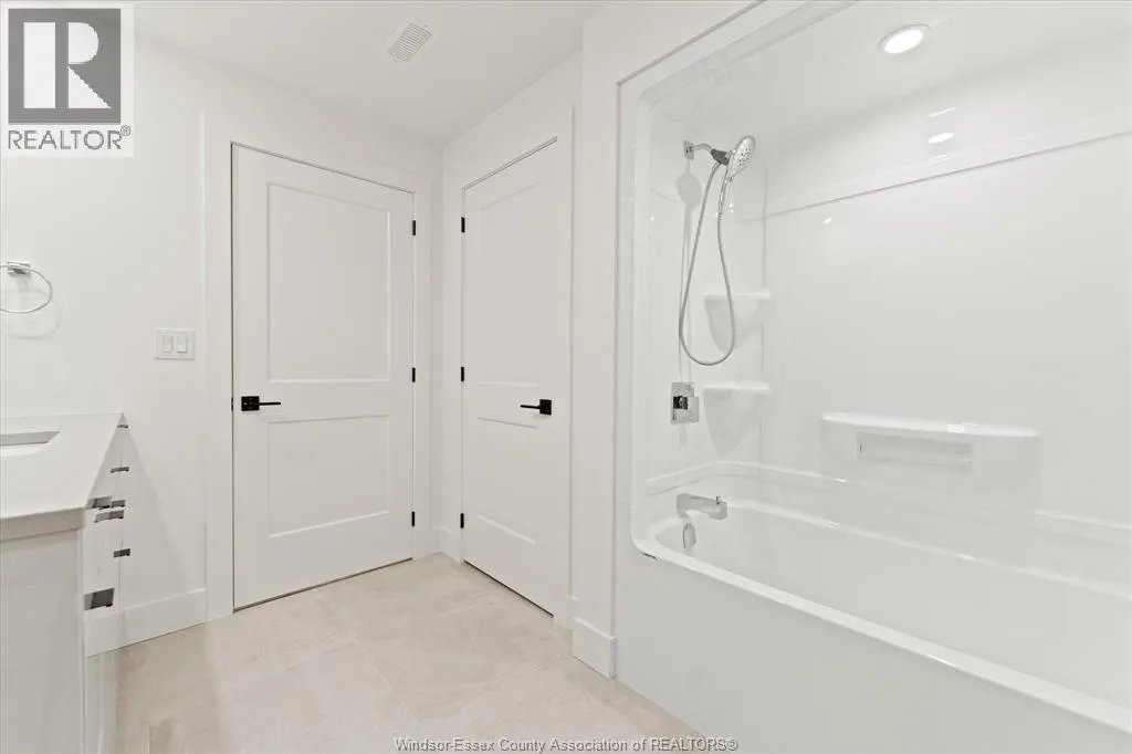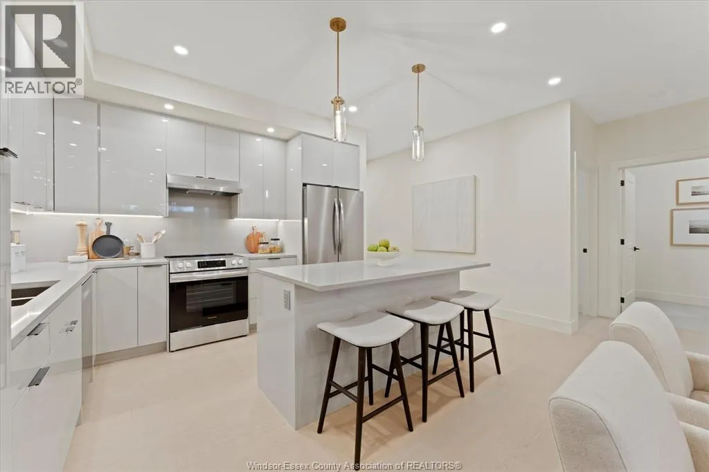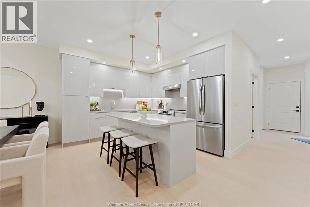 New Millennium Homes presents this fully finished turnkey luxury townhome in Leamington newest subdivision, Bevel Line Village. This inside townhome is fully loaded and has so much to offer. Home features two bedrooms and two bathrooms on the main floor including a large primary bedroom with a deep custom walk-in closet, fully tiled ensuite bathroom and custom wainscot accent wall with pendant lighting. Laundry room is on the main floor. Step into your modern kitchen with high gloss cabinetry, quartz countertops and backsplash. Tons of cabinetry and storage. Relax in the large living area featuring an electric fireplace and custom mantel. All window coverings are brand new and included. Lower level is completely finished featuring a large living room, two bedrooms, full bathroom with a tub and a sleek modern wet bar. Exterior includes two car garage, landscaping, sodded front and back, yard is fenced in and concrete driveway is done with cement pad in yard. Microwave is Included. All other appliances are brand new in home and available for purchase. Minutes away from Point Pelee Park, Marina, Golf course and all shopping amenities. (id:27476)