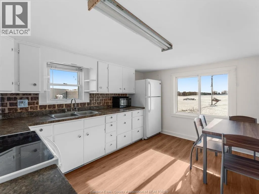Looking for a charming country home just outside Leamington? This renovated 1½ storey home is the perfect starter or downsizerâs dream! Nestled on a spacious 100 x 265 ft lot, this property offers peace and privacy with the convenience of being minutes from town. Enjoy an open-concept layout featuring a bright living and dining area, updated kitchen with ceramic and laminate flooring, and a large main-floor bedroom. The bathroom and laundry are also conveniently located on the main level. The upper level offers extra storage space or potential for future expansion. Outside, youâll find plenty of room to enjoy the outdoors. (id:27476)