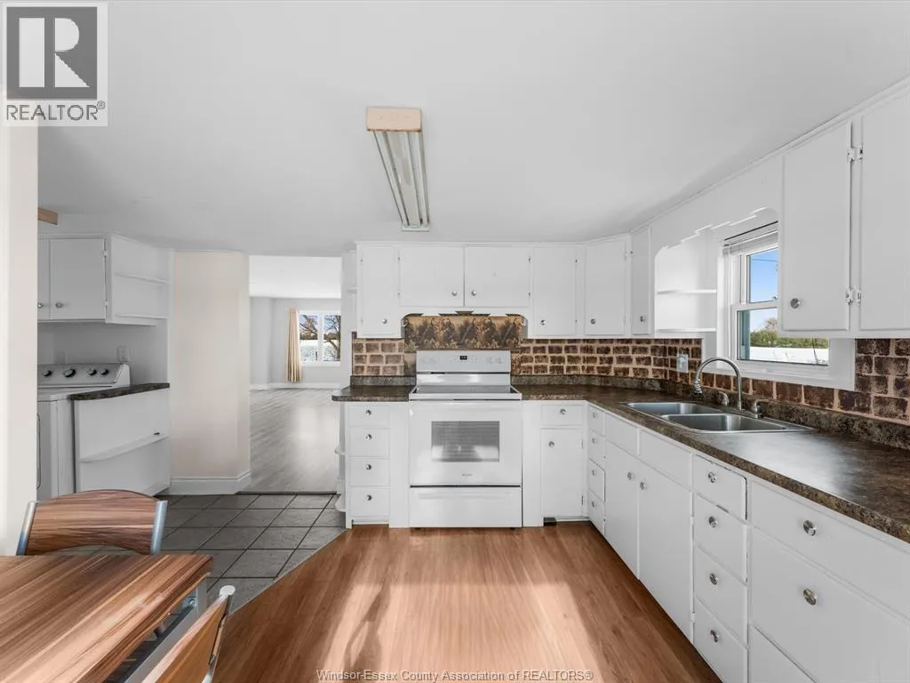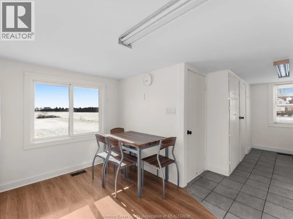 Looking for a charming country home just outside Leamington? This renovated 1½ storey home is the perfect starter or downsizerâs dream! Nestled on a spacious 100 x 265 ft lot, this property offers peace and privacy with the convenience of being minutes from town. Enjoy an open-concept layout featuring a bright living and dining area, updated kitchen with ceramic and laminate flooring, and a large main-floor bedroom. The bathroom and laundry are also conveniently located on the main level. The upper level offers extra storage space or potential for future expansion. Outside, youâll find plenty of room to enjoy the outdoors. (id:27476)