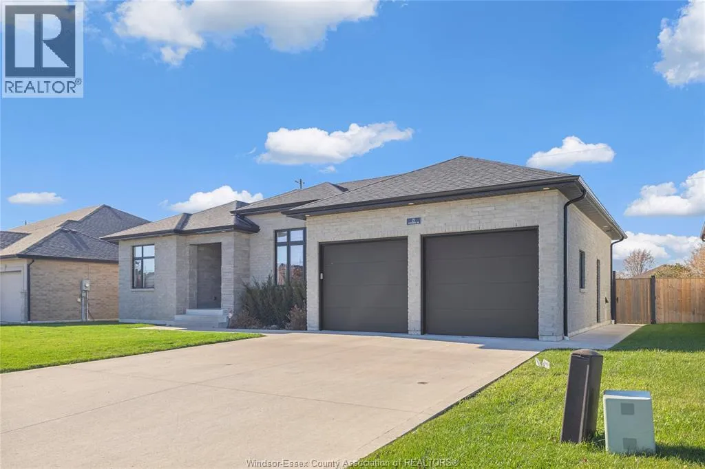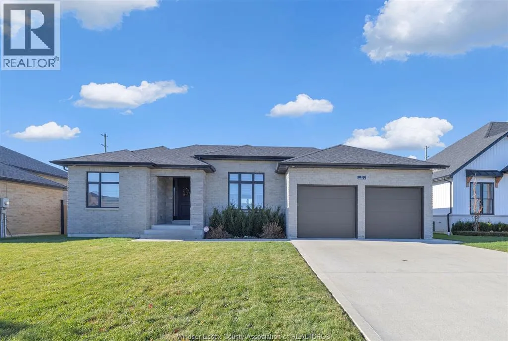 Immaculate newly built ranch in one of Leamingtonâs newest developments. This beautifully finished home offers 3 spacious bedrooms, 2 bathrooms, including a primary ensuite, plus main floor laundry. Enjoy high vaulted ceilings, an open-concept layout, large windows, and engineered hardwood and porcelain tile throughout. The double garage provides excellent storage with epoxy floors, Wi-Fi door openers, and rough-ins for gas or electric heat. Outside features a fully landscaped, irrigated lawn, fenced backyard with 5""x5"" steel posts, cement patio, covered porch with gas BBQ hookup, and exterior TV plug. Lower level is ready for your finishing touch. Homes like this donât come along often so call me today and let's get you moved in tomorrow!!! (id:27476)