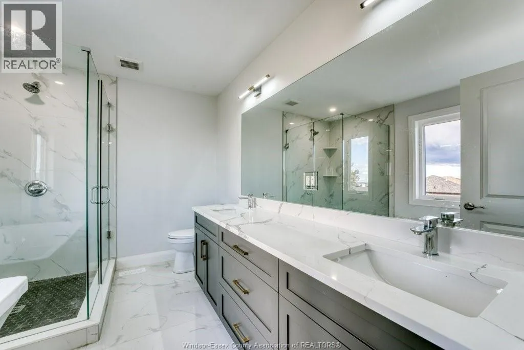 Welcome to Golfwood Lakes Estates, Leamingtonâs most prestigious golf course address, nestled beside championship Erie Shores Golf & Country Club and moments from Leamington marina. This exquisite, brand-new model home showcases refined open-concept living with five spacious bedrooms, four spa-inspired bathrooms, and a two-car garage featuring a stylish third garage door to the backyard for elegant entertaining. Discover designer finishes throughout: custom kitchen with quartz countertops, engineered hardwood, oak stairs, and designer lightings. The versatile main-floor bedroom can serve as a private office, while the luxurious primary retreat impresses with a large walk-in closet and indulgent 5-piece ensuite. Appliances, driveway, and sodding are included; personalize your dream home. Enjoy rare, direct access to championship golf, boating, fine dining, and exclusive amenitiesâluxury living redefined. Book your private tour today! (id:27476)