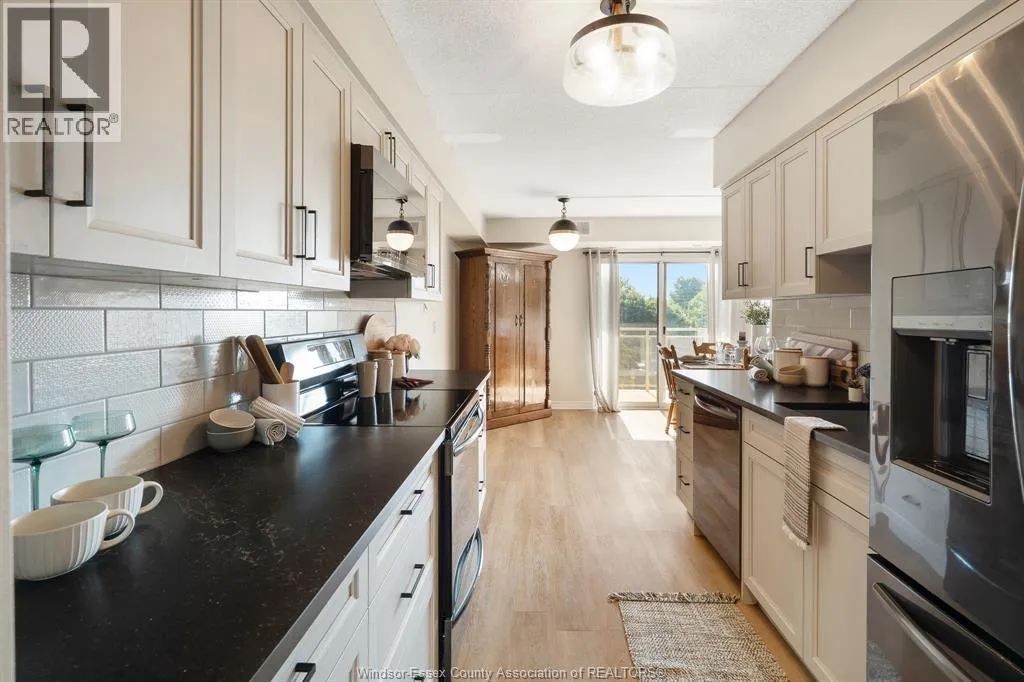 NO CONDO FEES, FOR 1 YEAR! Beautifully updated 2 bed, 2 bath waterfront condo at Riviera Towers. Enjoy quartz countertops, luxury vinyl flooring, custom laundry cabinetry, and a walk-in shower in the ensuite. Balcony offers stunning views of Lake Erie and morning sun from the east. Secure underground parking, strong condo board, and low-maintenance living. Condo fees include water, insurance, gym, and party room. Immediate possessionâmove in and enjoy carefree living by the lake! (id:27476)