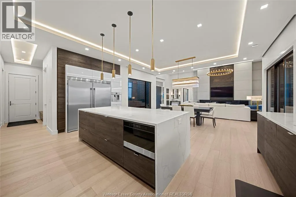 Modern luxury ranch at 11 Destiny Dr, Leamington. Built in 2020, this stunning home features soaring 10-13 ft ceilings, oversized windows and high-end finishes throughout. The chef's kitchen boasts a hidden pantry, quartz waterfall island, commercial exhaust fan, concealed appliances and Thermador built in coffee machine. Main floor offers 4 bedrooms, 2.5 baths, a showpiece primary suite with steam shower, soaker tub and double vanity. Basement adds 3 beds, a full bath, wet bar and walkout entrance. Enjoy in-wall surround sound, Dekko gas fireplace, engineered hardwood, porcelain tile and LED lighting accents. Screened-in porch with gas BBQ hookup, epoxy garage, heated and cooled garage, irrigation system and space to park 8-10 cars. Hidden blackout shades, Restoration hardware lighting and more. Minutes to golf, beach, marina and shopping. A must-see modern masterpiece! (id:27476)