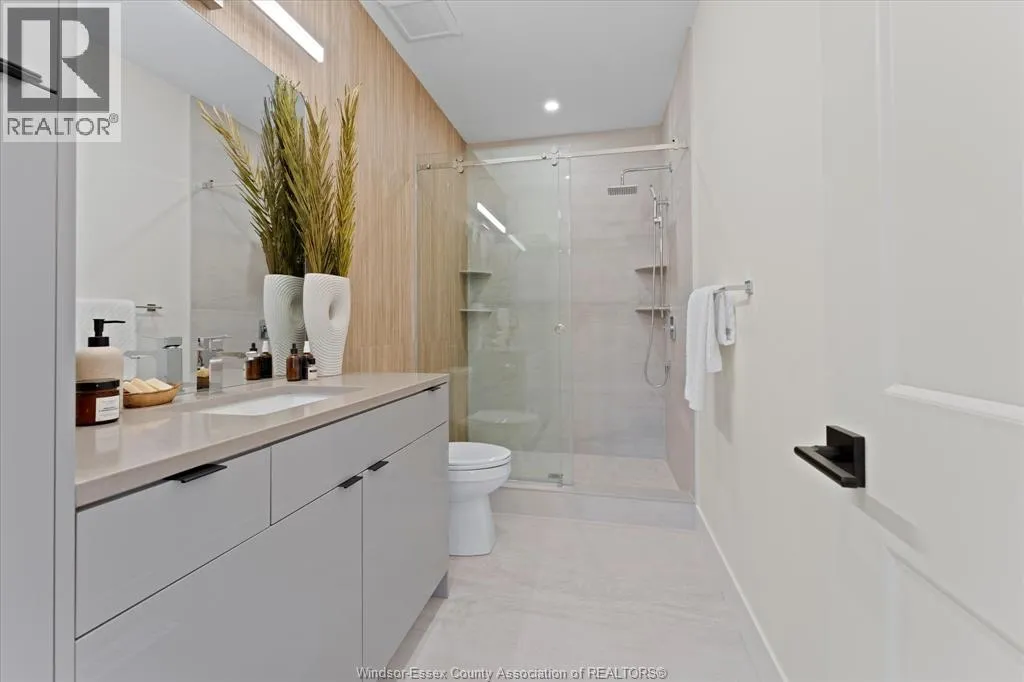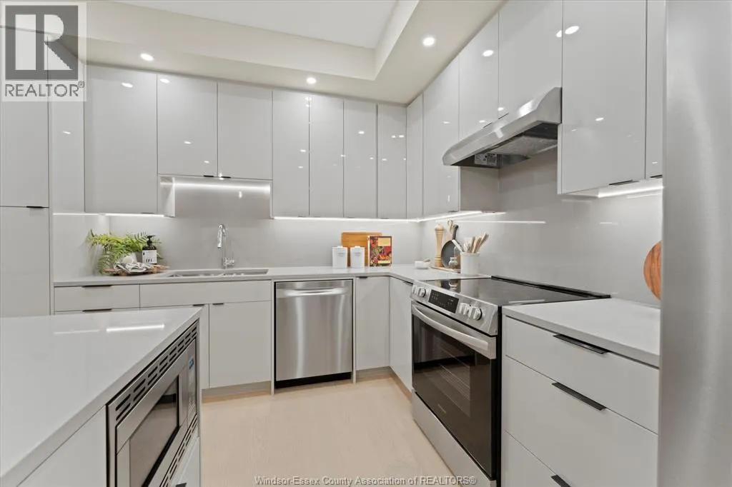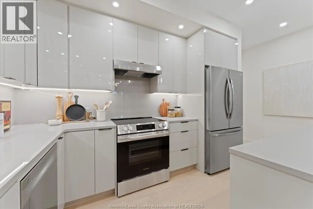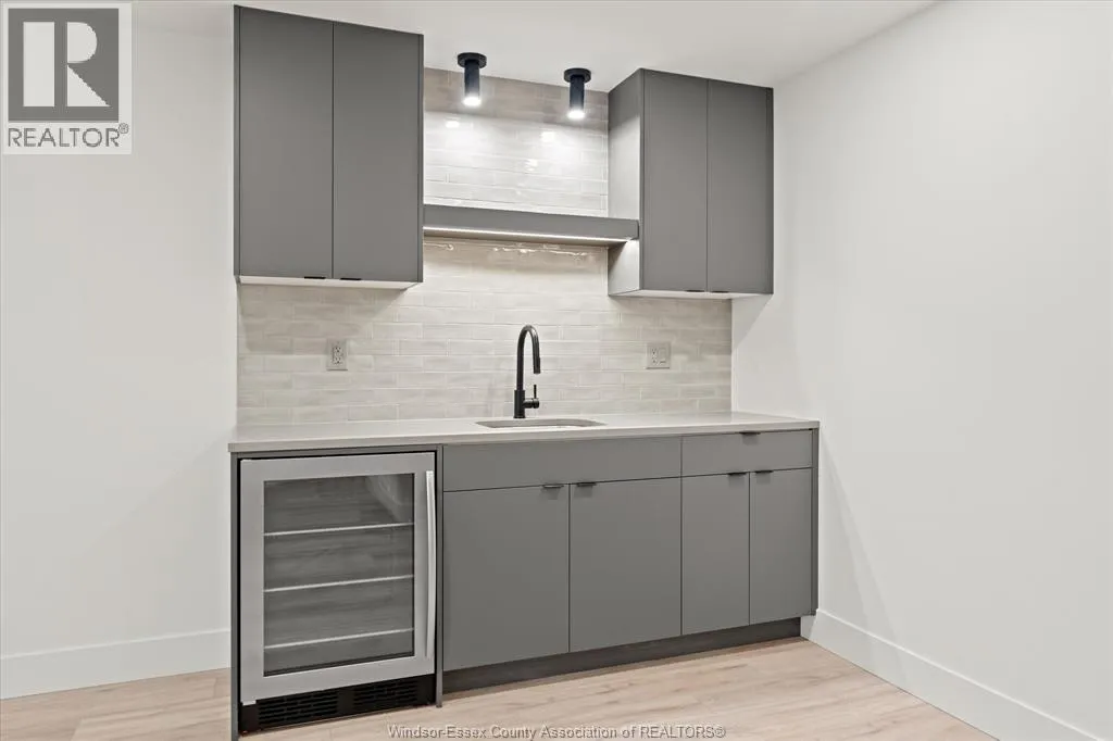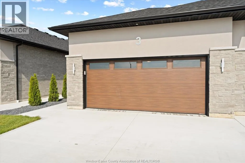 New Millennium Homes presents this fully finished turnkey luxury townhome in Leamington newest subdivision, Bevel Line Village. This inside townhome is fully loaded and has so much to offer. Home features two bedrooms and two bathrooms on the main floor including a large primary bedroom with a deep custom walk-in closet, fully tiled ensuite bathroom and custom wainscot accent wall with pendant lighting. Laundry room is on the main floor. Step into your modern kitchen with high gloss cabinetry, quartz countertops and backsplash. Tons of cabinetry and storage. Relax in the large living area featuring an electric fireplace and custom mantel. All window coverings are brand new and included. Lower level is completely finished featuring a large living room, two bedrooms, full bathroom with a tub and a sleek modern wet bar. Exterior includes two car garage, landscaping, sodded front and back, yard is fenced in and concrete driveway is done with cement pad in yard. Microwave is Included. All other appliances are brand new in home and available for purchase. Minutes away from Point Pelee Park, Marina, Golf course and all shopping amenities. (id:27476)