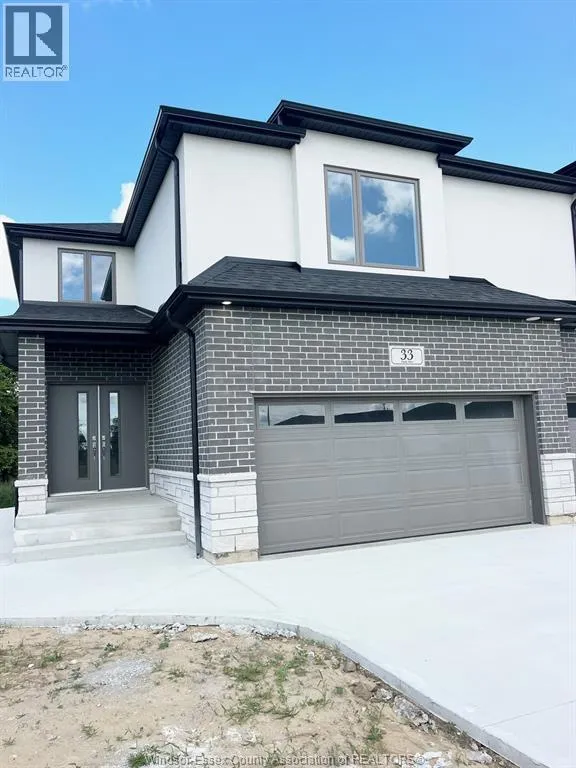 PRESENTING 33 EAGLE ST. IN NEWLY DEVELOPED BEVEL LINE VILLAGE. end UNIT 2 STOREY HOME BOASTING 4 BEDROOMS, 3 BATH(ENSUITE) & 2ND FLOOR LAUNDRY. MASTER BDRM W/ENSUITE WITH W-IN CLST, OPEN CONCEPT LAYOUT W/ MODERN KITCHEN INCLUDING ISLAND AND BUILT IN PANTRY, QUARTZ COUNTERTOP & TILE BACKSPLASH. LRG FAM RM, LARGE WINDOWS, PATIO SLIDER WITH BLINDS OFF THE NOOK. ENGINEERED HARDWOOD THROUGHOUT THE HOME, TILE BATHS KITCHEN AND WET AREAS. WAYNE SCOTTING IN FOYER, UPGRADED DOORS AND TRIMS, MIRRORS IN BATHROOMS ETC. UNFINISHED LWR LVL HAS ROUGHED IN KITCHEN, BATHROOM FOR FUTURE POTENTIAL. FINISHED INSULATED DBL CAR GARAGE WITH INSIDE ENTRY, CONCRETE PAVED DRIVEWAY. HIGH EFFICIENCY FURNACE, HRV SYSTEM AND MORE. SITTING ON A LARGE IRREGULAR SHAPED LOT, MINUTES AWAY FROM POINT PELEE NAT'L PARK, ERIE SHORES GOLF & COUNTRY CLUB & LEAMINGTON MARINA. ALWAYS ATTACHED TARION 7 YEAR WARRANTY, EMAIL L/S FOR MORE INFO. (id:27476)