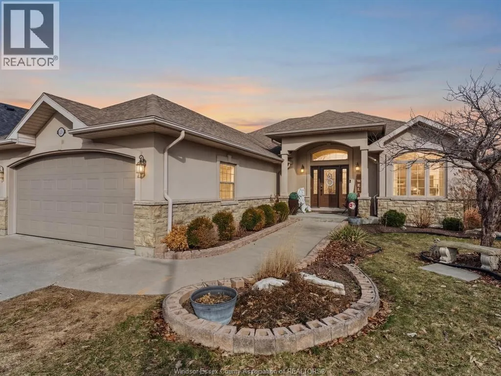 Welcome to 202 Ellison Ave, a beautiful custom-built ranch in one of Leamingtonâs sought-after neighbourhoods. Built in 2009, this spacious home offers 4 bedrooms plus a den and 3.5 bathrooms. The open-concept main floor features 9-ft ceilings, hardwood floors, a cozy gas fireplace, and a spacious kitchen with granite countertops and plenty of cabinetry. The primary suite includes a walk-in closet and ensuite with soaker tub and glass shower. Main floor laundry adds convenience. The fully finished basement offers additional living space, bedrooms, a full bath, and plenty of storageâperfect for guests or working from home. Enjoy the landscaped yard with patio and sundeck, plus a double garage with inside entry. Located close to parks, trails, and all amenities. (id:27476)