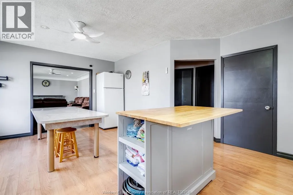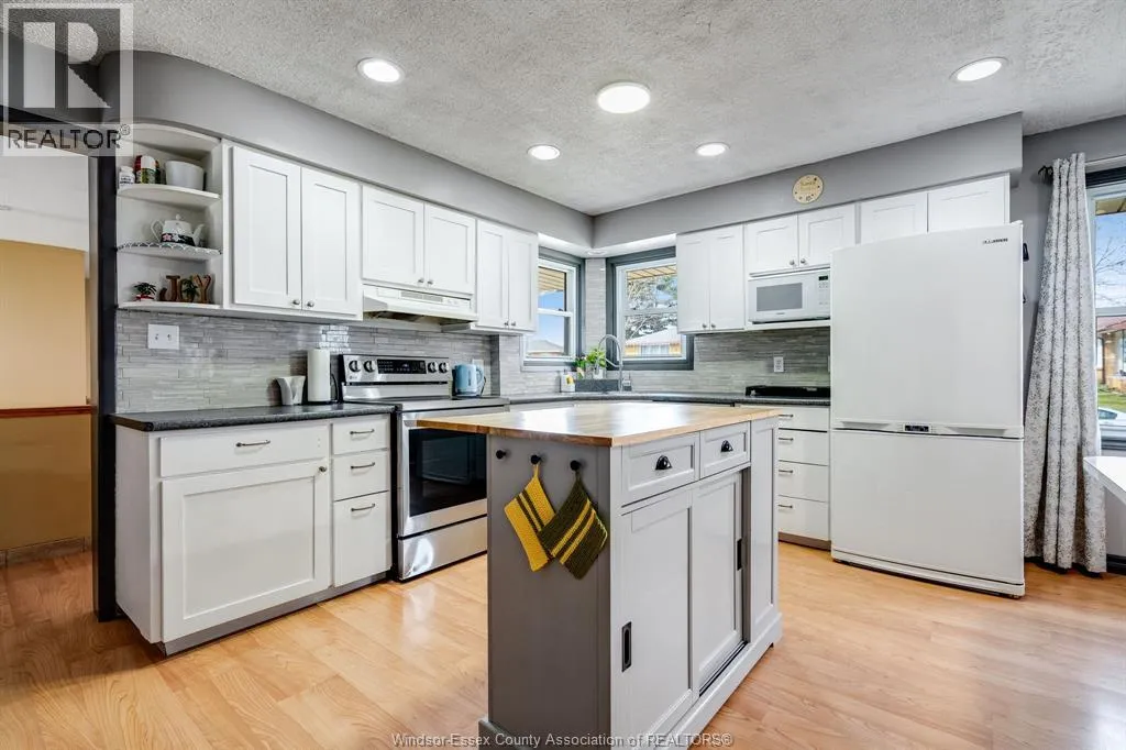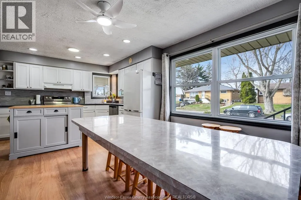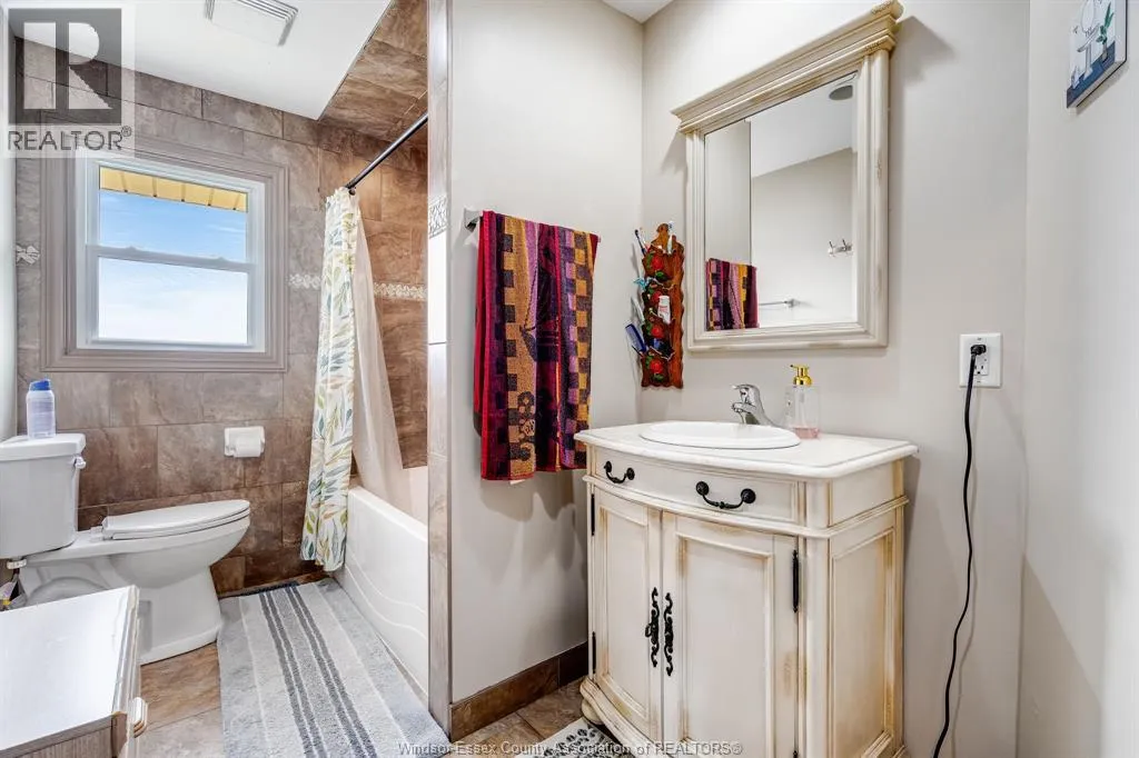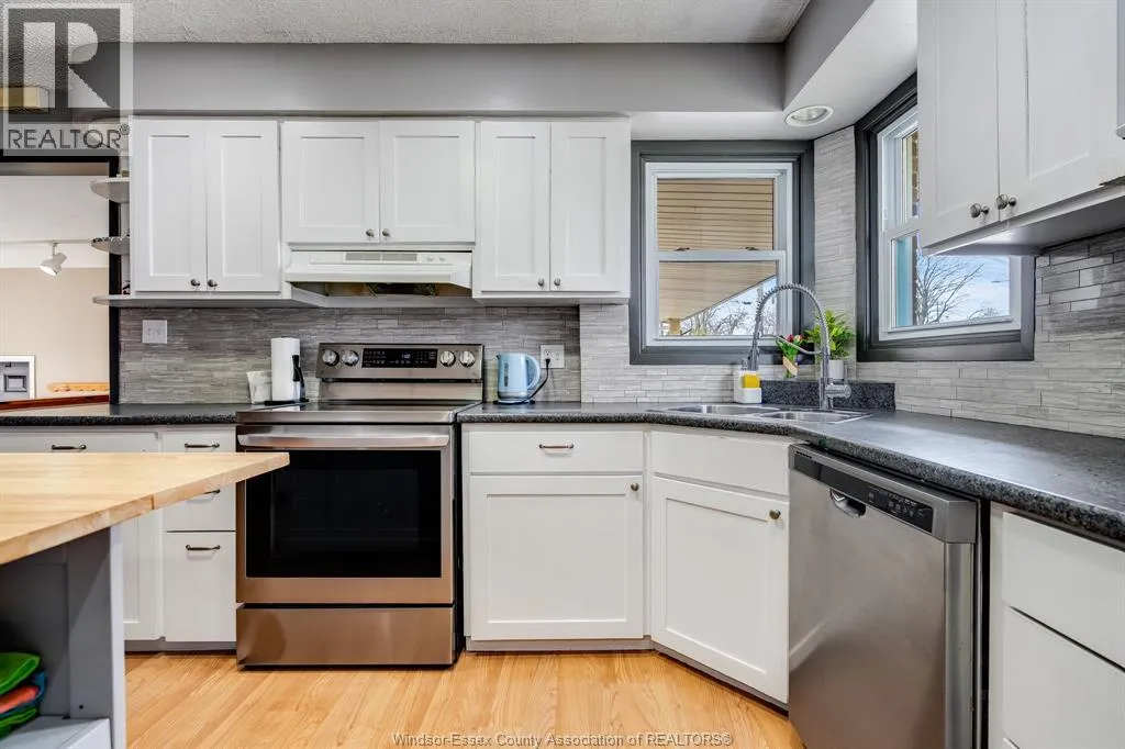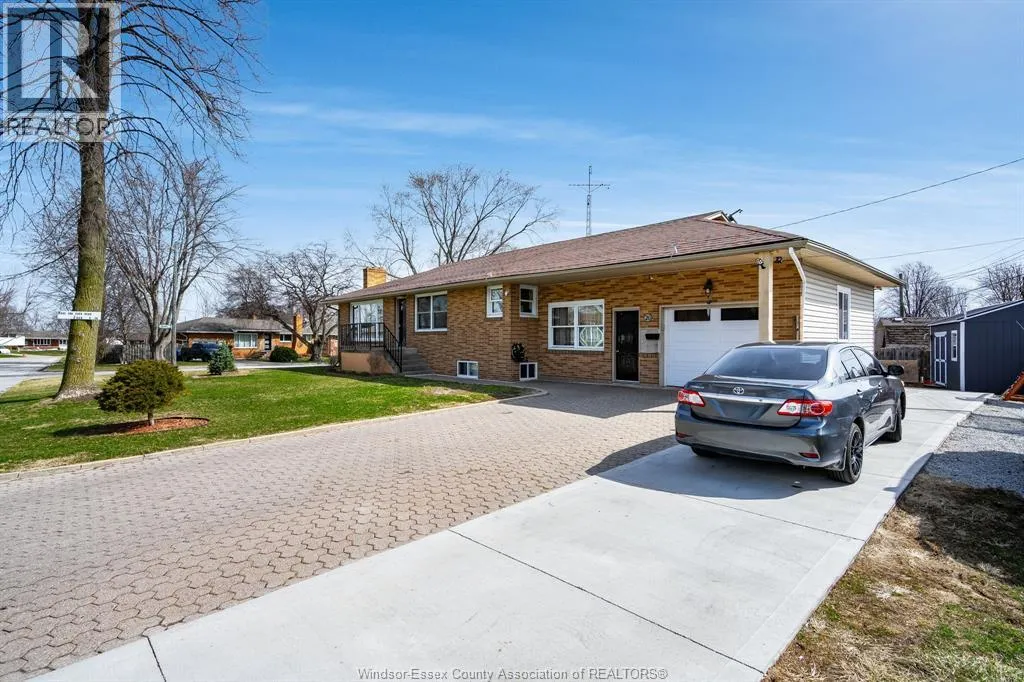 This solid brick bungalow offers a functional and versatile layout, perfect for families or those seeking additional living space. Featuring 3+2 bedrooms and 2 full bathrooms, this home delivers a comfortable blend of space, flexibility, and everyday functionality. The main level includes a bright open-concept kitchen and dining area, along with a welcoming living room complete with a cozy wood burning fireplace - ideal for relaxing evenings at home. A fully finished basement expands your living space even further, offering additional bedrooms and flexible areas perfect for guests, a home office, or multigenerational living. Situated on a desirable corner lot, the property features a fully fenced backyard with a patio and storage shed. Additional highlights include a concrete interlocking double-width driveway, single attached garage, and a location close to all amenities - just steps away from Leamington Hospital - offering both convenience and everyday practicality. (id:27476)