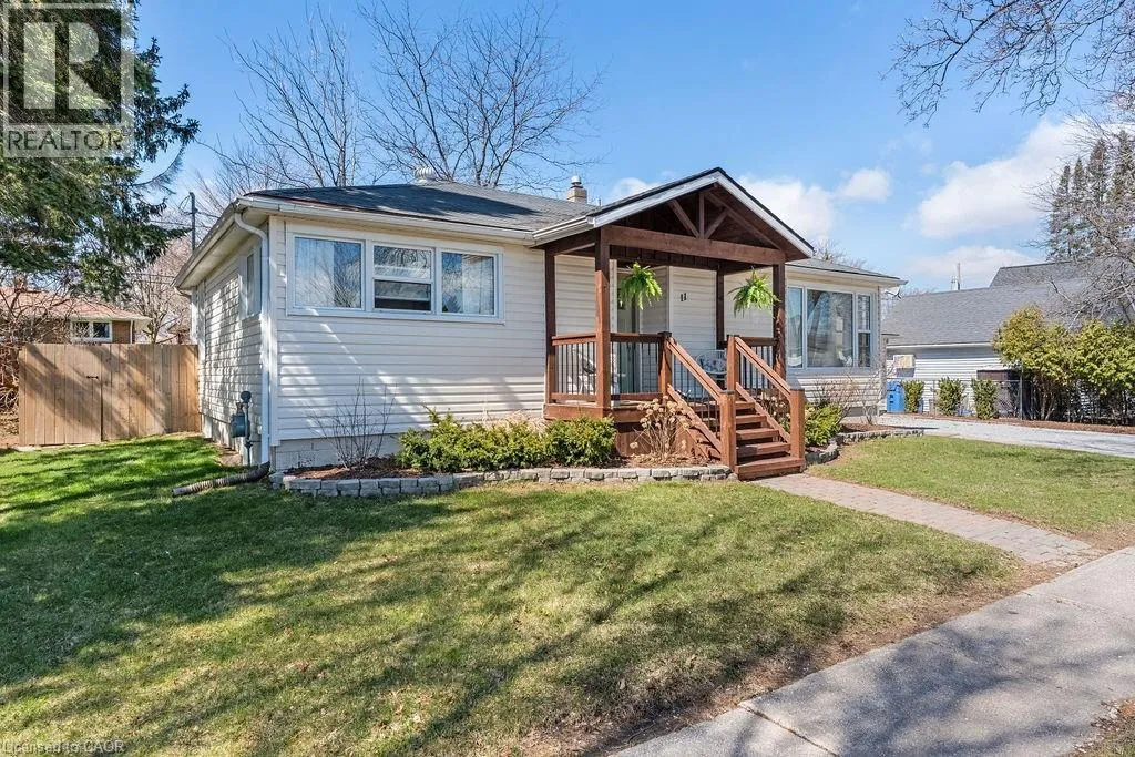 Step inside this adorable 3 bed 1 bath bungalow and fall in love with its timeless charm! Boasting a stunning timber frame front porch, this home invites you in with warmth and character. Inside, youâll find an oversized living and dining room, drenched in natural light and accented by original hardwood floors that add both style and history. The galley kitchen overlooks a large, private backyard, perfect for relaxing or entertaining, while the mostly-finished basement offers extra living space to suit your needs. Practical touches include an attached single-car garage connected via a functional breezeway, combining convenience with classic bungalow appeal. Located on a quiet street with an oversized lot offering mature trees and 75' of frontage, this home is ideally located a short walk to Queen Elizabeth P.S., the hospital, cafes, groceries and more amenities. With its mix of cute, cozy details and functional living spaces, 11 Martin is larger than it looks and truly feels like home the moment you step through the door. Donât miss your chance to own this gem! (id:27476)