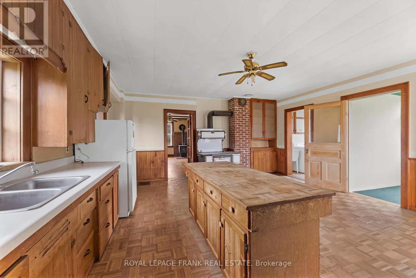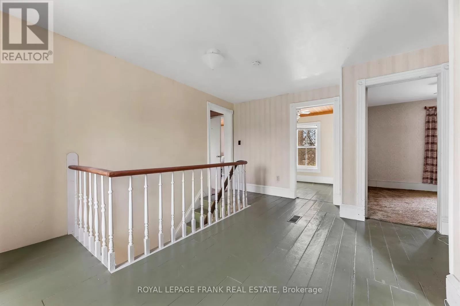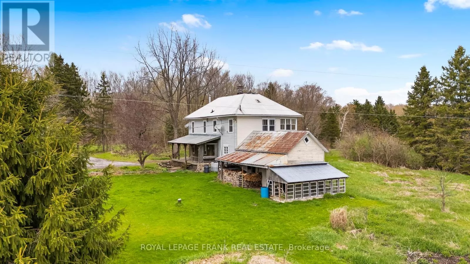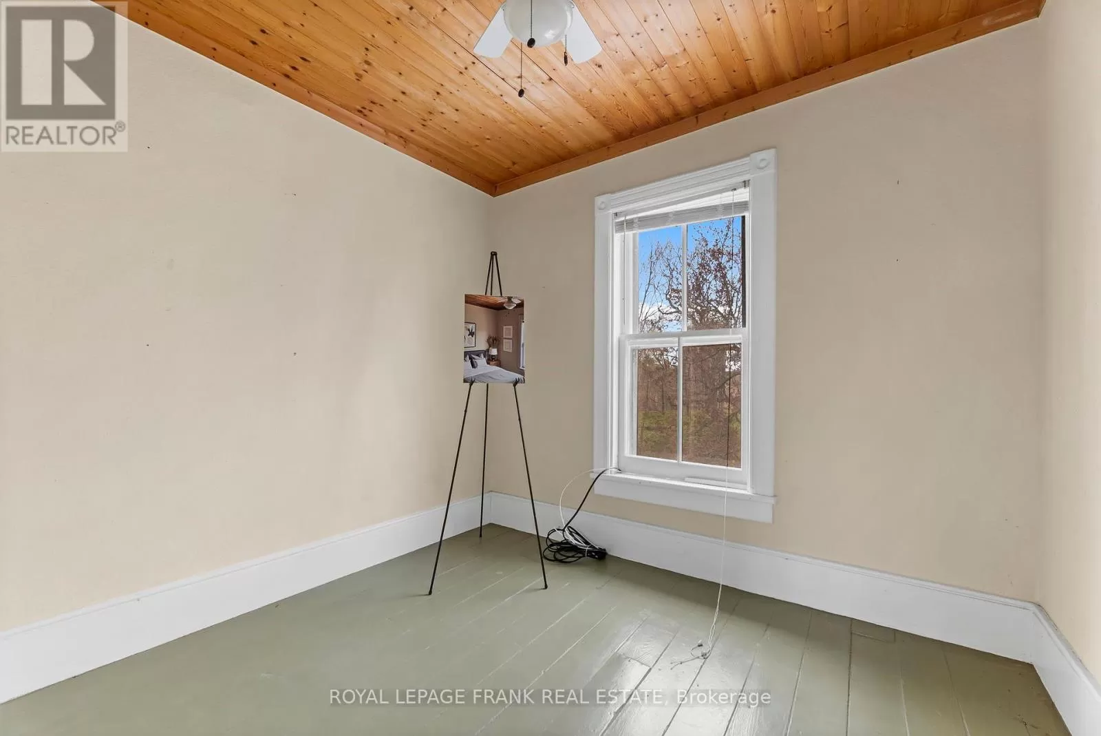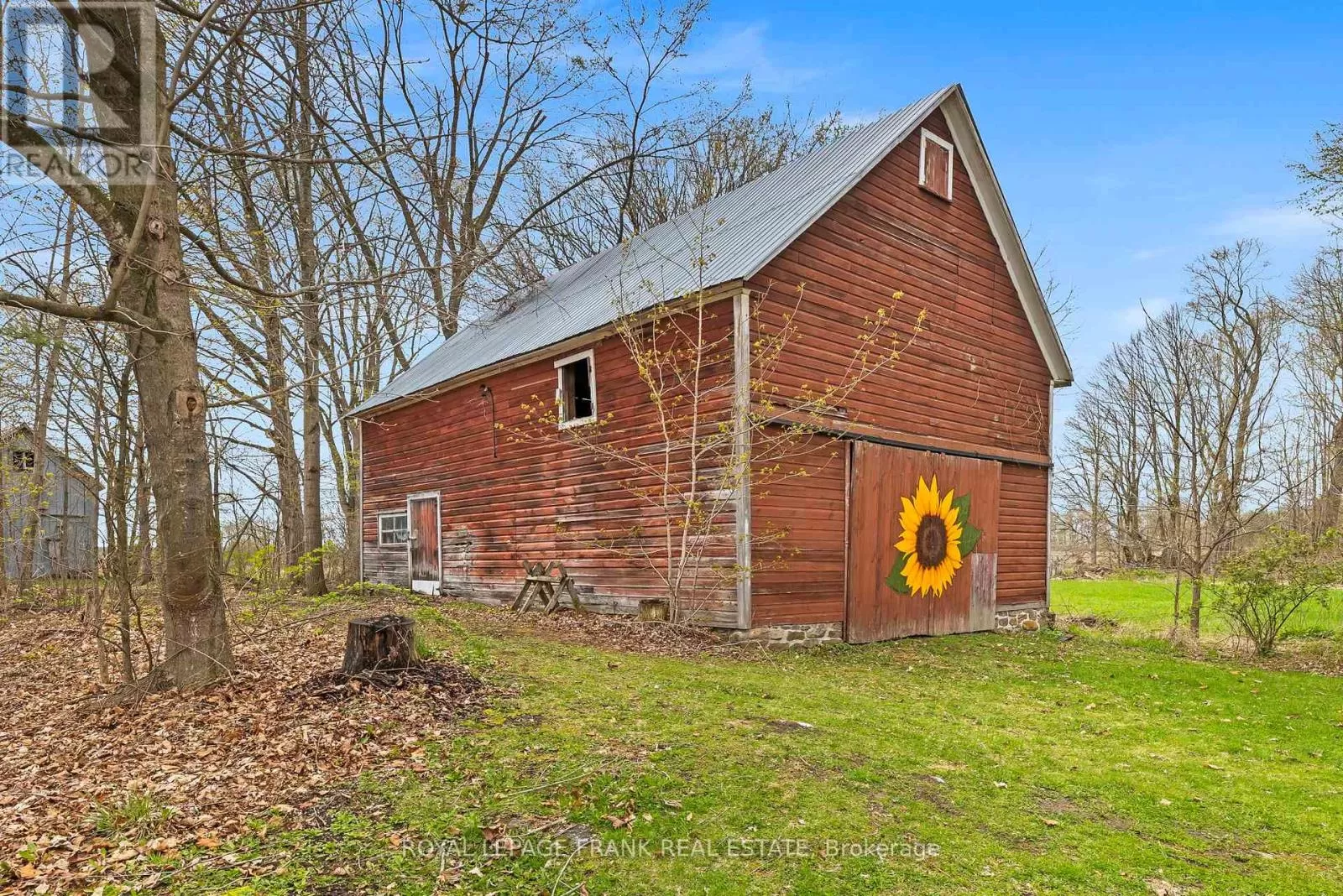 Cross Streets: COUNTY RD 32 WEST SIDE NORTH OF 401). ** Directions: NORTH FROM 401 ON HWY 32 (COUNTY RD 32) ON LEFT SIDE. A peaceful rural escape awaits you in Seeleys Bay, nestled on approx. 70 scenic acres. This two-storey farmhouse offers a wonderful blend of comfort, character, and outdoor freedom. Step onto the inviting front porch and feel instantly at ease this is a place where mornings begin with coffee and birdsong. Inside, the main level welcomes you with wood floors, an expansive, bright, eat-in kitchen ideal for casual meals or catching up with family. The main principal room has beautiful hardwood floors, is large enough to host the whole extended family for dinner, or set it up as a large living room? Ambiance abounds with a wood stove and adjacent cozy den/living room/study- a quiet place to unwind, relax with a good book or great conversations. There is also a rough-in for a small bathroom. The sunroom and convenient main floor laundry adds everyday ease. The huge wall to wall windows bring in the sunshine and serenity of the outdoors Upstairs, there are three comfortable bedrooms, a fourth or den, two bathrooms, that could serve creative space, or an extra bedroom. Another light-filled sunroom on this level offers picturesque views and a tranquil spot to recharge. It could also be your home office or studio! Outside, theres room to roam meadows, mature trees, trails, fields to grow, several useful outbuildings, (a barn, chicken coops, drive shed, silo). Whether you're dreaming of gardens, hobby farming, or just breathing in fresh country air, this property offers a true connection to nature. A detached garage provides great storage for tools, toys, or weekend projects. This home has been filled with laughter and love and offers the kind of peace and privacy that's becoming harder to find. Whether you're settling in full-time or searching for a weekend getaway, this special property is ready to welcome you home. The farmable acreage has been maintained by a local farmer and used to grow hay, soybeans, corn and oats. Back Deck is approx 27'4" (8.35 m) x 7'3"(2.23 m) (id:27476)