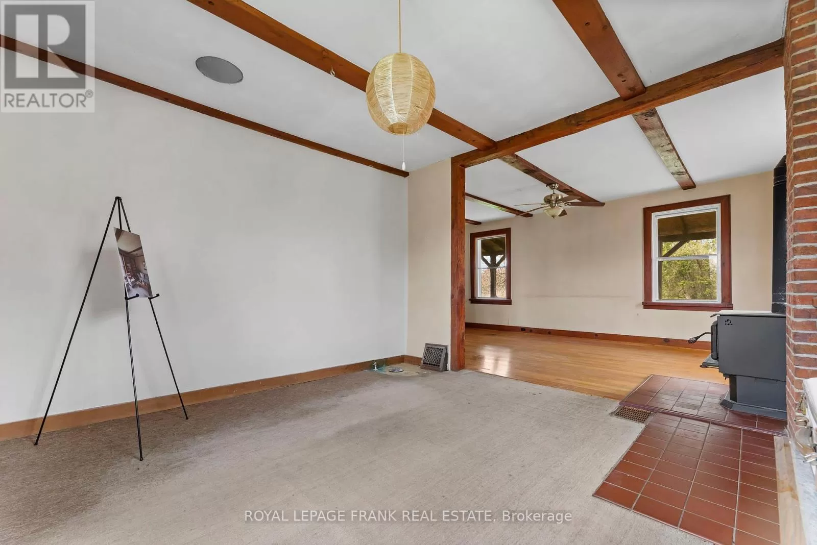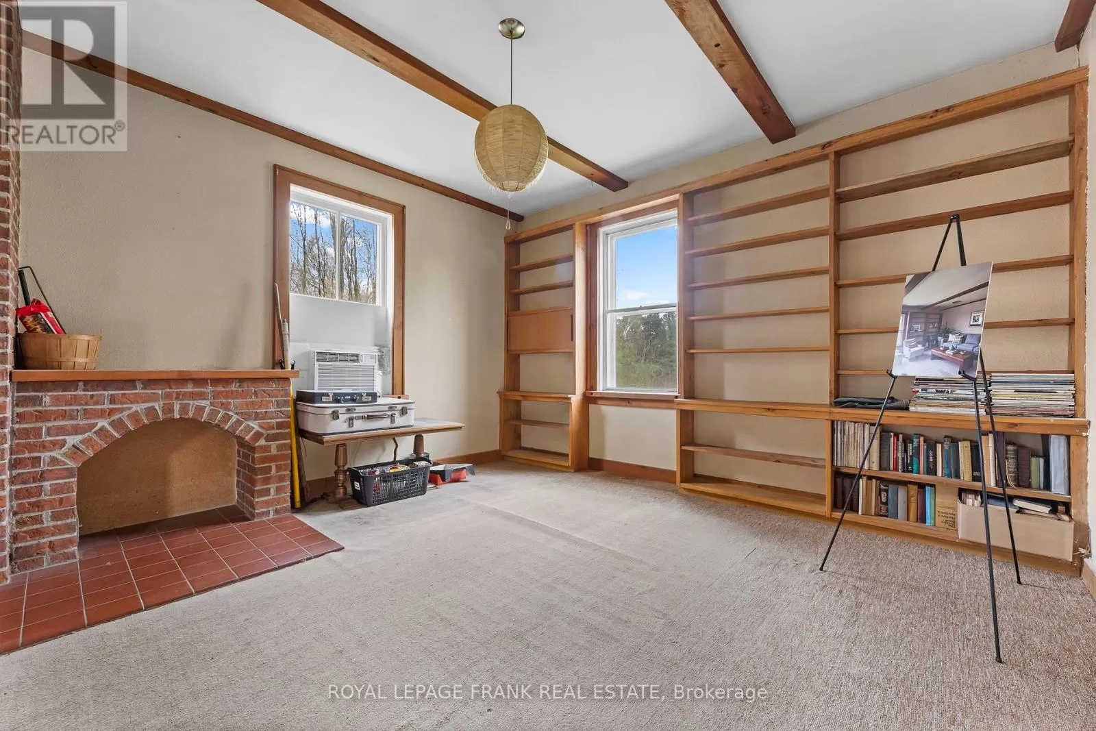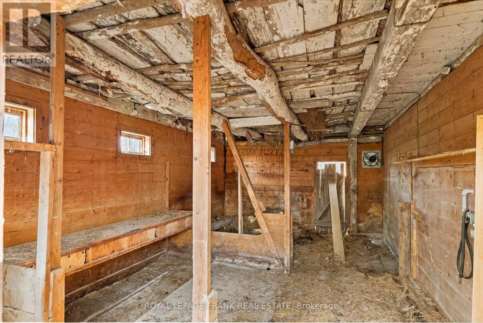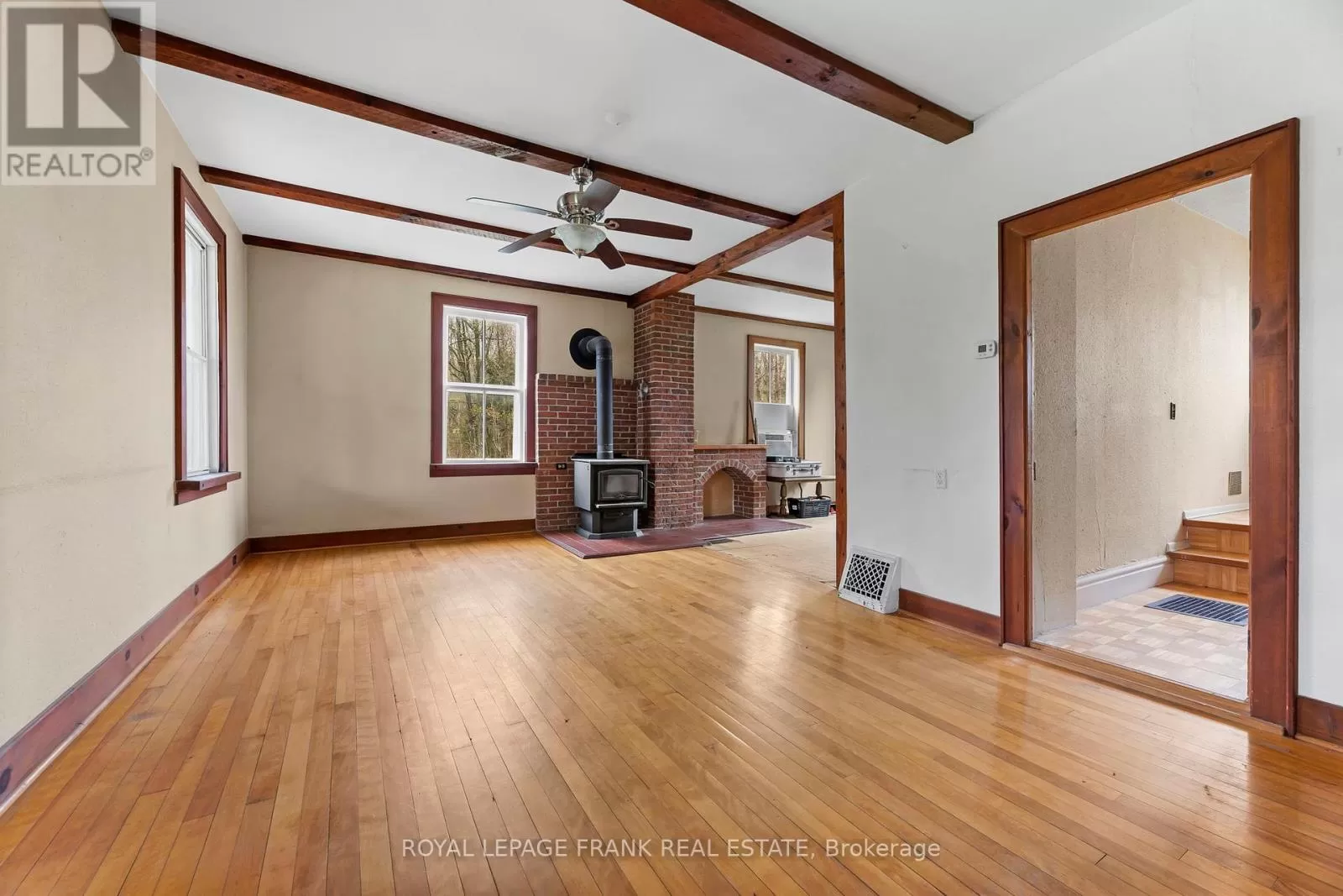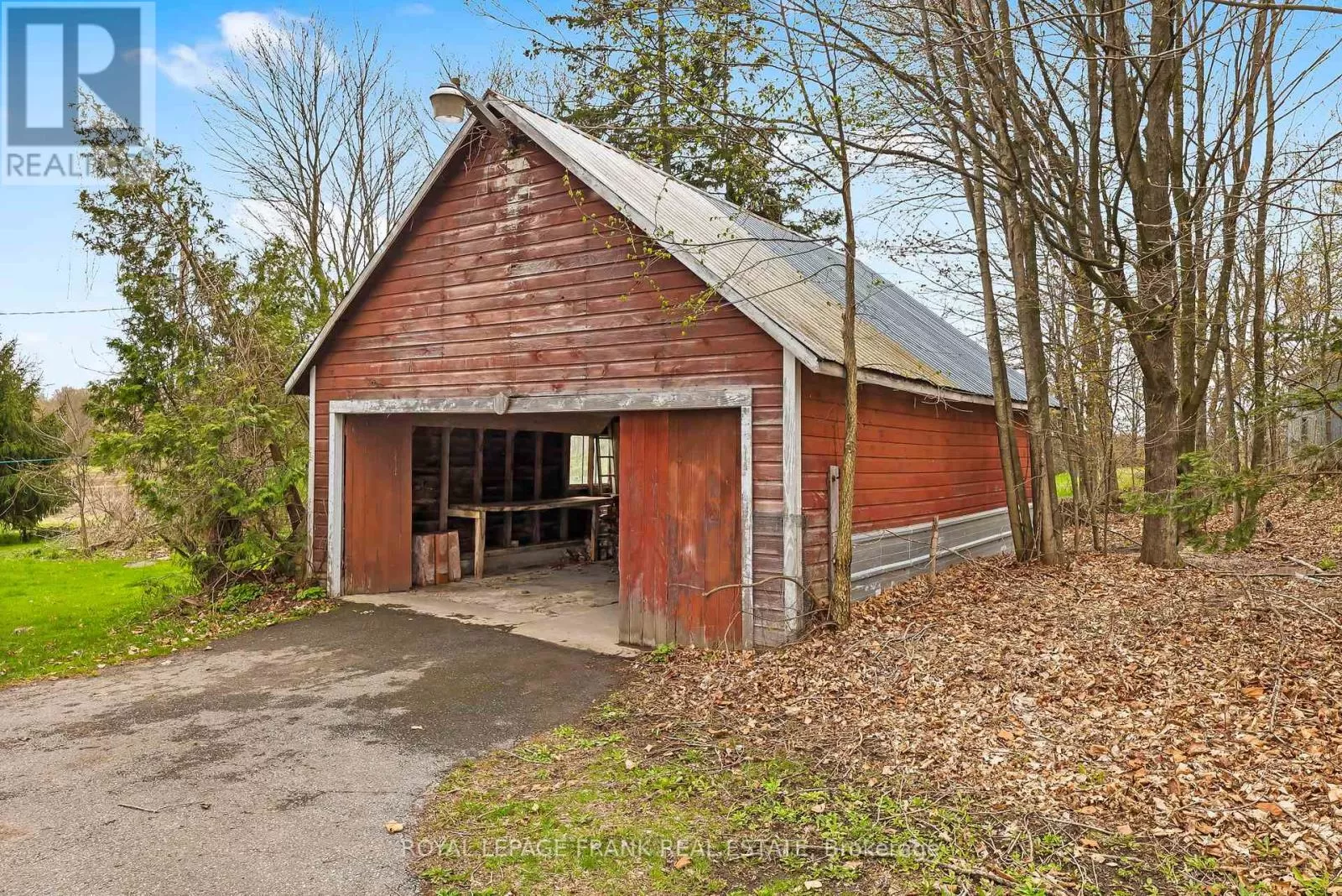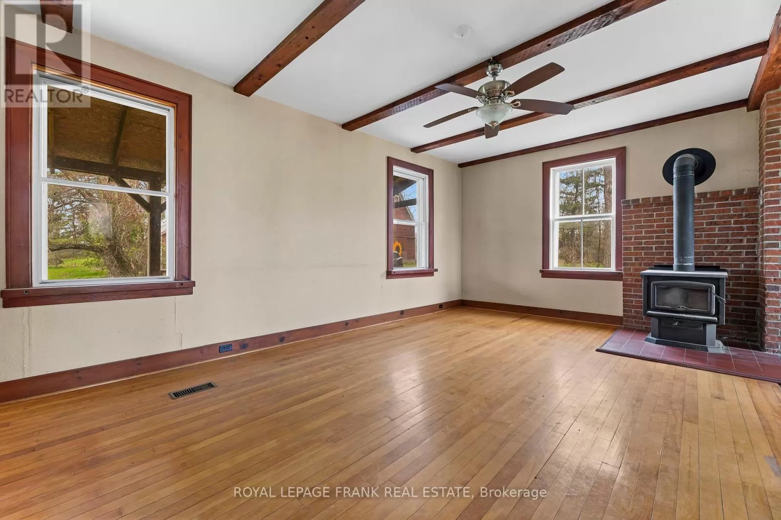 Cross Streets: COUNTY RD 32 WEST SIDE NORTH OF 401). ** Directions: NORTH FROM 401 ON HWY 32 (COUNTY RD 32) ON LEFT SIDE. A peaceful rural escape awaits you in Seeleys Bay, nestled on approx. 70 scenic acres. This two-storey farmhouse offers a wonderful blend of comfort, character, and outdoor freedom. Step onto the inviting front porch and feel instantly at ease this is a place where mornings begin with coffee and birdsong. Inside, the main level welcomes you with wood floors, an expansive, bright, eat-in kitchen ideal for casual meals or catching up with family. The main principal room has beautiful hardwood floors, is large enough to host the whole extended family for dinner, or set it up as a large living room? Ambiance abounds with a wood stove and adjacent cozy den/living room/study- a quiet place to unwind, relax with a good book or great conversations. There is also a rough-in for a small bathroom. The sunroom and convenient main floor laundry adds everyday ease. The huge wall to wall windows bring in the sunshine and serenity of the outdoors Upstairs, there are three comfortable bedrooms, a fourth or den, two bathrooms, that could serve creative space, or an extra bedroom. Another light-filled sunroom on this level offers picturesque views and a tranquil spot to recharge. It could also be your home office or studio! Outside, theres room to roam meadows, mature trees, trails, fields to grow, several useful outbuildings, (a barn, chicken coops, drive shed, silo). Whether you're dreaming of gardens, hobby farming, or just breathing in fresh country air, this property offers a true connection to nature. A detached garage provides great storage for tools, toys, or weekend projects. This home has been filled with laughter and love and offers the kind of peace and privacy that's becoming harder to find. Whether you're settling in full-time or searching for a weekend getaway, this special property is ready to welcome you home. The farmable acreage has been maintained by a local farmer and used to grow hay, soybeans, corn and oats. Back Deck is approx 27'4" (8.35 m) x 7'3"(2.23 m) (id:27476)
