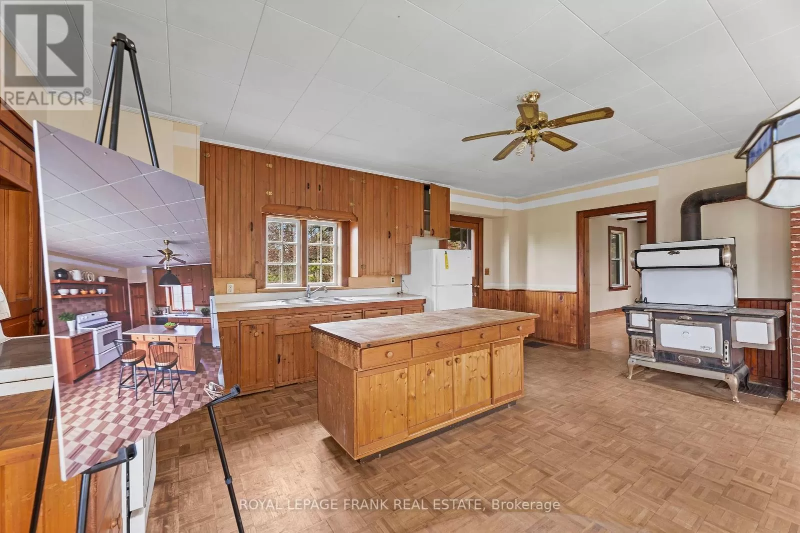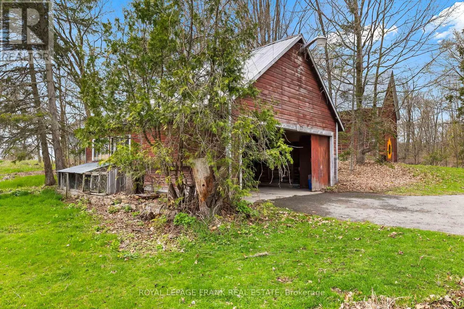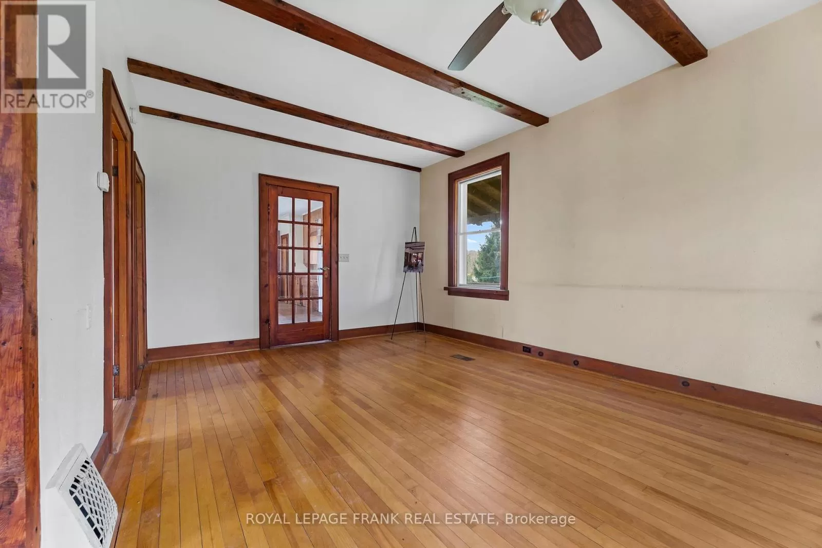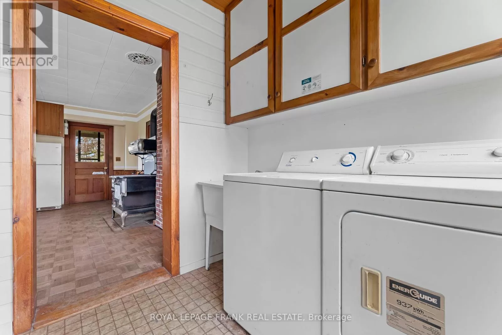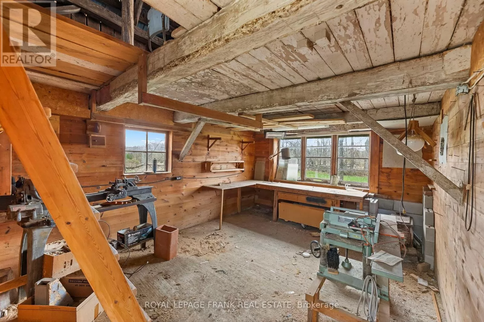 Cross Streets: COUNTY RD 32 WEST SIDE NORTH OF 401). ** Directions: NORTH FROM 401 ON HWY 32 (COUNTY RD 32) ON LEFT SIDE. A peaceful rural escape awaits you in Seeleys Bay, nestled on approx. 70 scenic acres. This two-storey farmhouse offers a wonderful blend of comfort, character, and outdoor freedom. Step onto the inviting front porch and feel instantly at ease this is a place where mornings begin with coffee and birdsong. Inside, the main level welcomes you with wood floors, an expansive, bright, eat-in kitchen ideal for casual meals or catching up with family. The main principal room has beautiful hardwood floors, is large enough to host the whole extended family for dinner, or set it up as a large living room? Ambiance abounds with a wood stove and adjacent cozy den/living room/study- a quiet place to unwind, relax with a good book or great conversations. There is also a rough-in for a small bathroom. The sunroom and convenient main floor laundry adds everyday ease. The huge wall to wall windows bring in the sunshine and serenity of the outdoors Upstairs, there are three comfortable bedrooms, a fourth or den, two bathrooms, that could serve creative space, or an extra bedroom. Another light-filled sunroom on this level offers picturesque views and a tranquil spot to recharge. It could also be your home office or studio! Outside, theres room to roam meadows, mature trees, trails, fields to grow, several useful outbuildings, (a barn, chicken coops, drive shed, silo). Whether you're dreaming of gardens, hobby farming, or just breathing in fresh country air, this property offers a true connection to nature. A detached garage provides great storage for tools, toys, or weekend projects. This home has been filled with laughter and love and offers the kind of peace and privacy that's becoming harder to find. Whether you're settling in full-time or searching for a weekend getaway, this special property is ready to welcome you home. The farmable acreage has been maintained by a local farmer and used to grow hay, soybeans, corn and oats. Back Deck is approx 27'4" (8.35 m) x 7'3"(2.23 m) (id:27476)