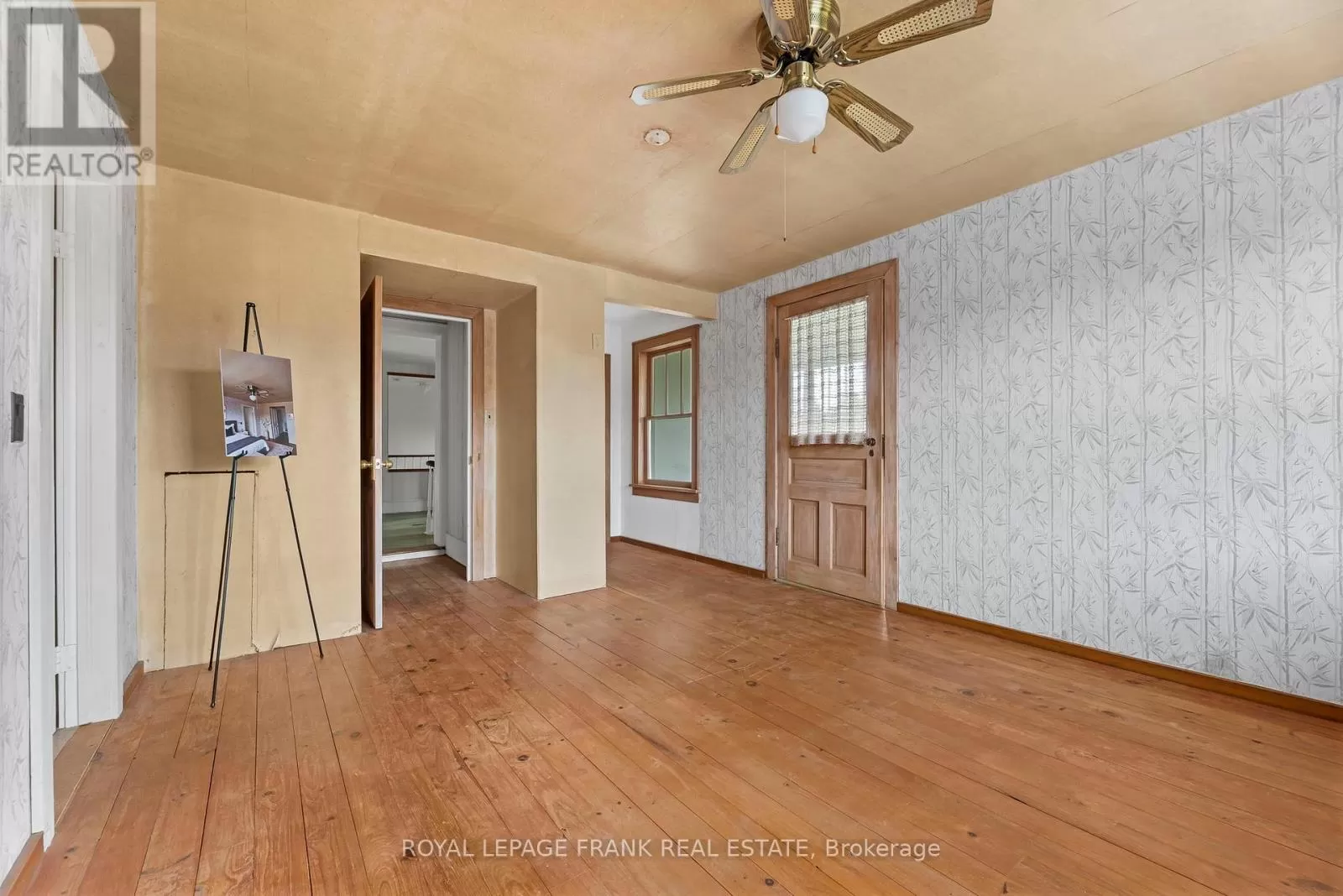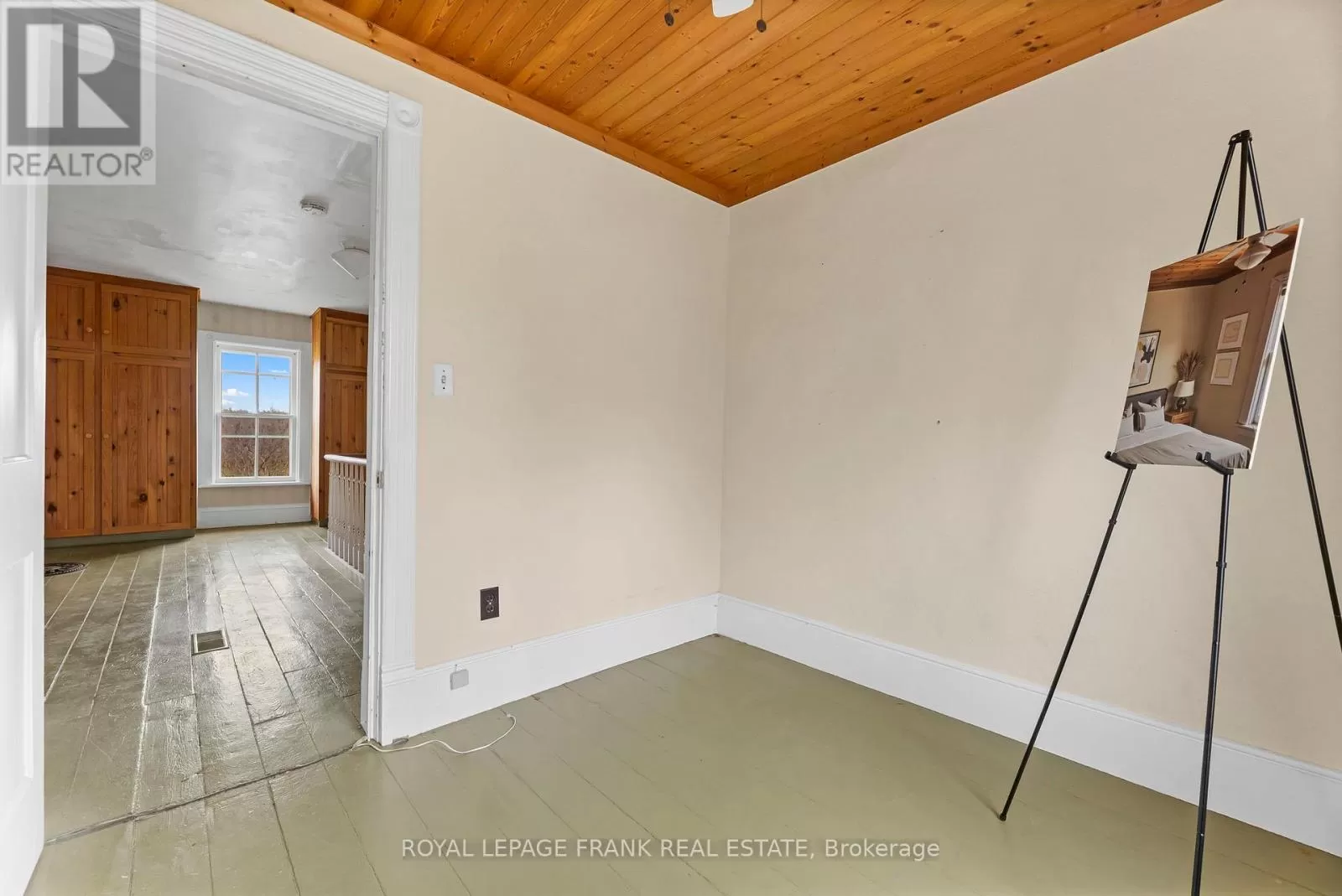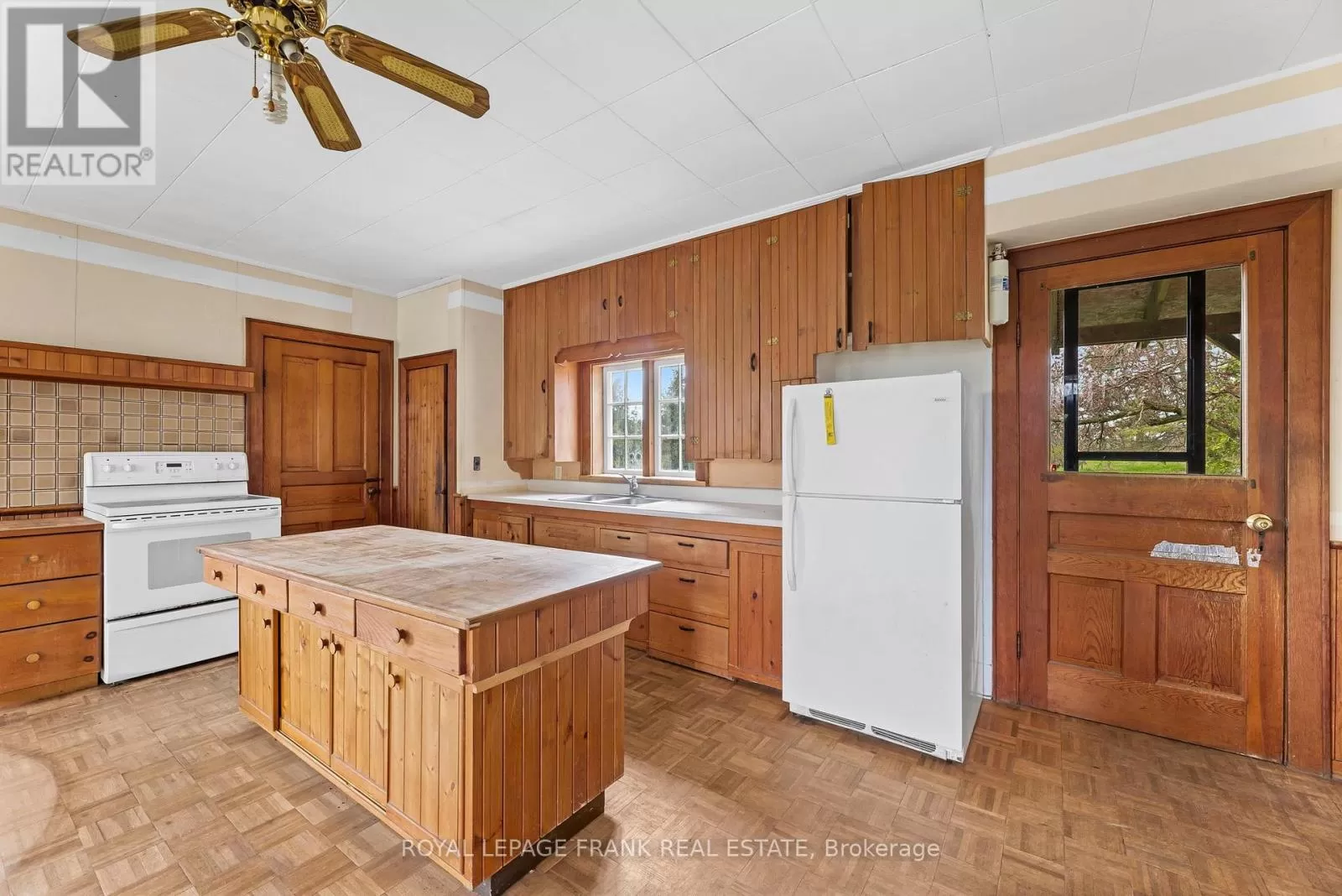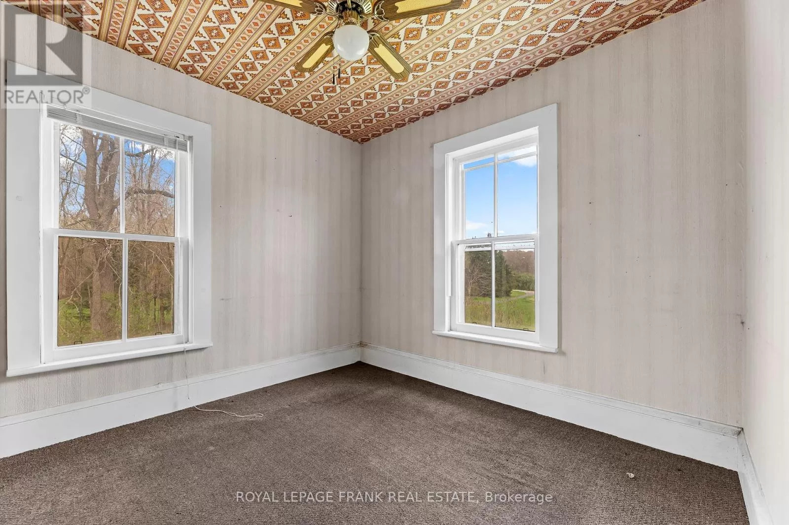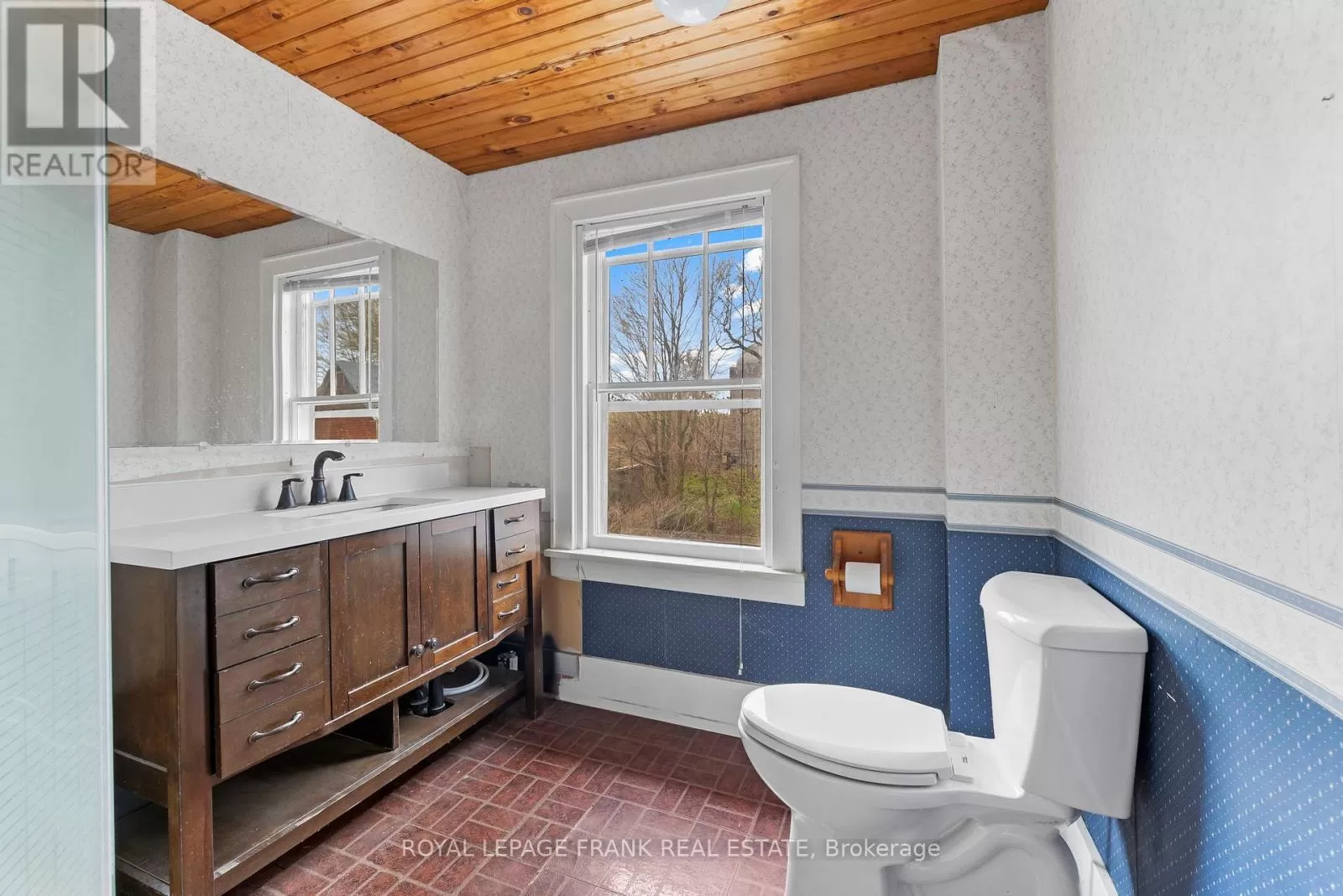 Cross Streets: COUNTY RD 32 WEST SIDE NORTH OF 401). ** Directions: NORTH FROM 401 ON HWY 32 (COUNTY RD 32) ON LEFT SIDE. A peaceful rural escape awaits you in Seeleys Bay, nestled on approx. 70 scenic acres. This two-storey farmhouse offers a wonderful blend of comfort, character, and outdoor freedom. Step onto the inviting front porch and feel instantly at ease this is a place where mornings begin with coffee and birdsong. Inside, the main level welcomes you with wood floors, an expansive, bright, eat-in kitchen ideal for casual meals or catching up with family. The main principal room has beautiful hardwood floors, is large enough to host the whole extended family for dinner, or set it up as a large living room? Ambiance abounds with a wood stove and adjacent cozy den/living room/study- a quiet place to unwind, relax with a good book or great conversations. There is also a rough-in for a small bathroom. The sunroom and convenient main floor laundry adds everyday ease. The huge wall to wall windows bring in the sunshine and serenity of the outdoors Upstairs, there are three comfortable bedrooms, a fourth or den, two bathrooms, that could serve creative space, or an extra bedroom. Another light-filled sunroom on this level offers picturesque views and a tranquil spot to recharge. It could also be your home office or studio! Outside, theres room to roam meadows, mature trees, trails, fields to grow, several useful outbuildings, (a barn, chicken coops, drive shed, silo). Whether you're dreaming of gardens, hobby farming, or just breathing in fresh country air, this property offers a true connection to nature. A detached garage provides great storage for tools, toys, or weekend projects. This home has been filled with laughter and love and offers the kind of peace and privacy that's becoming harder to find. Whether you're settling in full-time or searching for a weekend getaway, this special property is ready to welcome you home. The farmable acreage has been maintained by a local farmer and used to grow hay, soybeans, corn and oats. Back Deck is approx 27'4" (8.35 m) x 7'3"(2.23 m) (id:27476)