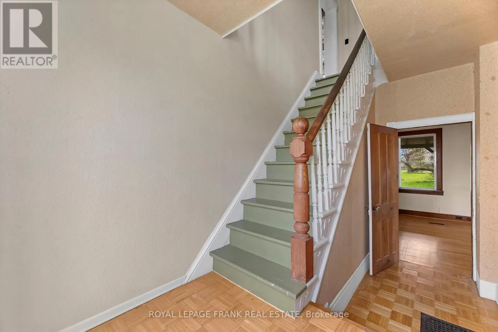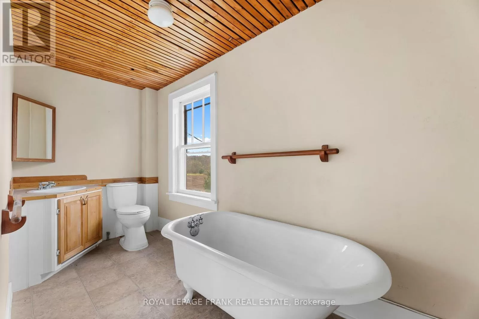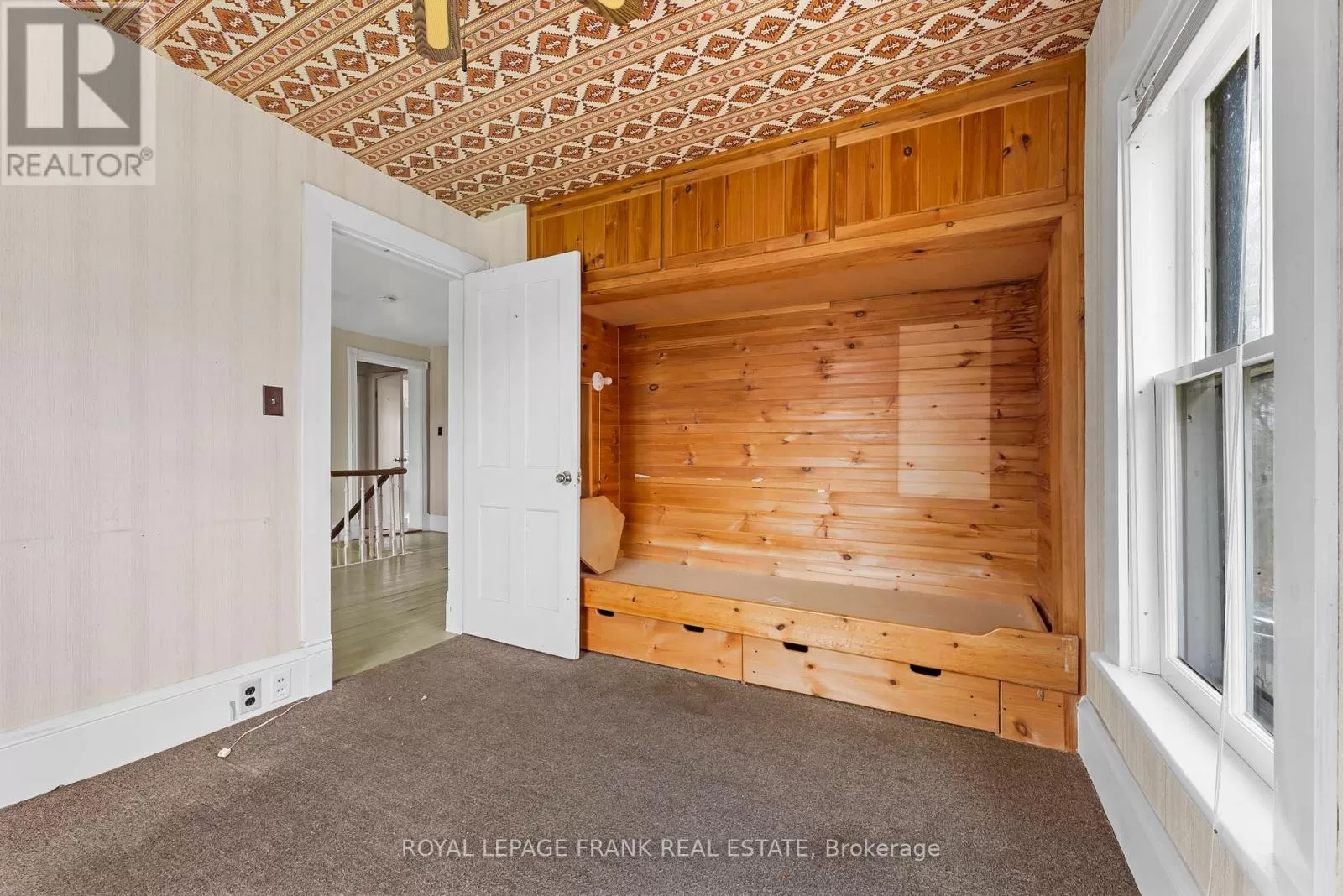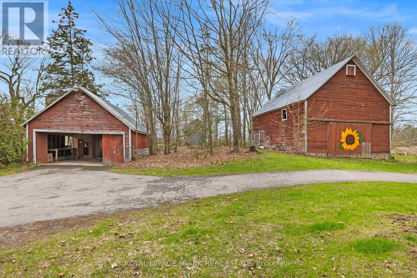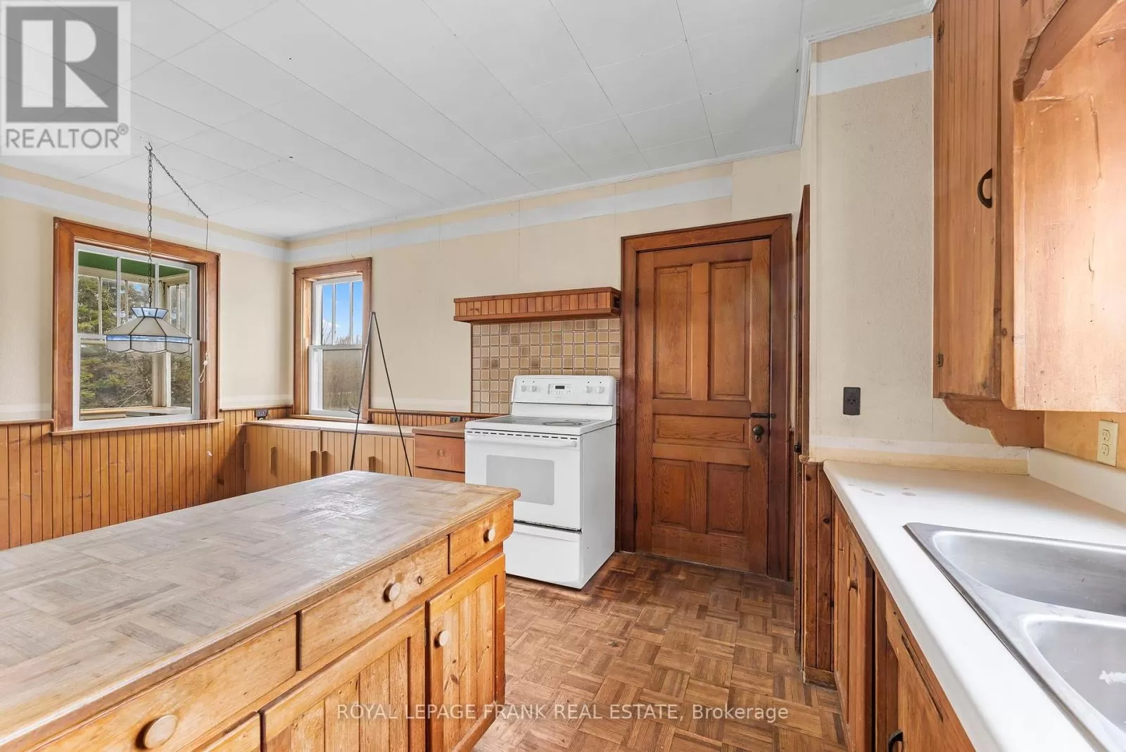 Cross Streets: COUNTY RD 32 WEST SIDE NORTH OF 401). ** Directions: NORTH FROM 401 ON HWY 32 (COUNTY RD 32) ON LEFT SIDE. A peaceful rural escape awaits you in Seeleys Bay, nestled on approx. 70 scenic acres. This two-storey farmhouse offers a wonderful blend of comfort, character, and outdoor freedom. Step onto the inviting front porch and feel instantly at ease this is a place where mornings begin with coffee and birdsong. Inside, the main level welcomes you with wood floors, an expansive, bright, eat-in kitchen ideal for casual meals or catching up with family. The main principal room has beautiful hardwood floors, is large enough to host the whole extended family for dinner, or set it up as a large living room? Ambiance abounds with a wood stove and adjacent cozy den/living room/study- a quiet place to unwind, relax with a good book or great conversations. There is also a rough-in for a small bathroom. The sunroom and convenient main floor laundry adds everyday ease. The huge wall to wall windows bring in the sunshine and serenity of the outdoors Upstairs, there are three comfortable bedrooms, a fourth or den, two bathrooms, that could serve creative space, or an extra bedroom. Another light-filled sunroom on this level offers picturesque views and a tranquil spot to recharge. It could also be your home office or studio! Outside, theres room to roam meadows, mature trees, trails, fields to grow, several useful outbuildings, (a barn, chicken coops, drive shed, silo). Whether you're dreaming of gardens, hobby farming, or just breathing in fresh country air, this property offers a true connection to nature. A detached garage provides great storage for tools, toys, or weekend projects. This home has been filled with laughter and love and offers the kind of peace and privacy that's becoming harder to find. Whether you're settling in full-time or searching for a weekend getaway, this special property is ready to welcome you home. The farmable acreage has been maintained by a local farmer and used to grow hay, soybeans, corn and oats. Back Deck is approx 27'4" (8.35 m) x 7'3"(2.23 m) (id:27476)