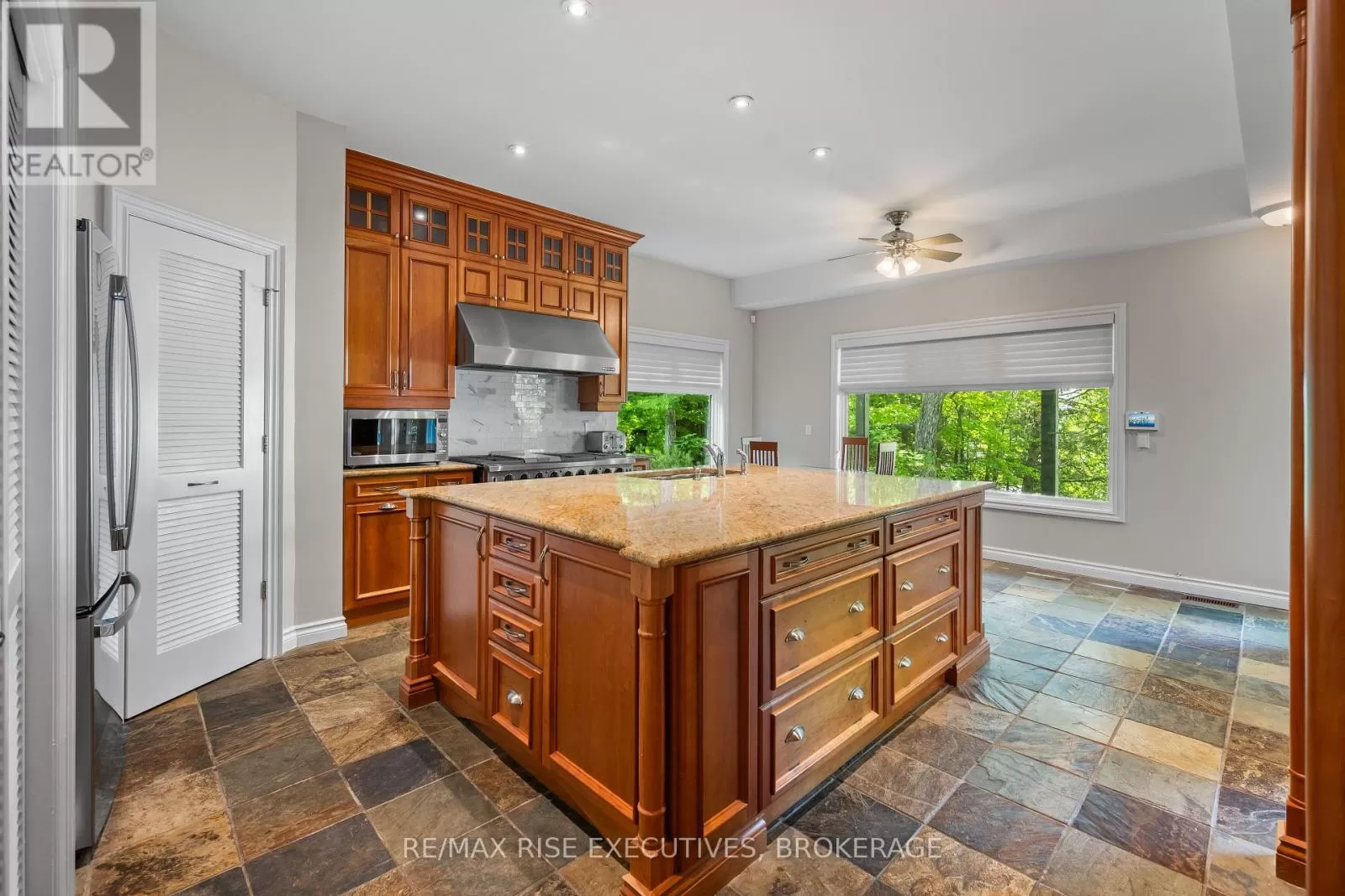 Cross Streets: County Rd 32. ** Directions: County Road 32. Million-Dollar Views, Endless Potential 22.5 Acres on South Lake. An extraordinary opportunity awaits with this sprawling waterfront estate, offering over 800 feet of west-facing shoreline on beautiful South Lake. Just 10 minutes from Gananoque, this unique property delivers unbeatable privacy, breathtaking sunsets, and the chance to create your dream retreat. The house features over 6000 sq ft of living space with 7 bedrooms, 6 bathrooms, private master suite, beautiful office and grand living room. Tucked away among a diverse landscape of hardwoods, softwoods, granite outcrops, and abundant wildlife, the setting is nothing short of magical. Follow the well-maintained stairs down to a charming rustic separately deeded cabin right at the waters edge - perfect for peaceful getaways or summer afternoons by the lake. Recent updates to the home include: new septic system, new furnace, new a/c, water softener, washer/dryer, gas stove, new blinds throughout, new flooring in all bedrooms and freshly painted inside and out. This is more than just a property, its a lifestyle, a sanctuary, and a once-in-a-generation chance to own a true piece of Canadian landscape. (id:27476)