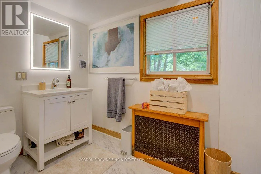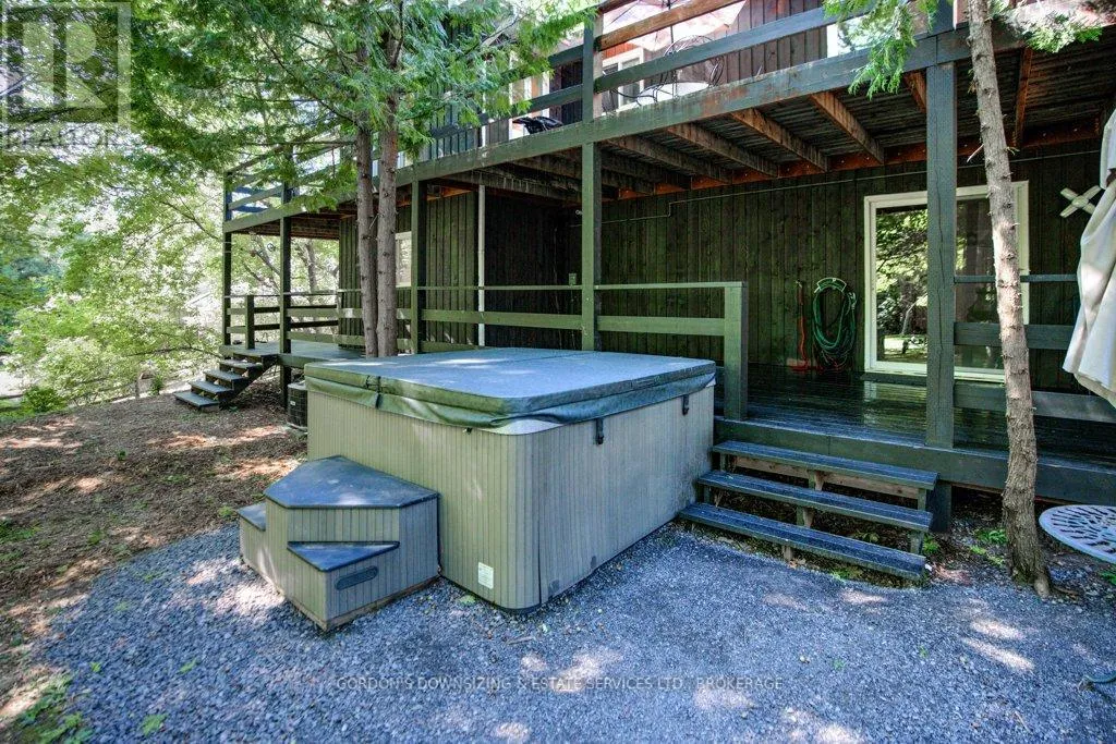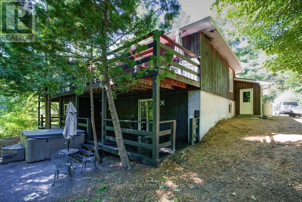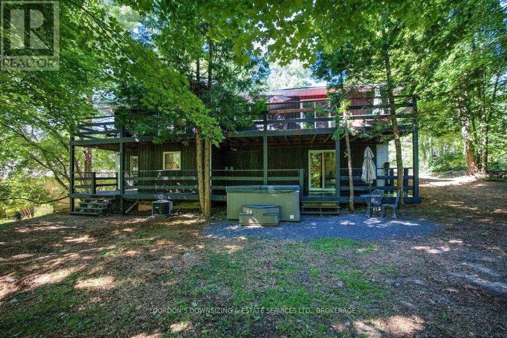 Cross Streets: 1000 Island Pkwy. ** Directions: 1000 Island Parkway East to Village Estates Rd. Nestled along the scenic 1000 Islands Parkway in the sought-after Village Estates Waterfront community. This charming 5-bed, 2-bath residence offers a comfortable and versatile layout. Offering approximately 1,459 sq, the main level features a bright living room with a wood-burning fireplace and patio doors leading to a front deck. The adjoining dining room with French doors lead to the kitchen with ample cabinetry and a convenient eat-in area with access to two decks overlooking a private, treed backyard. The main level is complete with three bedrooms and 4-piece bathroom featuring dual access, with direct entry from the primary bedroom, which also offers patio doors leading to a deck. The fully finished lower level with a walkout to the backyard, large deck also includes a spacious rec room with a second wood-burning fireplace, two additional bedrooms, a 4-piece bathroom with a claw foot tub and shower kit, a laundry area, utility room and storage throughout. This level offers excellent potential for an in-law suite, rental unit, or Airbnb, adding to the home's flexibility and value. Numerous updates include: A/C (2025),Updated light fixtures, sinks, counter tops in main bathroom, Updated 4-piece bathroom in basement with clawfoot tub and shower kit, New laminate flooring on main level hallway living/dining room and entrance, Updated stairwell railing, painting & trim replacement, Refinished driveway, New Beachcomber hot tub with (2) pumps, lifter cover. As a resident of Village Estates, you'll also enjoy a shared private waterfront marina membership with your own the exclusive deeded 20' boat slip . Annual fee of $400.Whether you're looking for space for a large or extended family, multi-generational living, or an investment opportunity this home delivers comfort, function, and a lifestyle to match. Offers will be presented on September 15th (id:27476)