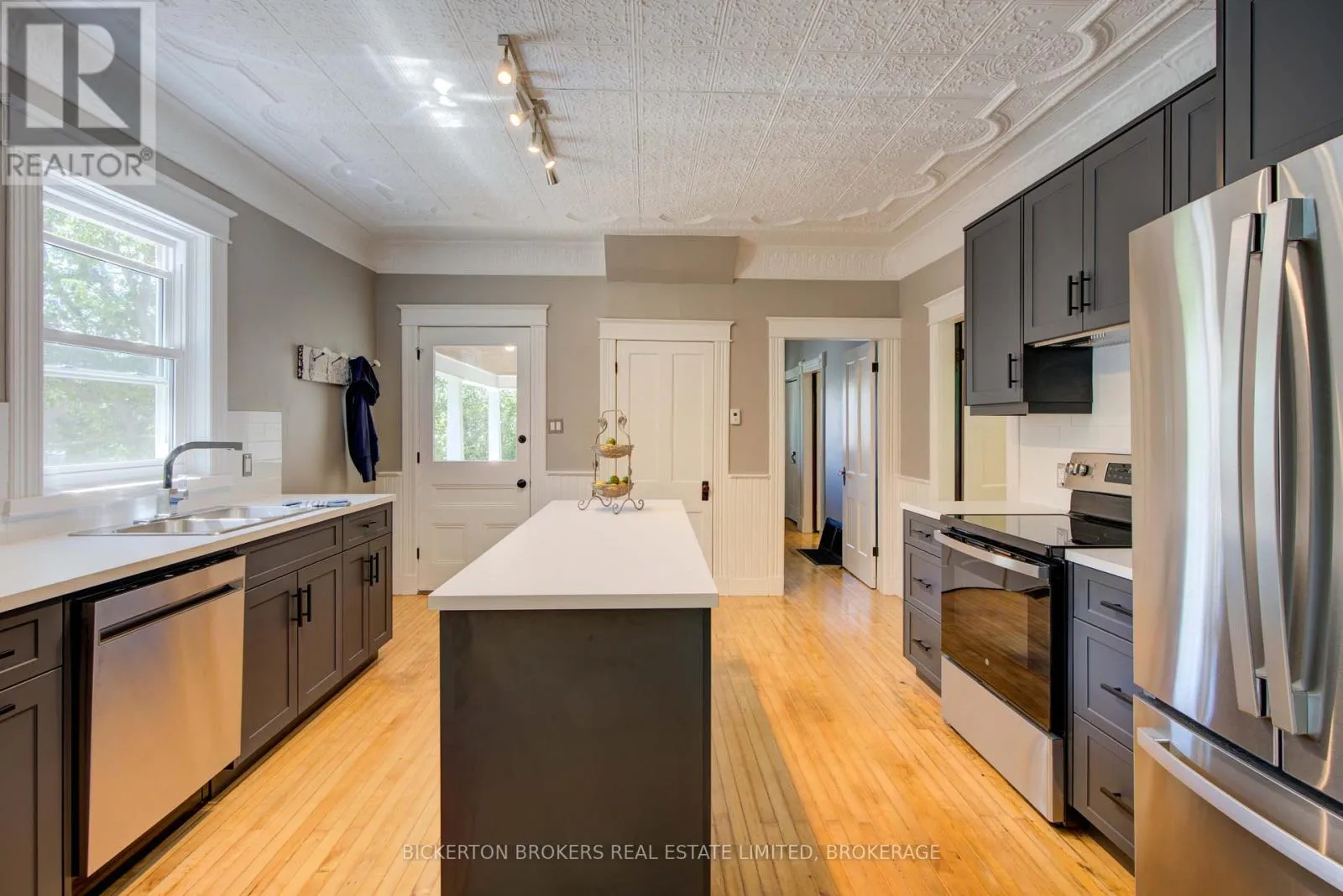 Cross Streets: Adelaide St & Main Street. ** Directions: From Gan. Hwy 15 - Right on Main St. to 153 From Kingston, Hwy 15, left on Main St. to 153. Step into a beautifully re-imagined century home built in 1914, where historic character and thoughtful craftsmanship come together on a spacious, tree-lined lot in the heart of Seeleys Bay, just a short drive to Kingston and Gananoque.This fully renovated residence welcomes you with a sweeping wrap-around porch and a sense of warmth that continues throughout. Original hardwood floors, rich wood trim, and a graceful staircase speak to its heritage, while tasteful updates enhance comfort and functionality.The main floor features a custom kitchen with all new appliances, a versatile bonus room off the kitchen, and convenient main-floor laundry. Upstairs offers three generously sized bedrooms and an enclosed upper deck ideal for quiet moments or entertaining. Above, a finished attic provides endless possibilities as a primary suite, creative studio, games room, or private retreat. Additional features include: Stylishly updated bathrooms with ceramic tile and modern fixtures Full, dry basement with abundant storage, new septic tank, new wellhead and pump, updated electrical panel, newer furnace and mostly new or newer windows throughout. Detached garden shed and additional storage space. Located next to a community-use building (formerly the fire hall), the home enjoys high-speed internet access with Bell Fibre installation scheduled by late 2025. Seeleys Bay is a vibrant, full-service community offering essentials and more including grocery, LCBO, pharmacy, medical clinic, library, gym, and even a chocolatier, all within walking distance. Boaters and outdoor enthusiasts will love the proximity to parks, playgrounds, and free public boat launch on the Heritage Rideau.A rare blend of history, space, and purpose, this home is ready to support the lifestyle you've been looking for. (id:27476)