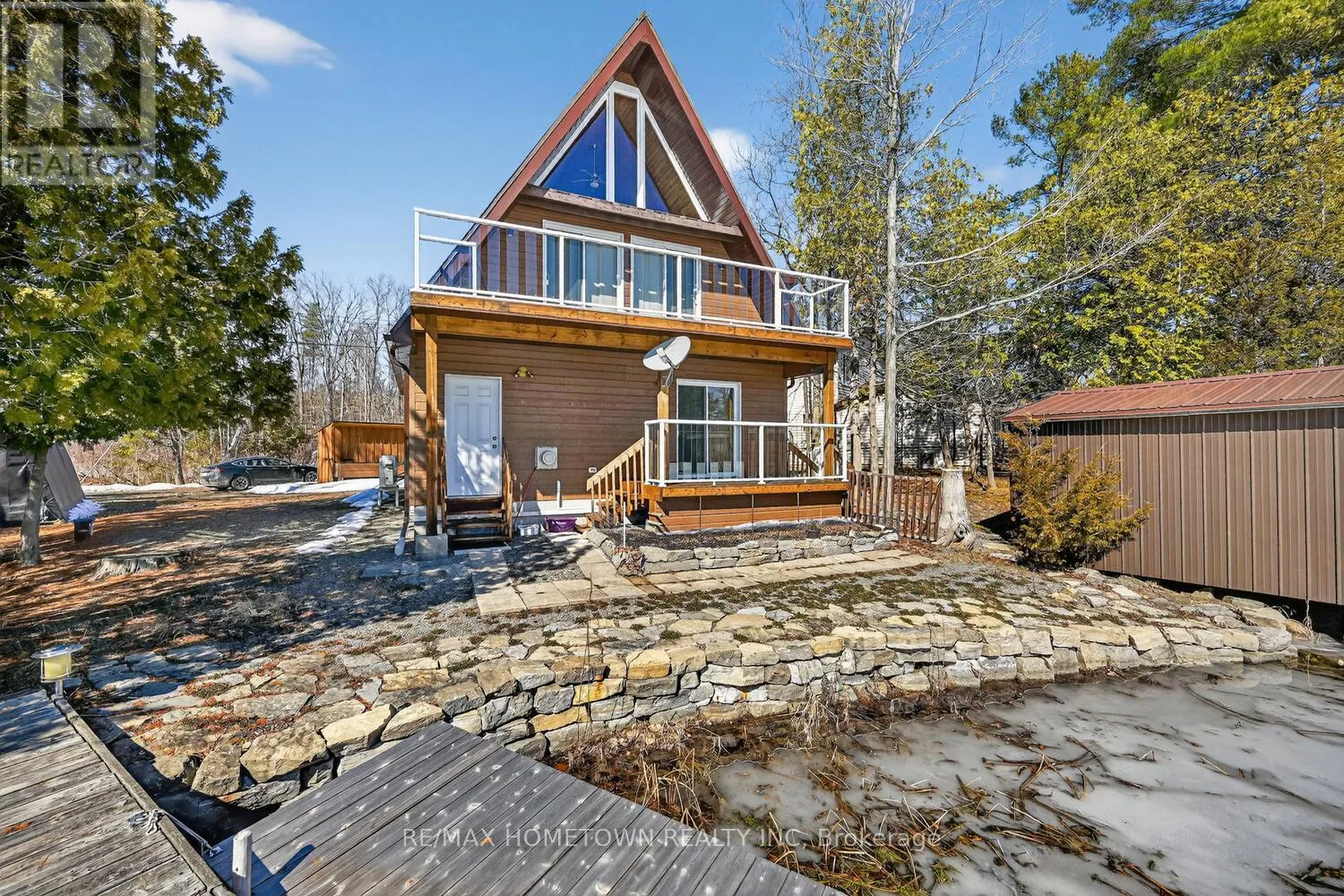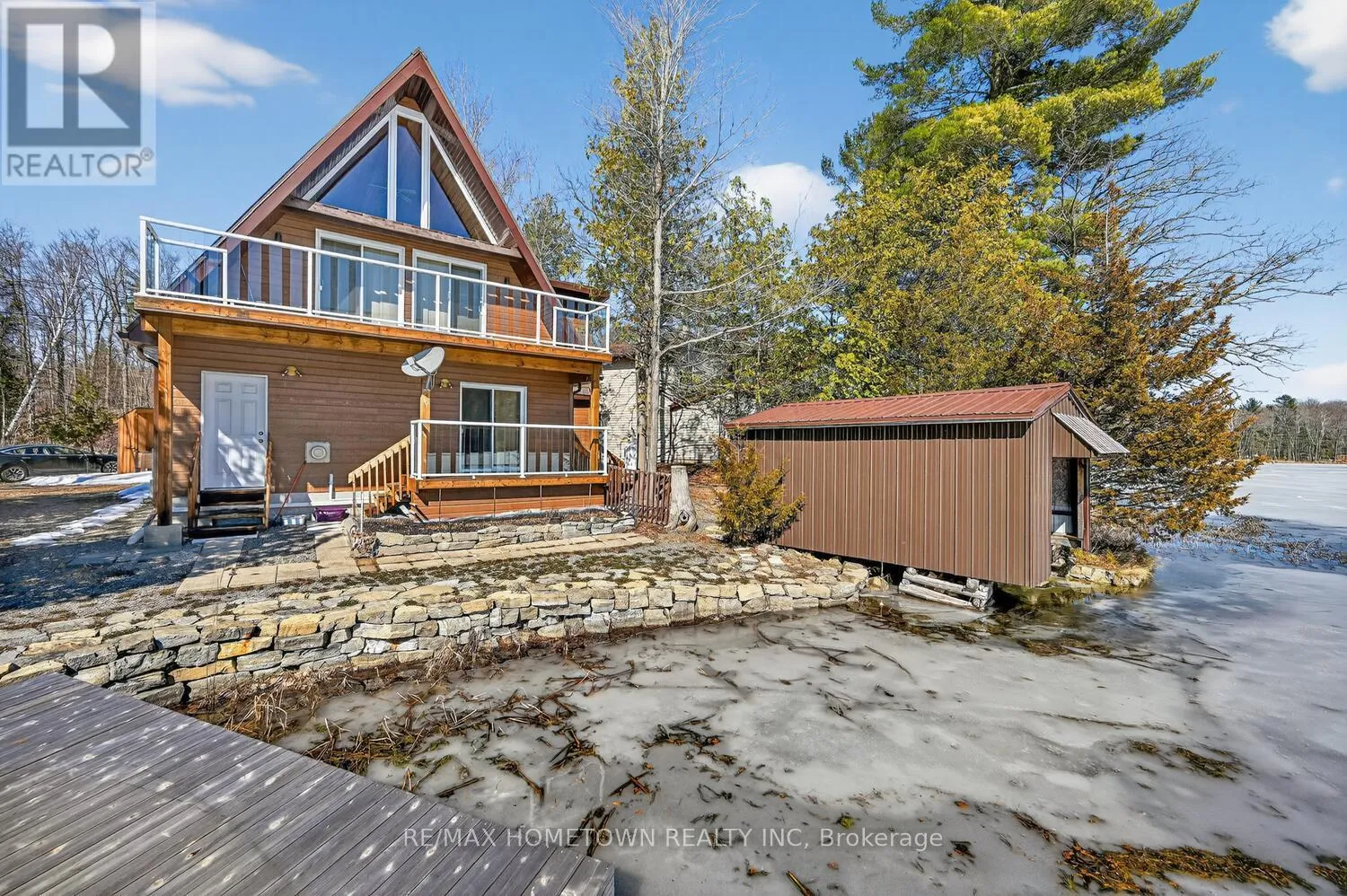 Cross Streets: Woodvale rd. ** Directions: from Lansdown north on County rd 3 To Woodvale rd, East on Woodvale to Hay Bay Lane. Google maps has accurate directions. Escape to the pristine shores of Charleston Lake, one of Ontario's true crown jewel lakes, renowned for its crystal-clear waters, exceptional swimming, boating, and fishing. With multiple boat launches and two marinas nearby, this is lakeside living at its finest-perfectly positioned with easy access to two international bridges to the USA and just a 3.5-hour drive from Toronto. Set on a perfectly level lot with year-round access, this stunning waterfront property offers effortless enjoyment of lake life. Step right out to your direct shoreline access, complete with both fixed and floating docks-ideal for boating enthusiasts and those who love to soak up the sun by the water. Originally built in 1970 and thoughtfully renovated in 2017, the home was raised and enhanced with a new 10-block foundation, along with the addition of a heated and insulated single-car garage. Inside, this charming chalet-style home blends comfort and character, featuring 2 bedrooms plus a versatile loft space. The main floor is designed for convenience with a spacious primary bedroom offering a walk-in closet, private ensuite, and in-suite laundry. Upstairs, the open-concept living area showcases a bright eat-in kitchen with pantry, seamlessly flowing into the dining and family room, all with access to an elevated deck-perfect for entertaining or enjoying breathtaking lake views. A second deck off the primary bedroom provides a peaceful retreat to start or end your day. Additional features include an energy-efficient heat pump for heating and cooling, a 200-amp breaker panel, a 10KW Generac propane generator, drilled well, and concrete holding tank. The durable CanExel siding-crafted from a blend of wood and composite materials-offers long-lasting curb appeal with an approximate 40-year lifespan. Whether you're searching for a year-round home or the ultimate waterfront getaway, this exceptional Charleston Lake property delivers the lifestyle you've been dreaming of. (id:27476)
