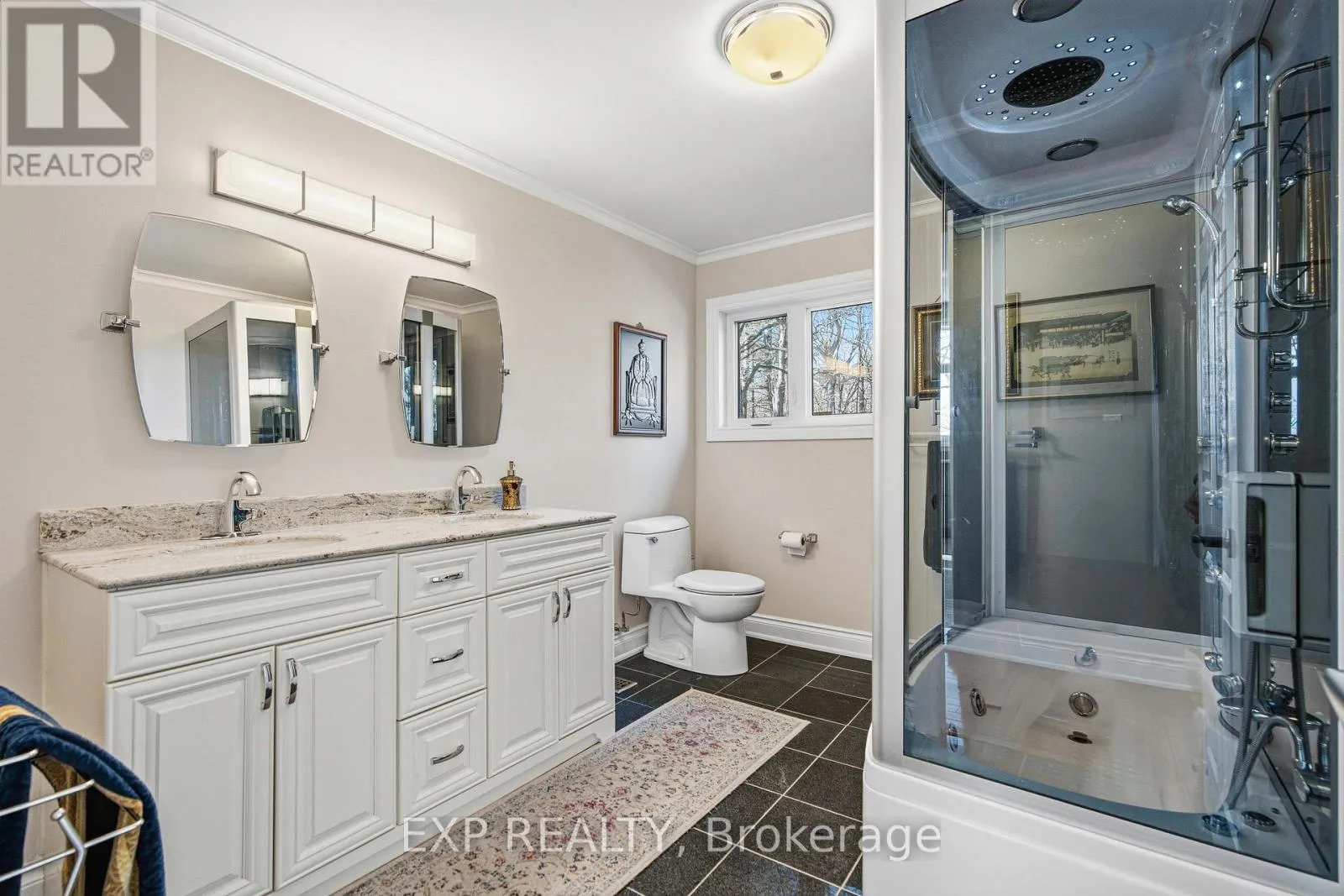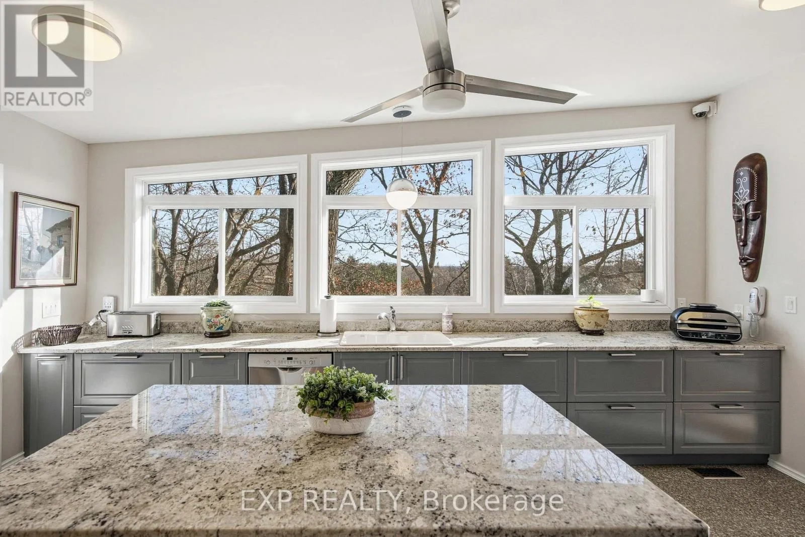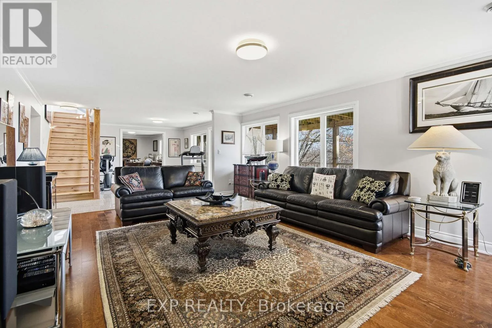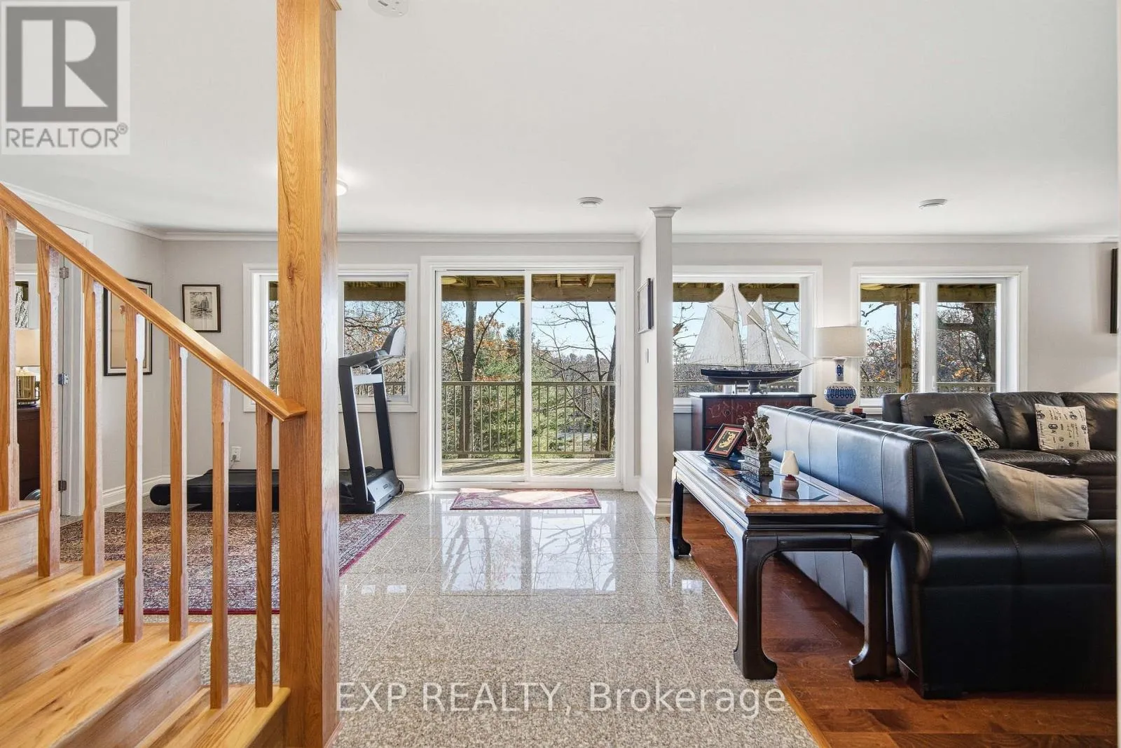 Cross Streets: Thousands Islands Parkway/Larue Mills. ** Directions: 3 Larue Mills Road. Tucked away along a winding, tree-lined driveway on 5 private acres, this beautifully renovated 4-bedroom, 3-bathroom residence offers over 3,300 sq. ft. of above-grade living space in the heart of the Thousand Islands region. From the moment you arrive, the approach sets the tone. The driveway gently curves through mature trees, revealing a home thoughtfully positioned within its natural surroundings for exceptional privacy. In the summer months especially, the leafy canopy transforms the property into a secluded retreat where everyday life feels miles away from the pace of the outside world. Inside, recent renovations elevate both comfort and functionality while preserving the generous scale expected from a home of this size. Expansive principal rooms create inviting gathering spaces, while four well-appointed bedrooms and three full bathrooms provide flexibility for families, guests, or multi-generational living. The attached double heated garage adds valuable year-round practicality-ideal for vehicles, recreational equipment, workshop use, or additional storage-making this property equally suited as a full-time residence or an executive country escape. Step outside to enjoy two generous decks facing the St. Lawrence River, creating the perfect setting for morning coffee, evening relaxation or entertaining guests surrrounded by nature. Set on 5 acres of beautifully treed land, the property offers space to explore, room to grow, and the freedom that only a private rural setting can provide. Whether enjoying quiet mornings surrounded by nature or hosting friends and family in a peaceful outdoor setting, this is a property designed for lifestyle as much as living. Located just minutes from the St. Lawrence River, marinas, and the renowned Thousand Islands recreation corridor, this home delivers the rare combination of privacy, space, modern updates, and year-round accessibility-all within one of Eastern Ontario's most desirable destination regions. (id:27476)