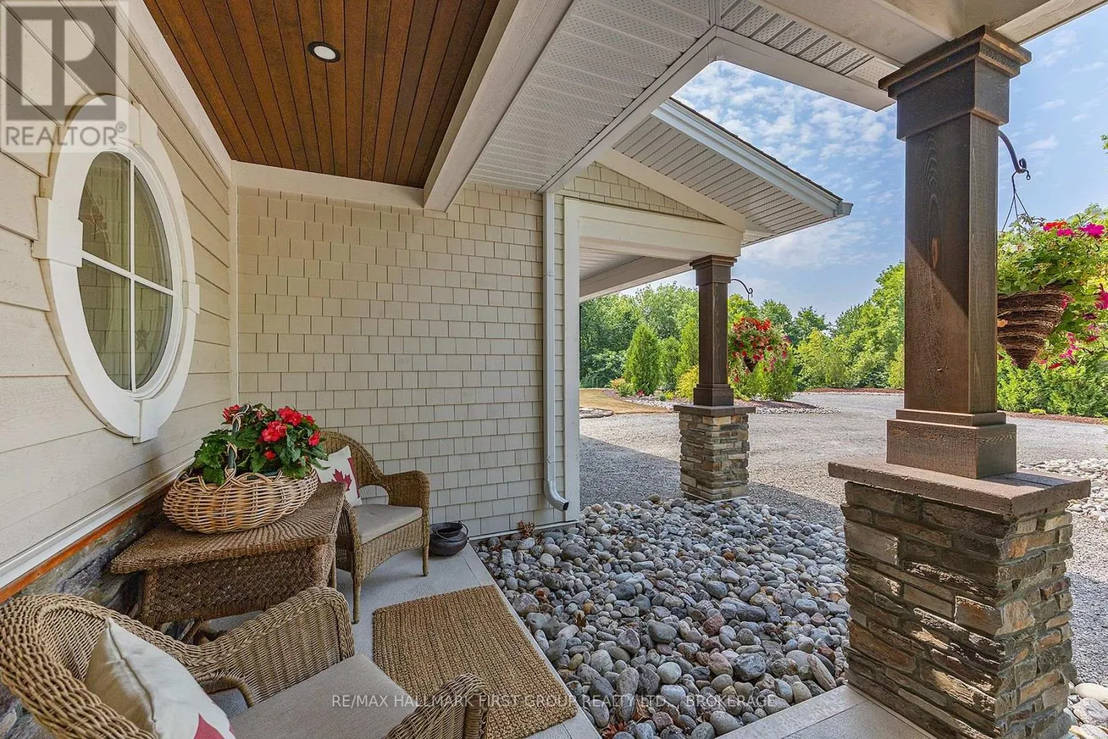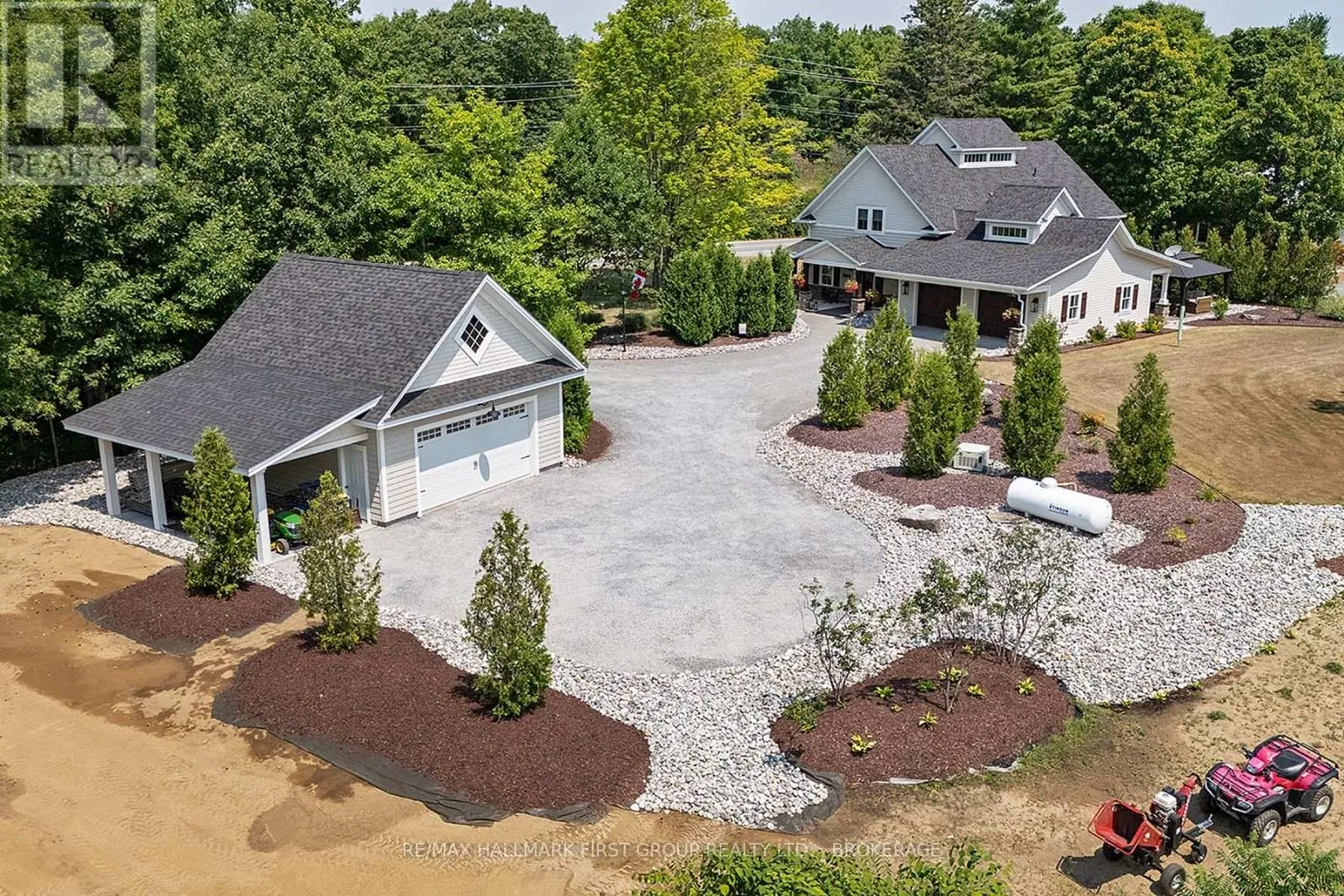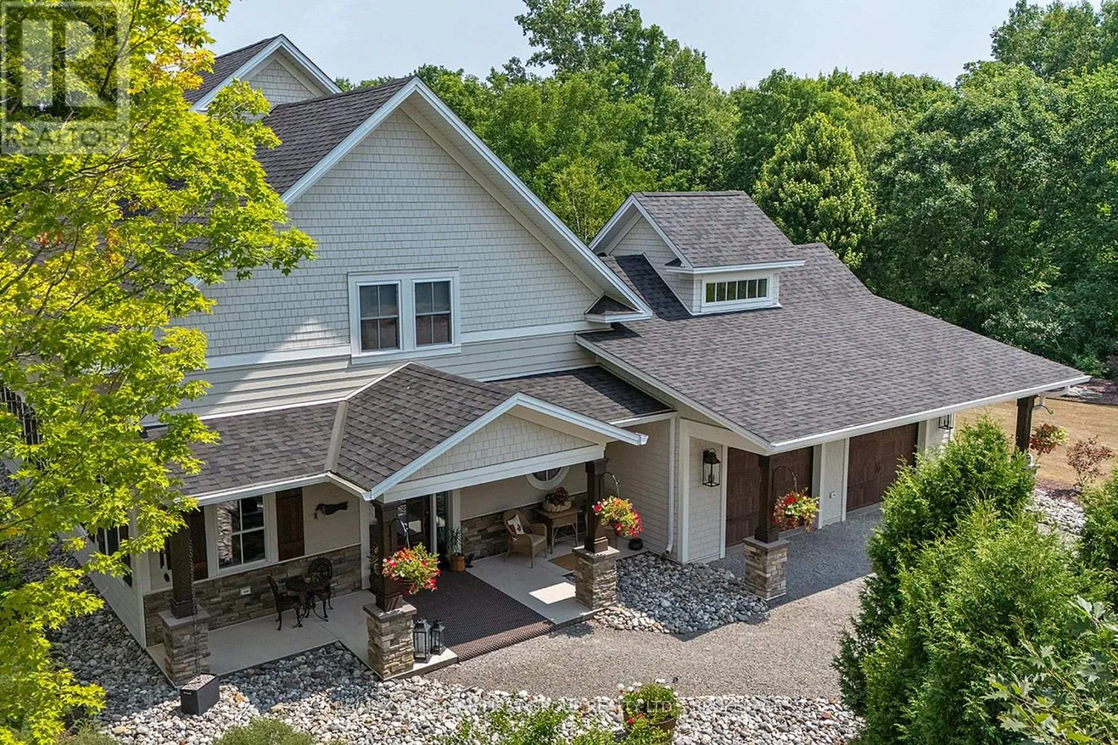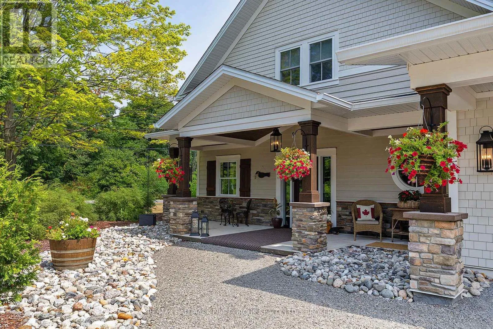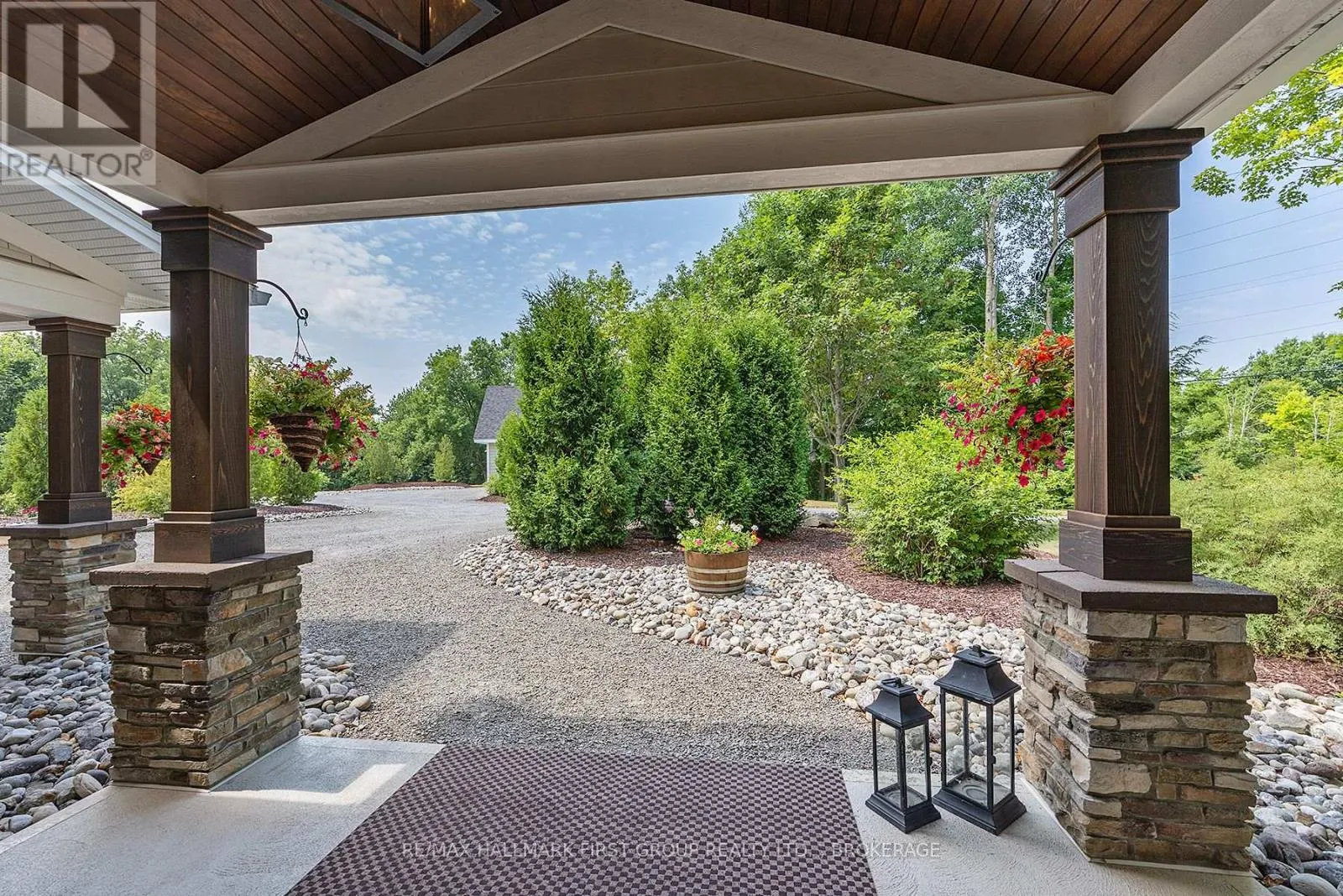 Cross Streets: County Rd 3. ** Directions: Head east on County Road 2 from County Road 3. A very rare find, this exceptional custom-built home is nestled on a pristine 18-acre parcel offering private woodland trails, expansive landscaped grounds, and an unmatched standard of quality throughout. From the moment you arrive, you'll feel the sense of care and craftsmanship that defines this stunning property. Designed with both elegance and comfort in mind, the spacious layout is highlighted by a warm, welcoming main floor family room featuring a statement flame fireplace. The heart of the home is a beautiful custom kitchen complete with large granite island, custom built-ins, built-in buffet, and formal dining room perfect for everyday living or entertaining guests in style. Coffered and custom ceilings add character throughout the home, while a neutral palette offers timeless sophistication. Step outside to relax under the covered pergola, surrounded by meticulous landscaping that blends seamlessly with the natural beauty of the land. Upstairs, you'll find vaulted ceilings with skylights that flood the space with natural light. All three bedrooms are generously sized and offer walk-in closets and the primary bedroom features a spa-like ensuite with a glass-enclosed shower and soaker tub. Designed with comfort and quality in mind, this home has radiant in-floor heating on all levels with individual zone control, central air and HRV system all topped off by a built in Cummins generator in the event of power outage. Attached 2-car garage with inside entry is heated and insulated. Additional 2 car detached garage/workshop with lean-to for storing your toys or equipment is fully wired and ready to go - perfect for hobbyists and DIYers alike. If quality and craftsmanship are what you're looking for in your next home this may be the perfect opportunity for you. (id:27476)
