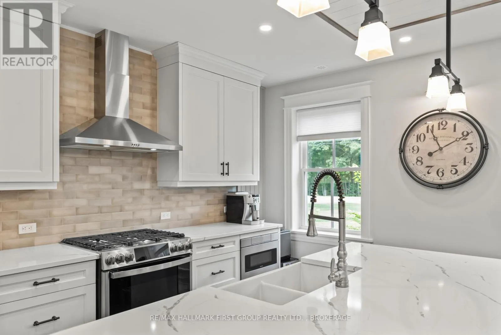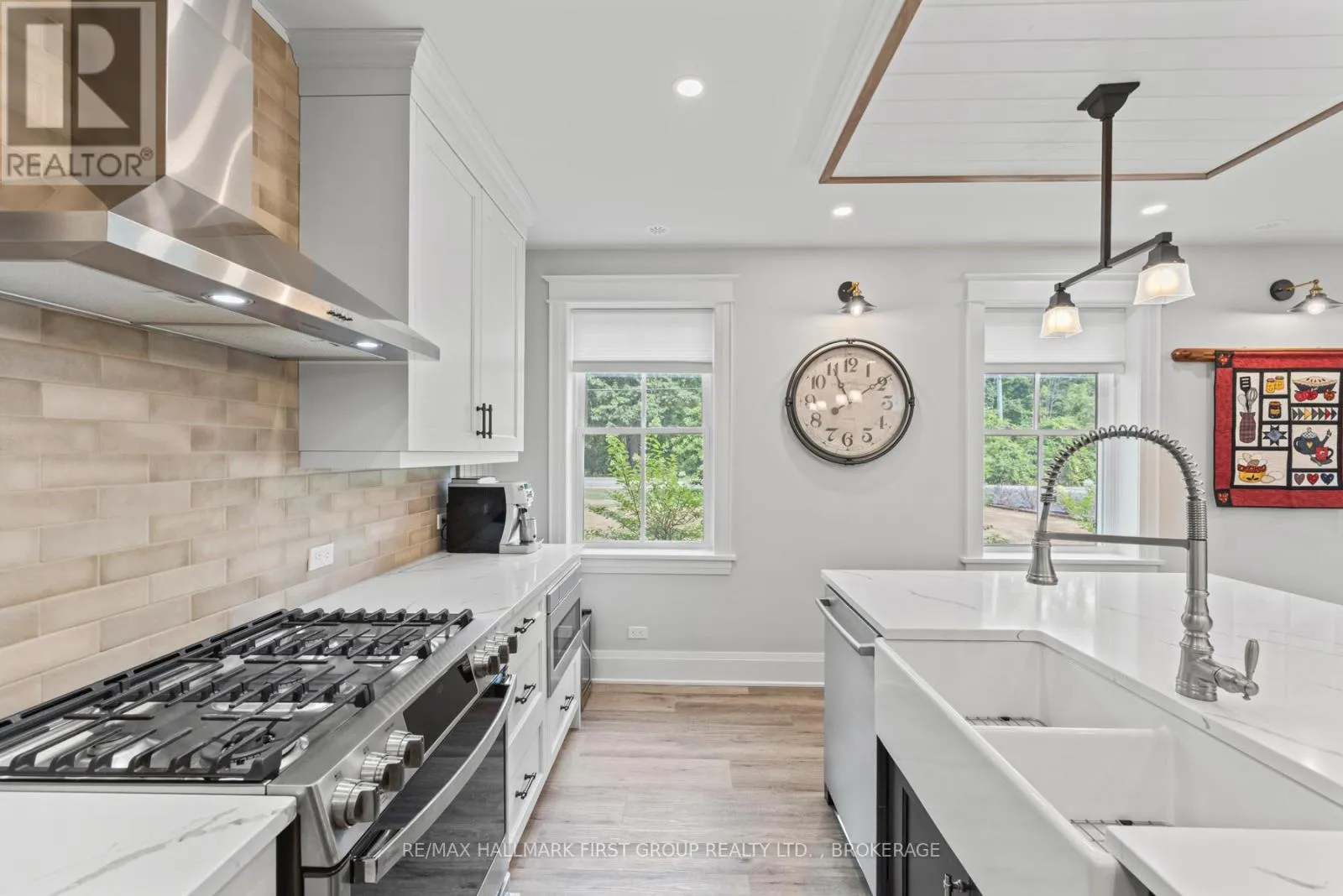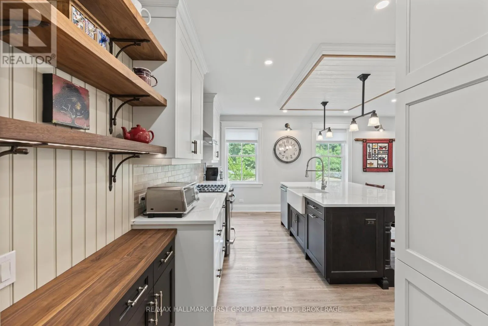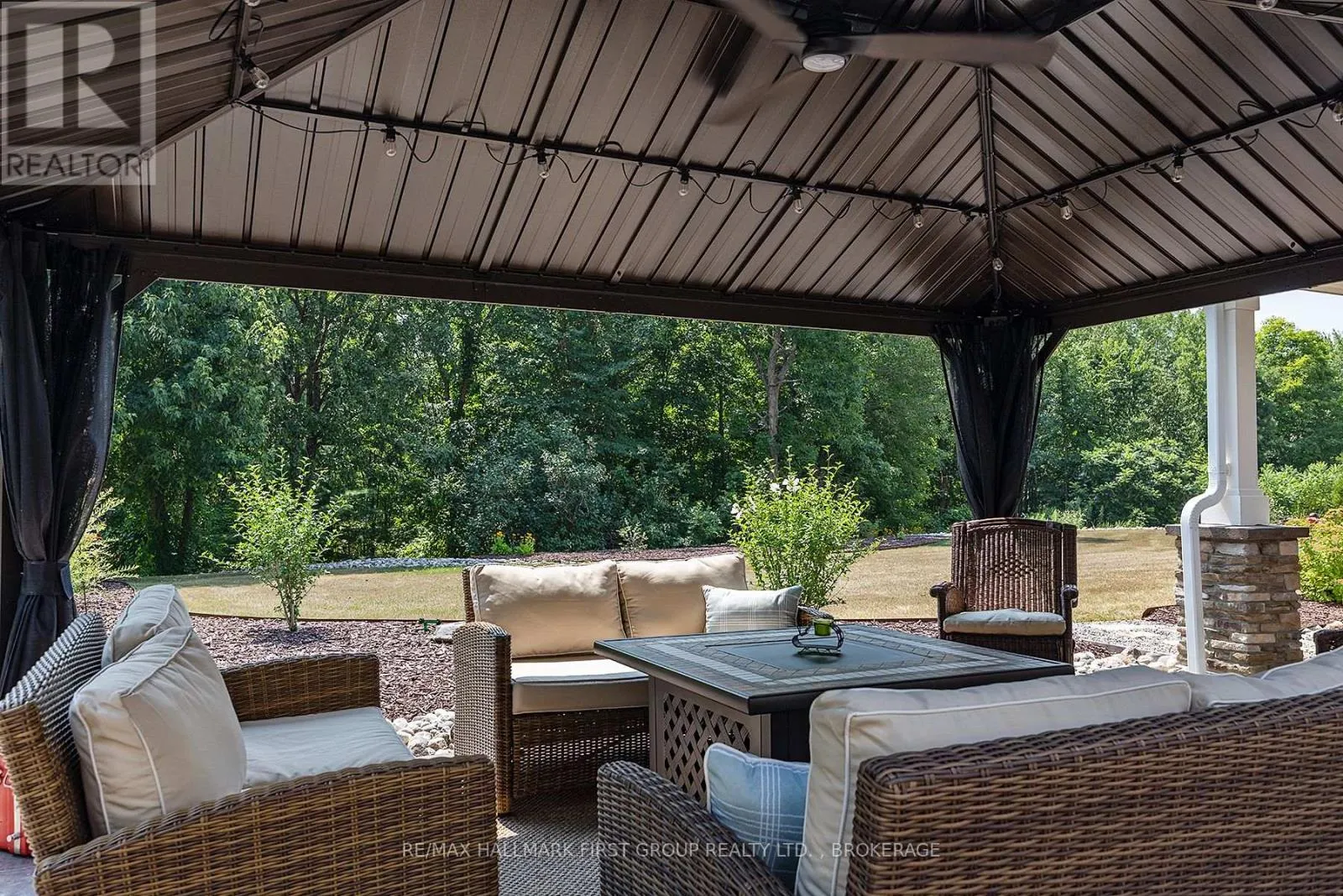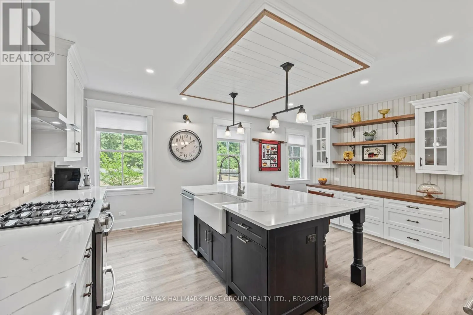 Cross Streets: County Rd 3. ** Directions: Head east on County Road 2 from County Road 3. A very rare find, this exceptional custom-built home is nestled on a pristine 18-acre parcel offering private woodland trails, expansive landscaped grounds, and an unmatched standard of quality throughout. From the moment you arrive, you'll feel the sense of care and craftsmanship that defines this stunning property. Designed with both elegance and comfort in mind, the spacious layout is highlighted by a warm, welcoming main floor family room featuring a statement flame fireplace. The heart of the home is a beautiful custom kitchen complete with large granite island, custom built-ins, built-in buffet, and formal dining room perfect for everyday living or entertaining guests in style. Coffered and custom ceilings add character throughout the home, while a neutral palette offers timeless sophistication. Step outside to relax under the covered pergola, surrounded by meticulous landscaping that blends seamlessly with the natural beauty of the land. Upstairs, you'll find vaulted ceilings with skylights that flood the space with natural light. All three bedrooms are generously sized and offer walk-in closets and the primary bedroom features a spa-like ensuite with a glass-enclosed shower and soaker tub. Designed with comfort and quality in mind, this home has radiant in-floor heating on all levels with individual zone control, central air and HRV system all topped off by a built in Cummins generator in the event of power outage. Attached 2-car garage with inside entry is heated and insulated. Additional 2 car detached garage/workshop with lean-to for storing your toys or equipment is fully wired and ready to go - perfect for hobbyists and DIYers alike. If quality and craftsmanship are what you're looking for in your next home this may be the perfect opportunity for you. (id:27476)