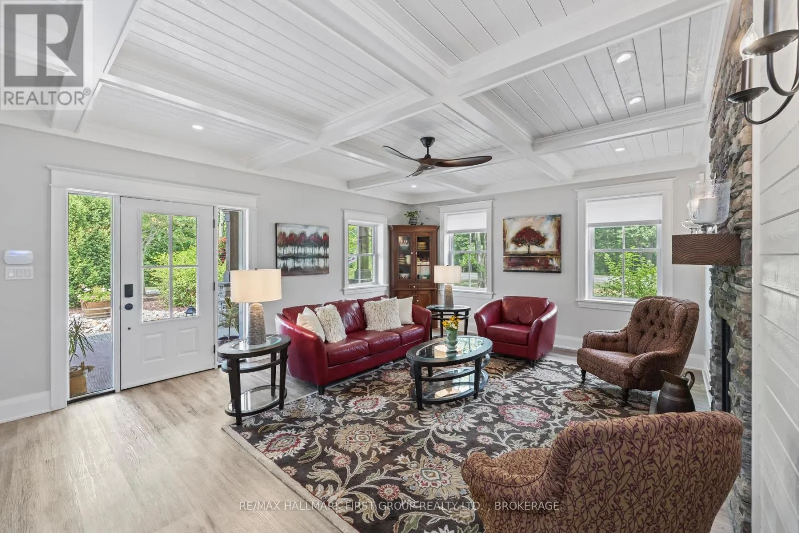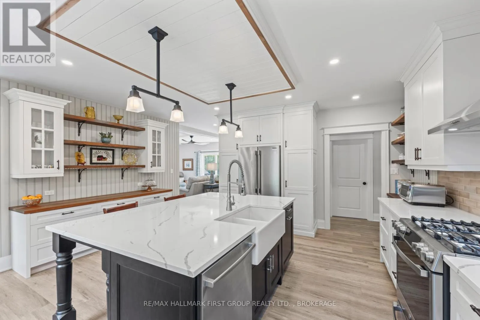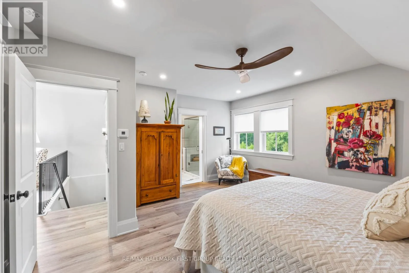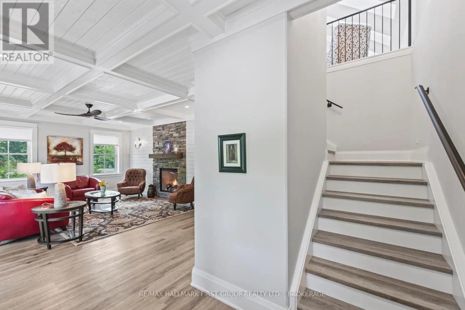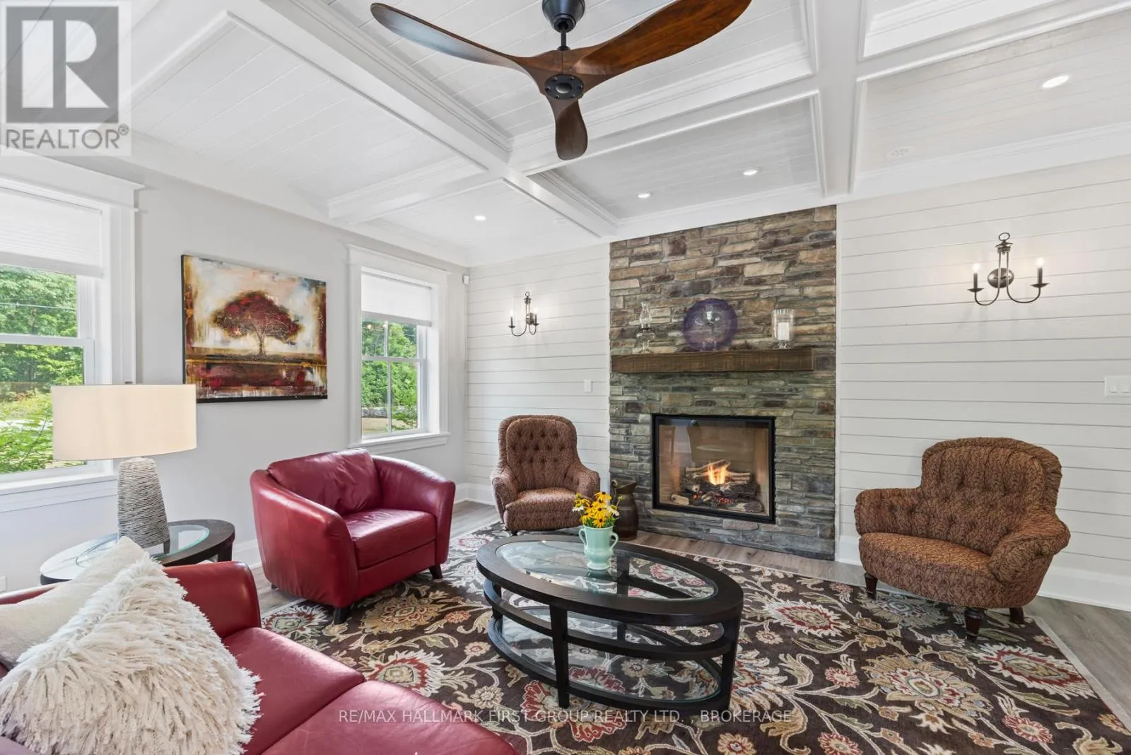 Cross Streets: County Rd 3. ** Directions: Head east on County Road 2 from County Road 3. A very rare find, this exceptional custom-built home is nestled on a pristine 18-acre parcel offering private woodland trails, expansive landscaped grounds, and an unmatched standard of quality throughout. From the moment you arrive, you'll feel the sense of care and craftsmanship that defines this stunning property. Designed with both elegance and comfort in mind, the spacious layout is highlighted by a warm, welcoming main floor family room featuring a statement flame fireplace. The heart of the home is a beautiful custom kitchen complete with large granite island, custom built-ins, built-in buffet, and formal dining room perfect for everyday living or entertaining guests in style. Coffered and custom ceilings add character throughout the home, while a neutral palette offers timeless sophistication. Step outside to relax under the covered pergola, surrounded by meticulous landscaping that blends seamlessly with the natural beauty of the land. Upstairs, you'll find vaulted ceilings with skylights that flood the space with natural light. All three bedrooms are generously sized and offer walk-in closets and the primary bedroom features a spa-like ensuite with a glass-enclosed shower and soaker tub. Designed with comfort and quality in mind, this home has radiant in-floor heating on all levels with individual zone control, central air and HRV system all topped off by a built in Cummins generator in the event of power outage. Attached 2-car garage with inside entry is heated and insulated. Additional 2 car detached garage/workshop with lean-to for storing your toys or equipment is fully wired and ready to go - perfect for hobbyists and DIYers alike. If quality and craftsmanship are what you're looking for in your next home this may be the perfect opportunity for you. (id:27476)