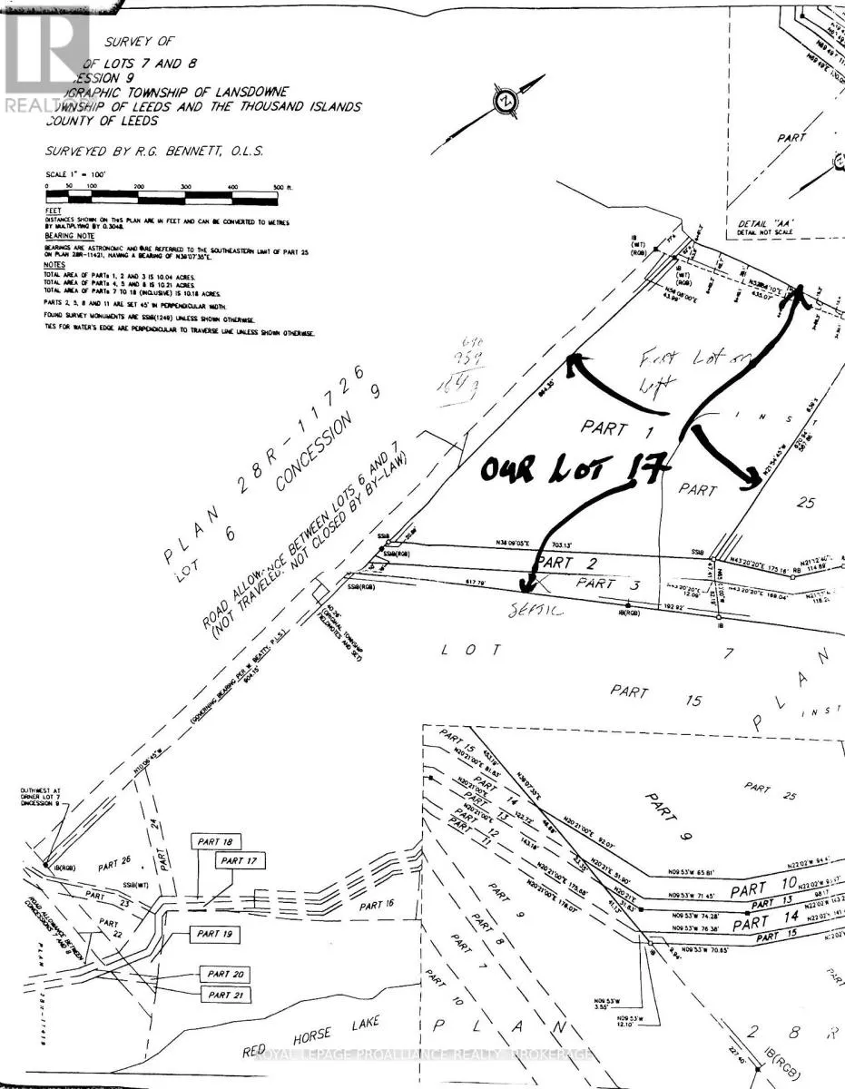 Cross Streets: Lodge Lane & County Road 3. ** Directions: County Road 3 toward Lansdowne, drive North toward Lyndhurst, Turn onto Lodge Lane Drive, Keep right as the road branches. Welcome to1030 Lodge Lane, a beautiful 10 acre waterfront parcel offering 435 feet of natural shoreline on serene Red Horse Lake. This property combines mature forest, rugged Canadian Shield character, and exceptional privacy-an ideal canvas for your future cottage or year round retreat. The shoreline features mixed waterfront, including natural shallow areas and striking granite outcroppings that frame the lake with classic Eastern Ontario charm. Wooden stairs are already in place for convenient water access, and a gravel driveway provides an easy approach into the lot. With hydro available to be brought in, development is straightforward, and the generous acreage offers multiple potential building sites surrounded by trees and nature. The land is part of a Managed Forest, preserving its natural environment and offering potential tax advantages. Located just 40 minutes from Kingston, this property offers peaceful lakeside living with convenient access to amenities. Whether you're seeking a recreational getaway or a long term investment in waterfront land, Lot 17 delivers space, beauty, and opportunity. (id:27476)