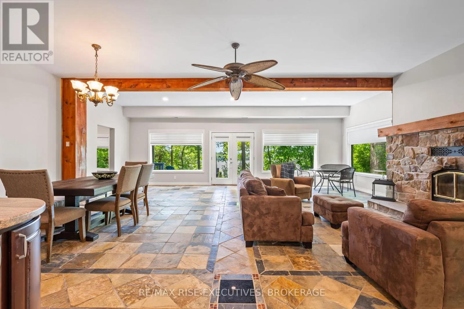 Cross Streets: County Rd 32. ** Directions: County Road 32. Million-Dollar Views, Endless Potential 22.5 Acres on South Lake. An extraordinary opportunity awaits with this sprawling waterfront estate, offering over 800 feet of west-facing shoreline on beautiful South Lake. Just 10 minutes from Gananoque, this unique property delivers unbeatable privacy, breathtaking sunsets, and the chance to create your dream retreat. The house features over 6000 sq ft of living space with 7 bedrooms, 6 bathrooms, private master suite, beautiful office and grand living room. Tucked away among a diverse landscape of hardwoods, softwoods, granite outcrops, and abundant wildlife, the setting is nothing short of magical. Follow the well-maintained stairs down to a charming rustic separately deeded cabin right at the waters edge - perfect for peaceful getaways or summer afternoons by the lake. Recent updates to the home include: new septic system, new furnace, new a/c, water softener, washer/dryer, gas stove, new blinds throughout, new flooring in all bedrooms and freshly painted inside and out. This is more than just a property, its a lifestyle, a sanctuary, and a once-in-a-generation chance to own a true piece of Canadian landscape. (id:27476)