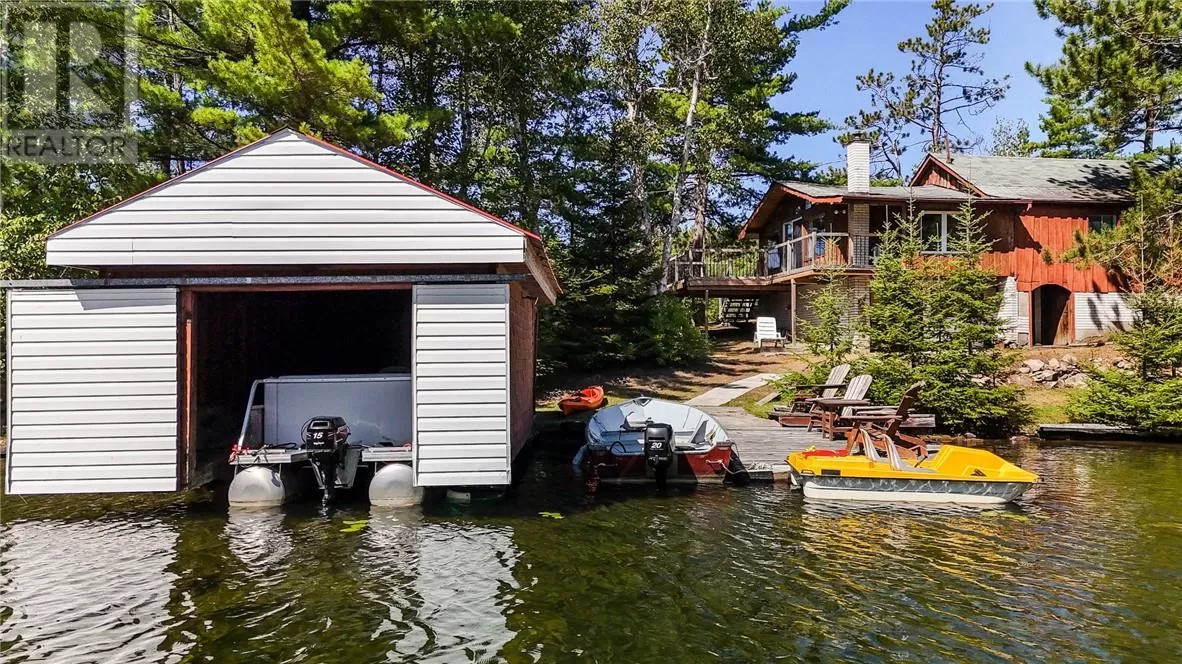 Escape to your own 1.5-acre private island on the beautiful waters of Windy Lake, the ultimate summer getaway. This exclusive retreat features a spacious main house, a guest house for added privacy, two charming bunkies, and a boat house for all your watercraft needs. Enjoy the luxury of a relaxing sauna, two showers, and the convenience of hydro, all while being just a short distance from the mainland. With three storage sheds, you'll have plenty of space for all your summer essentials. The sale of this property includes a 6 person pontoon boat and all the tools you would ever need. Whether you're seeking tranquility or a place to create lasting memories, this island offers the perfect blend of seclusion and modern comfort. Don't miss your chance to own a piece of paradise on Windy Lake! (id:27476)