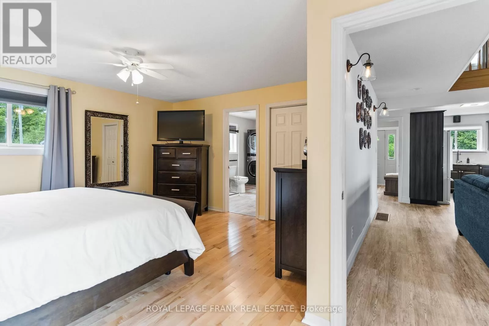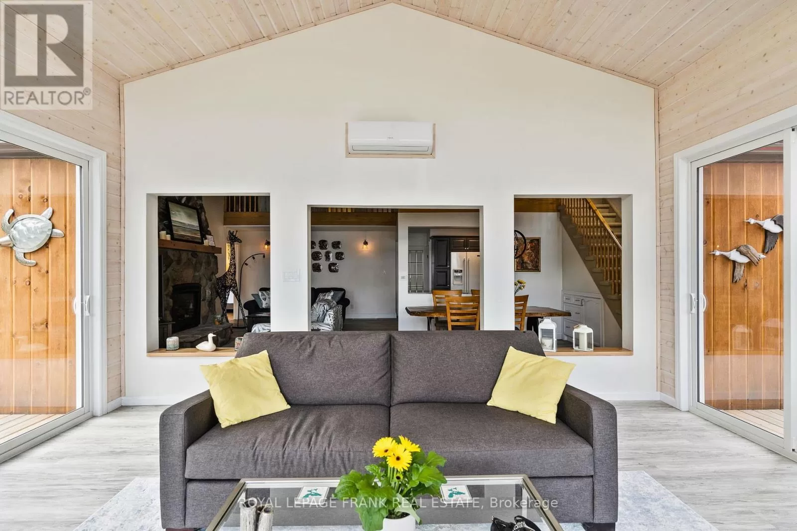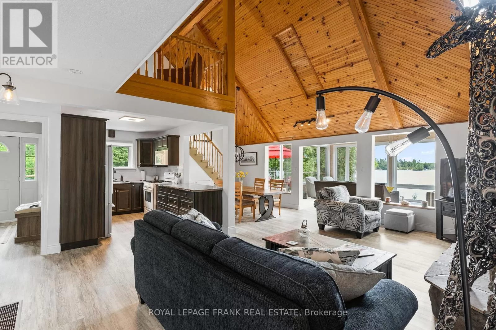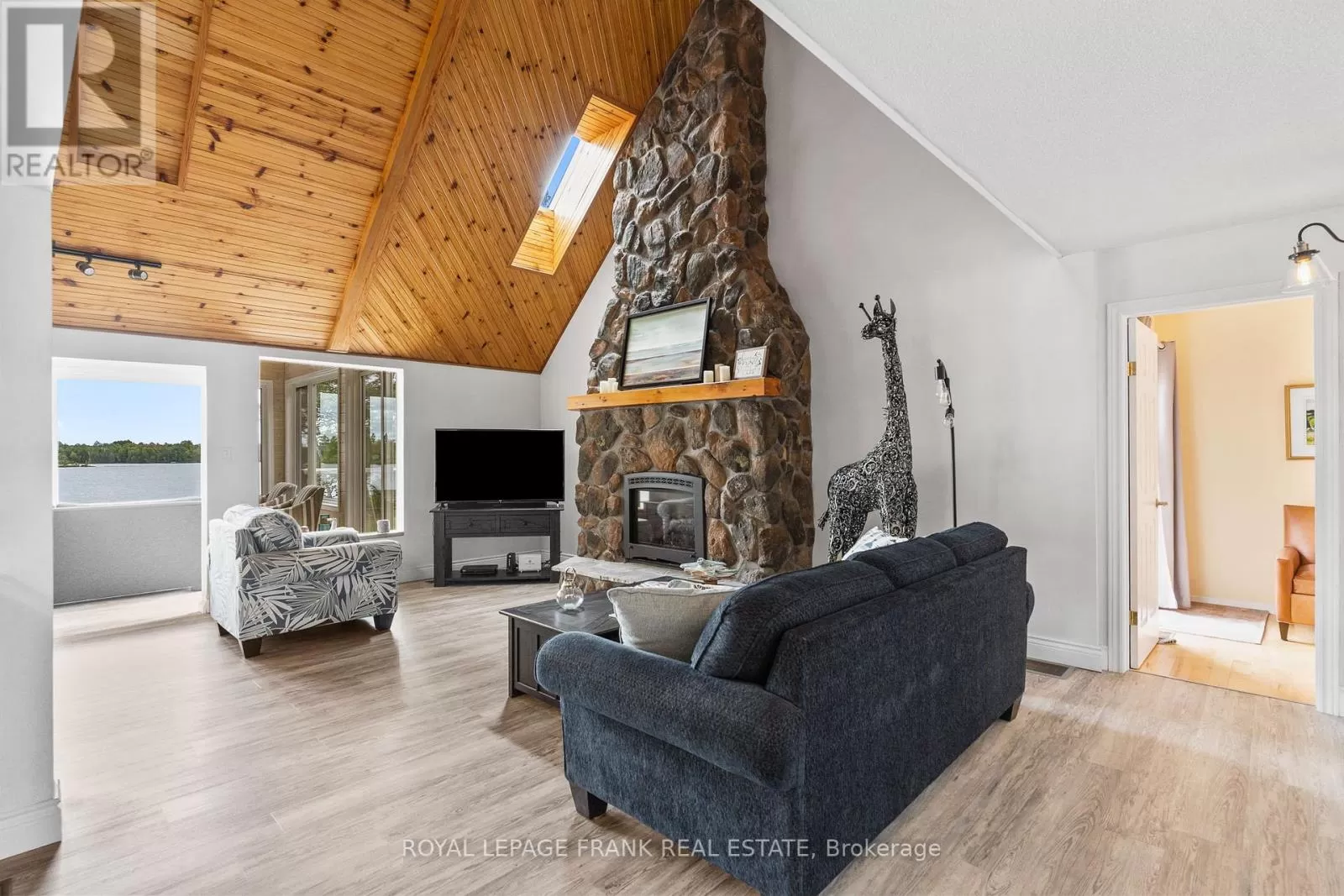 Cross Streets: Hwy 62 & Steenburg Lk Rd N. ** Directions: Hwy 62 to Steenburg Lake Rd N follow all the way to 1115 turn in to far left driveway - A. Welcome to this exceptional year-round retreat on the shores of Steenburg Lake, a true lakeside gem offering both luxury and tranquility. This turn-key waterfront home is located at 1115A Steenburg Lake Road North in Limerick, Ontario. With over 2,700 sq. ft. of finished living space, the home combines contemporary living with nature's beauty and features 3 bedrooms and 4 bathrooms. Step inside the spacious, open-concept main floor to a living room with a cathedral ceiling and a full-height fieldstone propane fireplace. Floor-to-ceiling windows offer uninterrupted, panoramic views of the lake, filling the space with natural light. The main level features a primary bedroom with a 3-piece ensuite, a walk-in closet, and an integrated laundry area. The room opens directly onto the deck. The upper level has two additional bedrooms with separate heat pumps and a full 4-piece bath. The lower level includes a recreation room, a family room, a 2-piece bath, and a walkout to the outdoors. The property spans nearly 2 acres, with over 180 ft of prime waterfront. The shoreline has a clean, hard bottom. Enjoy the outdoors with an oversized 16x26 ft dock, complete with a boat awning. There is also an outdoor brick pizza oven. A detached 2-bay, 20x28 ft garage with a storage loft provides ample space for vehicles and storage. The property is on a year-round, municipally maintained paved road. Recent upgrades to the home include a propane furnace, Generac generator, a sunroom addition with a heat pump, all new decking, and new flooring throughout most of the main floor. Ready for your own lakeside lifestyle? This exceptional property has been lovingly cared for and is waiting to be filled with new memories. Don't miss this opportunity to own a true lakeside gem come and see for yourself why you'll never want to leave. (id:27476)