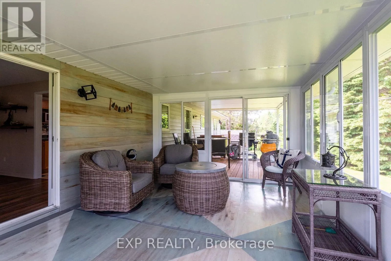 Highway 62 To Weslemkoon Lake Road Modern Comfort Meets Scenic Waterfront Living. This impeccably maintained 3+1 bedroom, 2-bathroom bungalow offers the perfect blend of style, functionality, and year-round comfort. Thoughtfully updated throughout, the home features bright, spacious interiors and inviting outdoor living spaces designed for everyday ease and entertaining. The sun-filled main floor showcases east- and west-facing windows, capturing tranquil sunrise views from the living room and warm afternoon light in the dining area and sunroom. The updated kitchen is equipped with 2023 appliances, ample cabinetry, and durable high-end laminate flooring. The primary bedroom features dual closets, while two additional bedrooms offer flexible space for family or guests. A convenient laundry/mudroom provides direct access to the backyard and covered deck. The fully finished lower level adds exceptional versatility, complete with a large rec room with above-grade windows and a premium woodstove, a fourth bedroom, and a second full bathroom-ideal for guests, extended family, or a home office setup. Outdoor living is equally impressive. The 12' x 16' sunroom boasts high-end glass windows, an insulated floor, and three sliding doors opening to a covered deck with LED lighting and two propane hookups. Enjoy a raised, enclosed garden area and a solid dock with adjustable straps to accommodate seasonal water levels-perfect for making the most of waterfront living from spring through fall. Additional highlights include a 1.5-car garage with backyard and basement access, a 20' x 30' Quonset hut for storage or hobbies, a wired shed, and an extra-long paved driveway with ample parking. A Generac 20kW generator ensures peace of mind year-round. Situated on a municipally maintained road just 6 km from local amenities, this move-in-ready property delivers privacy, practicality, and exceptional waterfront living. (id:27476)
